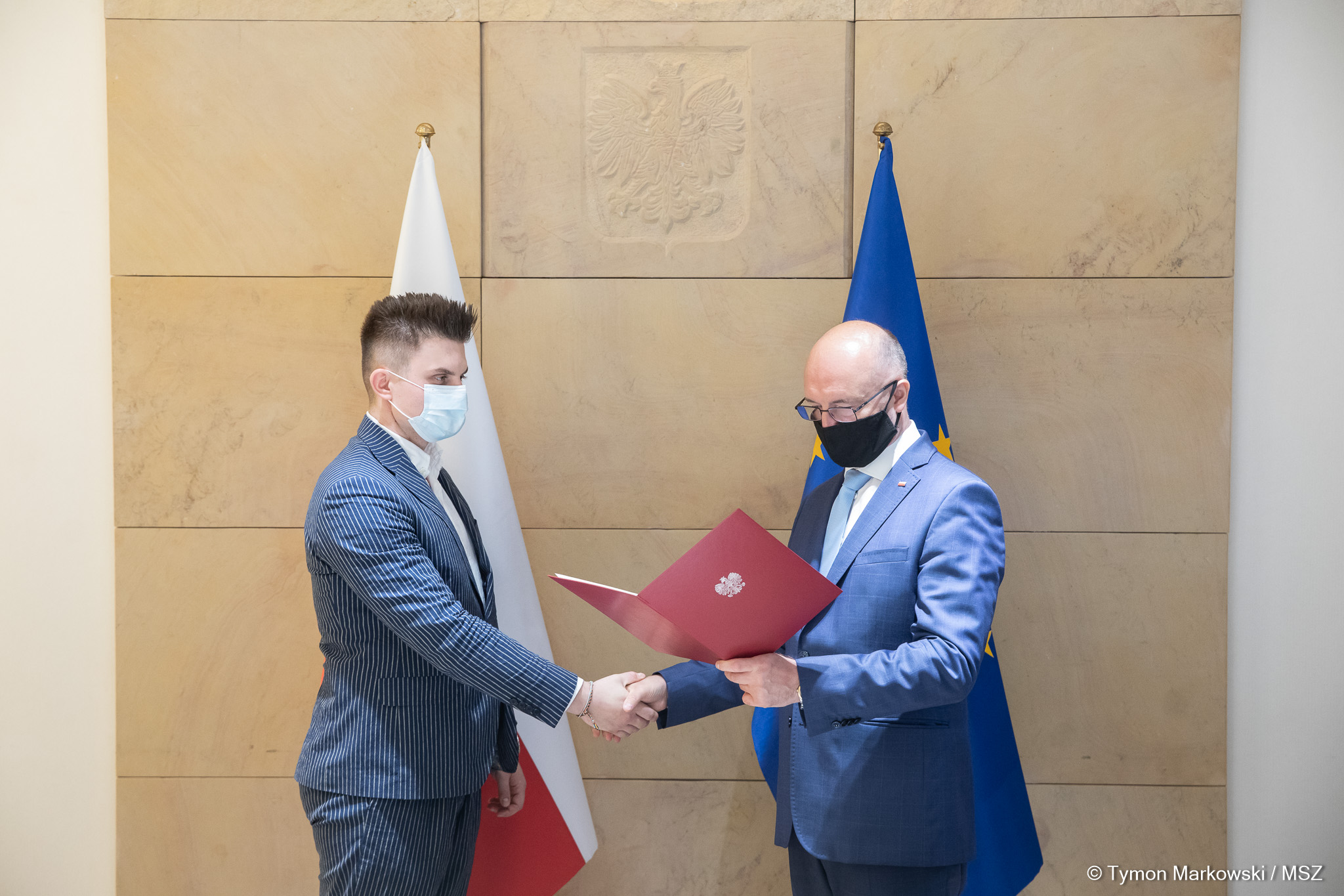 Wiceminister Piotr Wawrzyk wręczył nominacje Młodzieżowym Delegatom RP na 76. sesję Zgromadzenia Ogólnego ONZ