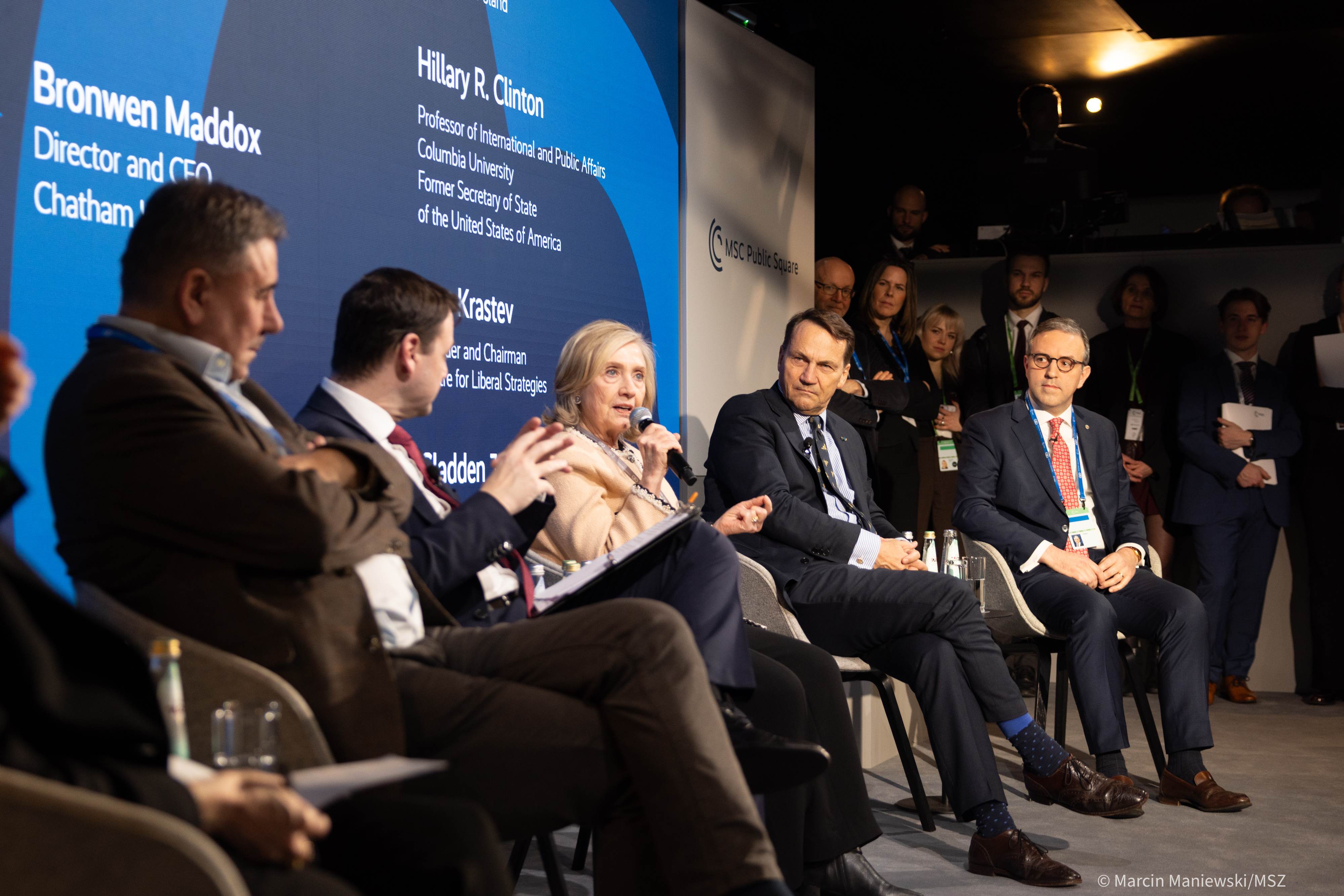 Podczas Monachijskiej Konferencji Bezpieczeństwa wicepremier Sikorski wziął udział w czterech panelach dotyczących m.in. bezpieczeństwa Ukrainy, wzmocnienia obronności Europy, wyzwań dla Zachodu oraz zagrożeń hybrydowych na Bałtyku. Szef MSZ podkreślał rolę Polski w dążeniu do sprawiedliwego pokoju dla Ukrainy. Zaznaczył, że Europa powinna uczestniczyć w negocjacjach pokojowych: