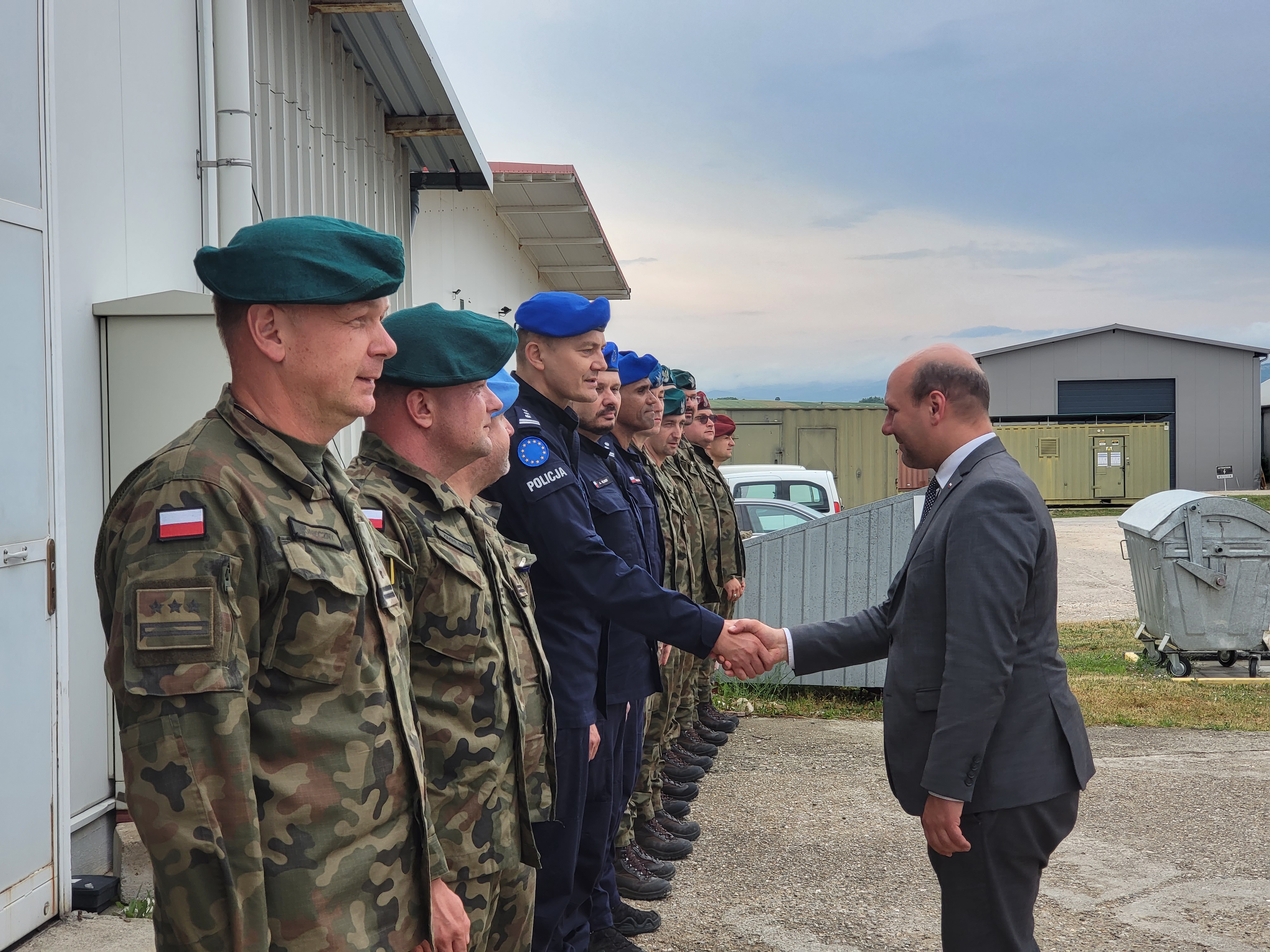 Na zakończenie wizyty w Kosowie sekretarz stanu spotkał się z polskimi żołnierzami służącymi w ramach PKW KFOR oraz oficerami policji pełniącymi funkcje w ramach misji EULEX. Aktualnie w Kosowie służy ponad 250 żołnierzy i ponad 100 policjantów z Polski. Wiceminister złożył również kwiaty pod tablicą upamiętniającą śmierć polskich żołnierzy – sierżanta Pawła Legenckiego i sierżanta Piotra Mikułowskiego, którzy 4 marca 2003 r. zginęli podczas pełnienia służby w ramach misji pokojowej NATO „Allied Harmony” w miejscowości Sopot w Macedonii Północnej.
