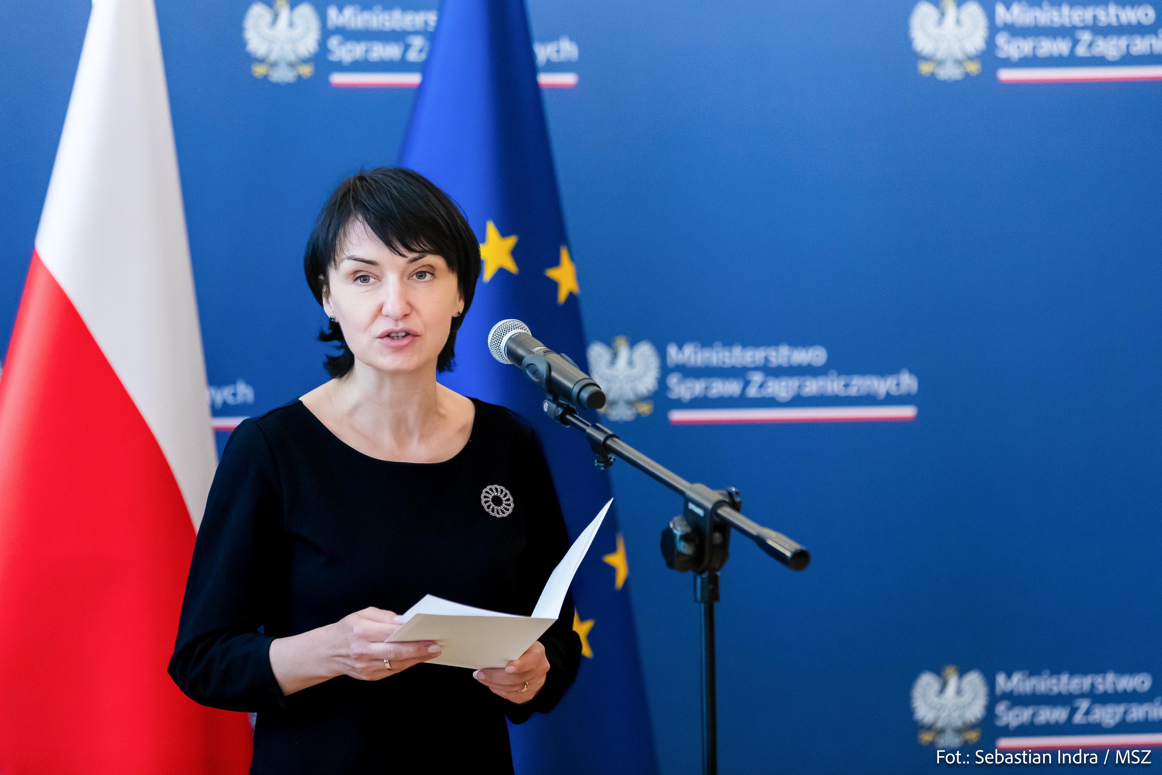 Podsekretarz stanu Henryka Mościcka-Dendys wręczyła dzisiaj nagrody autorom prac naukowych i popularnonaukowych opublikowanych w 2022 roku i wyróżnionych w 7. edycji Konkursu Historycznego Ministra Spraw Zagranicznych. W swoim przemówieniu podkreśliła, że wyróżnione prace służą nie tylko poszerzaniu wiedzy, ale także ułatwiają zrozumienie polskiej perspektywy i doświadczeń historycznych. W szczególności w odniesieniu do prac autorów zagranicznych poświęconych historii Polski, te odmienne perspektywy stanowią wartość dodaną Konkursu.