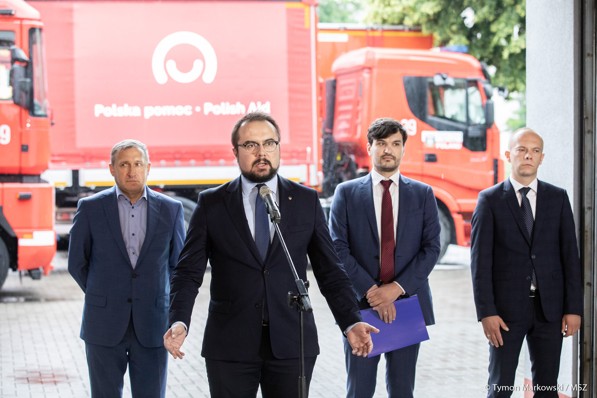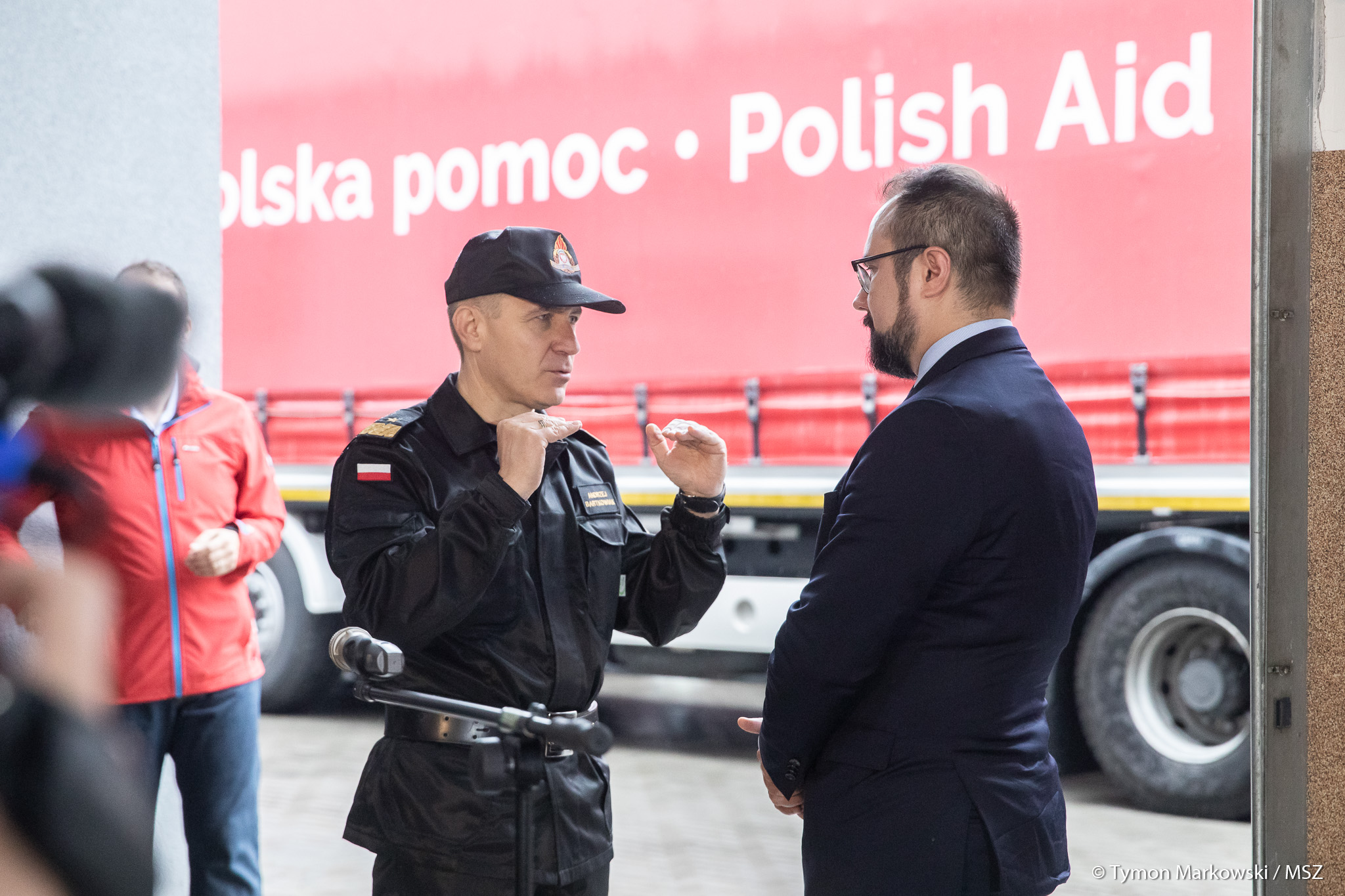 – Dzisiaj po raz kolejny wypełniamy naszą międzynarodową i ludzką powinność – dzielimy się tym, czym możemy z Republiką Mołdawii i Ukrainą. Ta akcja pomocowa jest również wyrazem naszej solidarności i woli współpracy z Republiką Mołdawii i Ukrainą, naszymi ważnymi partnerami w ramach Partnerstwa Wschodniego – powiedział wiceminister Paweł Jabłoński podczas uroczystej odprawy dwóch kolejnych konwojów humanitarnych zawierających sprzęt i wyposażenie przeznaczone na walkę z koronawirusem na Ukrainie i w Mołdawii.