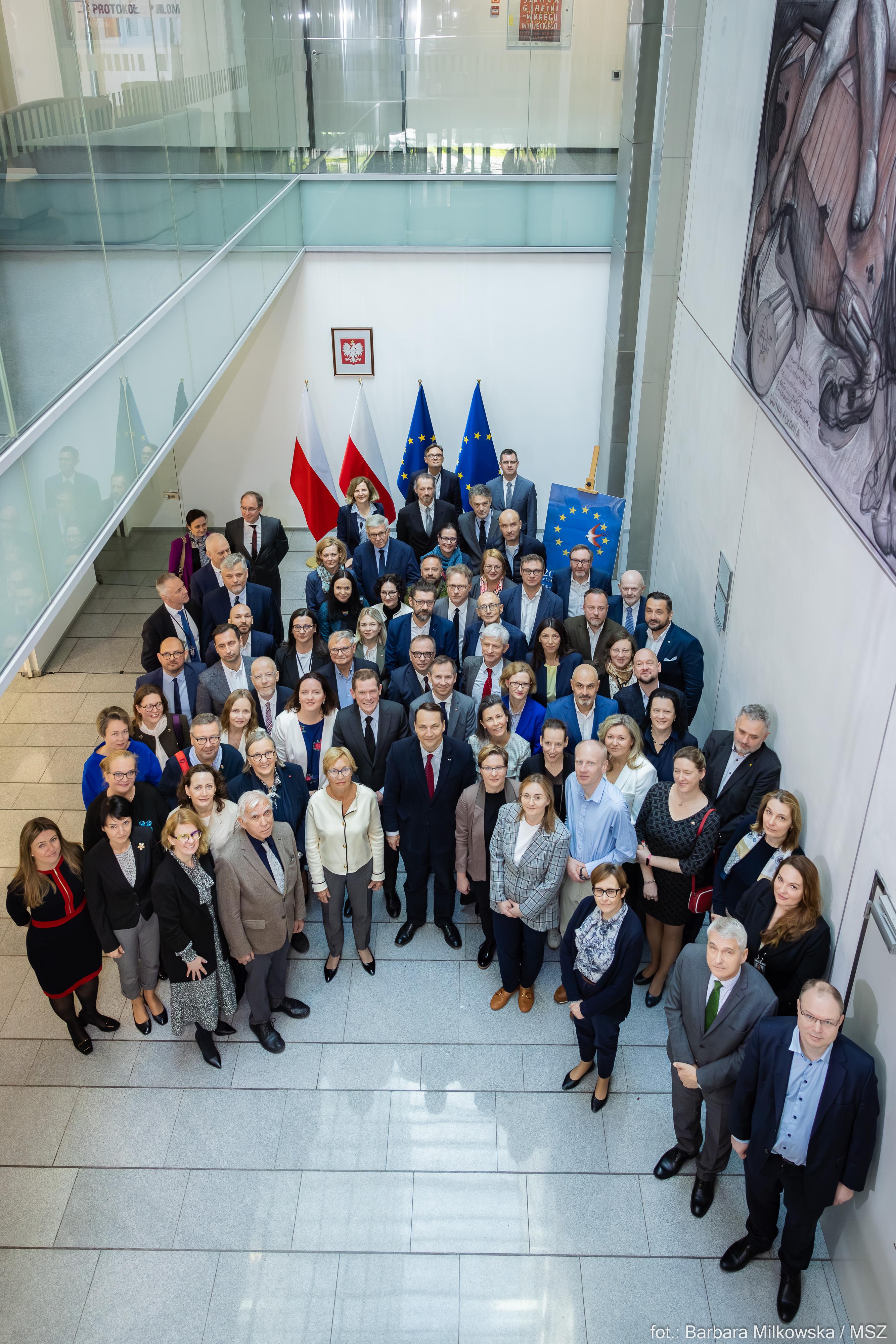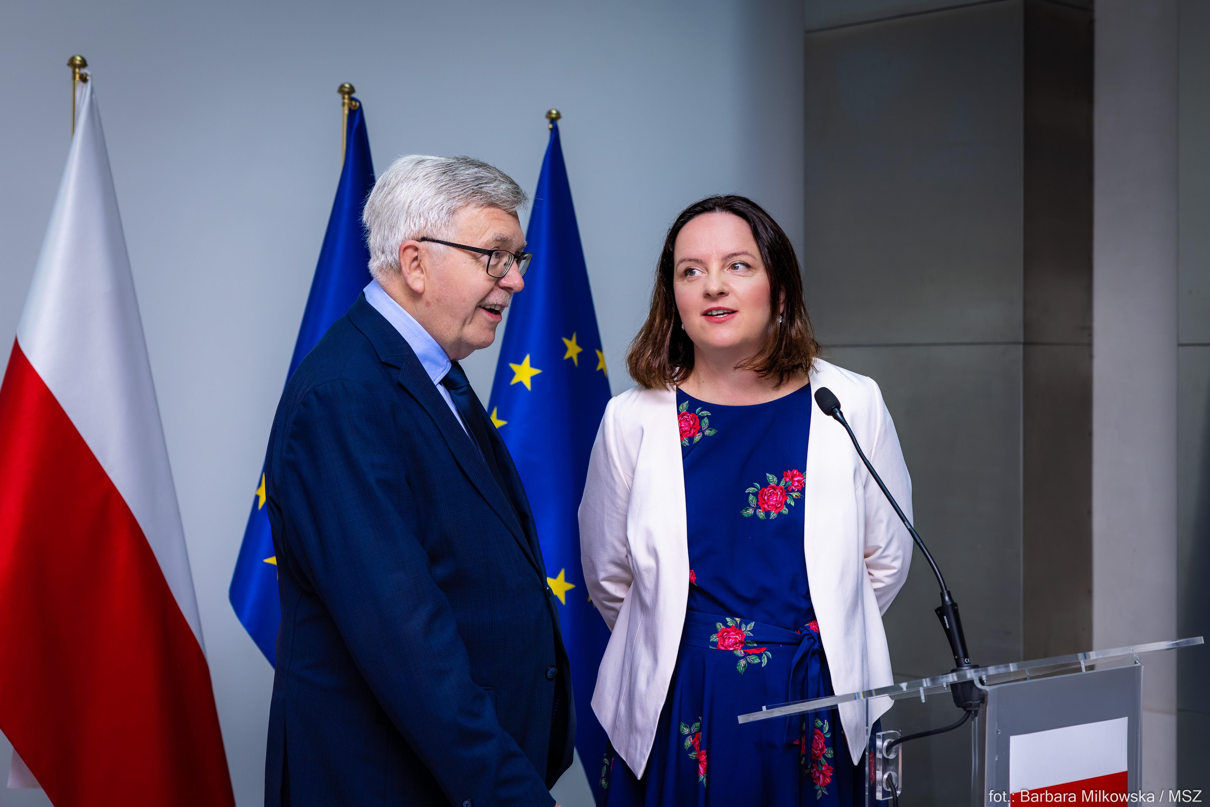 - Jest mi niezmiernie miło, że dwadzieścia lat po pierwszym Śniadaniu Europejskim, możemy dziś spotkać się tu, w MSZ, z udziałem ministra Radosława Sikorskiego, wiceminister Henryki Mościckiej-Dendys oraz wielu znamienitych gości. Pamiętamy dobrze, jak trudny to był czas, jak wiele obaw mieliśmy jako społeczeństwo – zaznaczyła wiceminister Radwan otwierając wydarzenie. Jak wskazała, dzięki zaangażowaniu administracji rządowej, organizacji pozarządowych, samorządów, Kościoła i nas - obywateli - nasze członkostwo w UE po 20 latach okazało się sukcesem. Szczególnie dziś, kiedy jest wojna za naszą wschodnią granicą, potrzebujemy odpowiedzialnych rządzących w silnej i zjednoczonej Europie – podkreśliła wiceminister Anna Radwan-Röhrenschef.