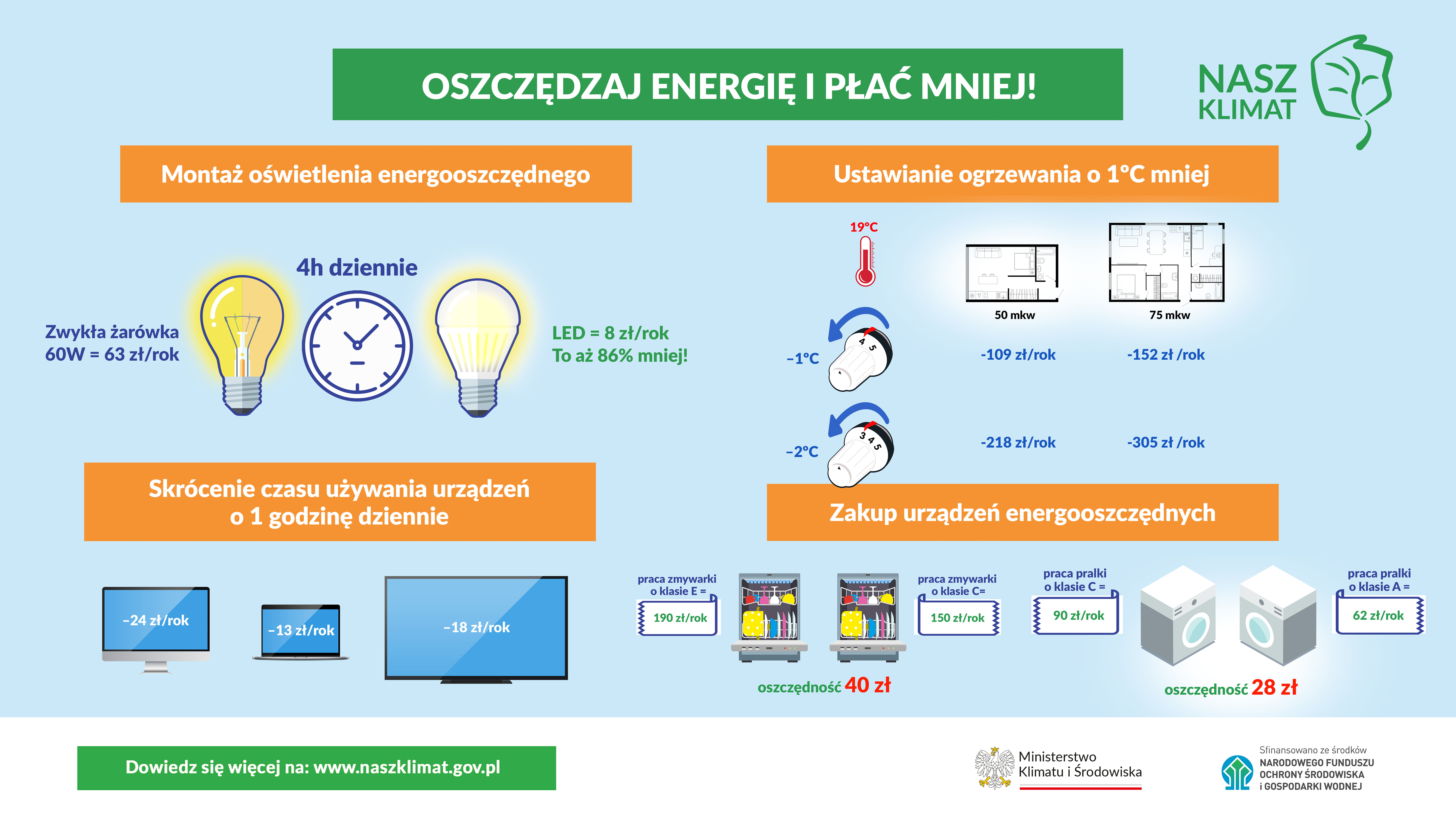 | Nie niszcz środowiska! | Oszczędzaj energię i płać mniej! |