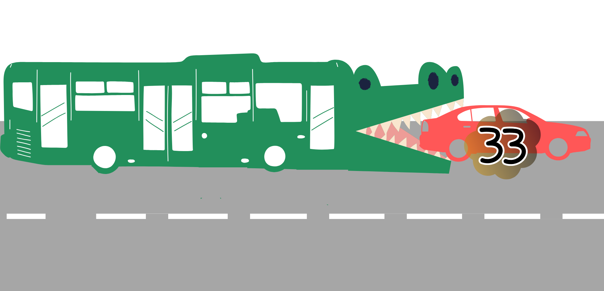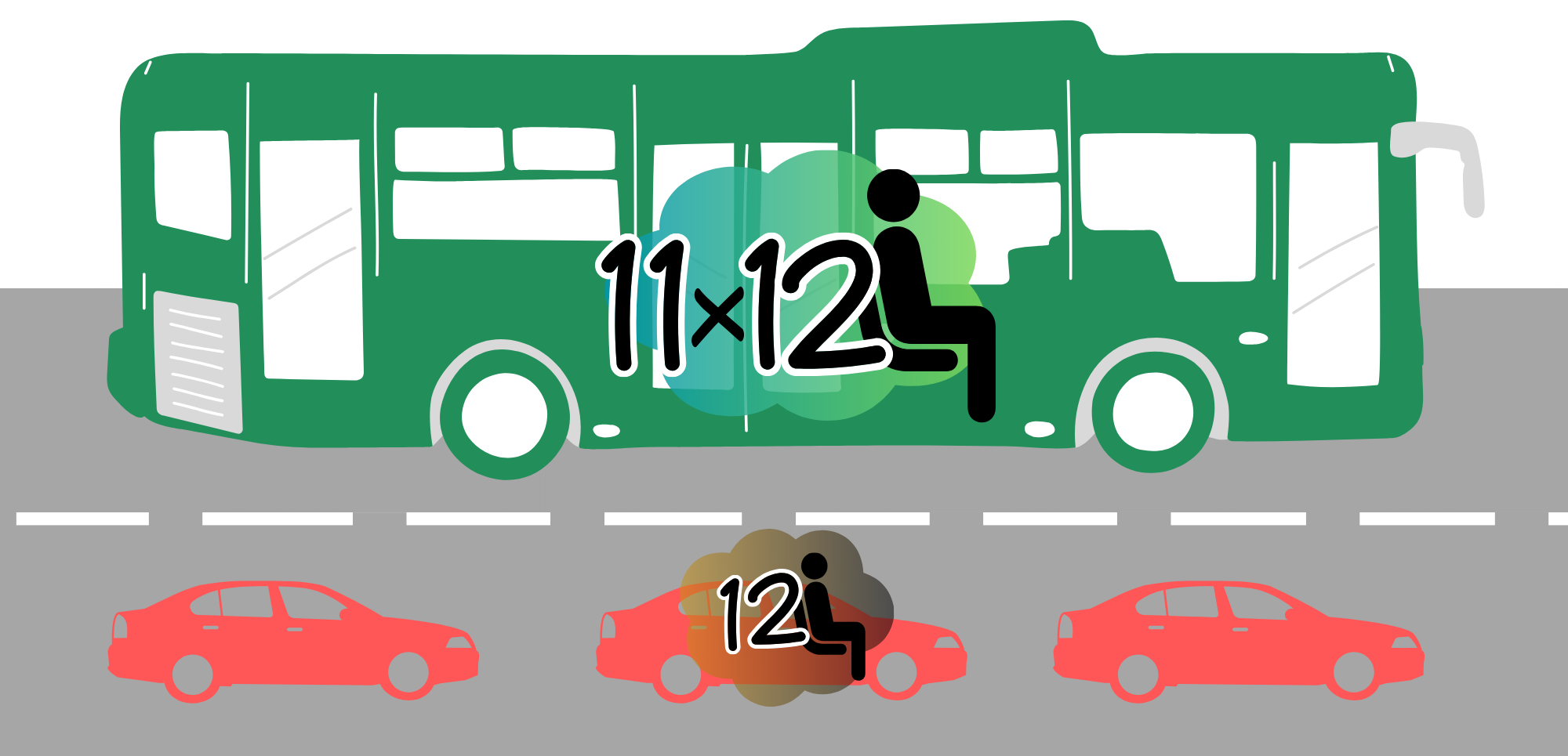 Czy wiesz, że: 1 autobus zajmuje tyle miejsca co 3 samochody, a mieści się w nim 11 razy więcej pasażerów niż podróżujących w 3 samochodach osobowych[1].