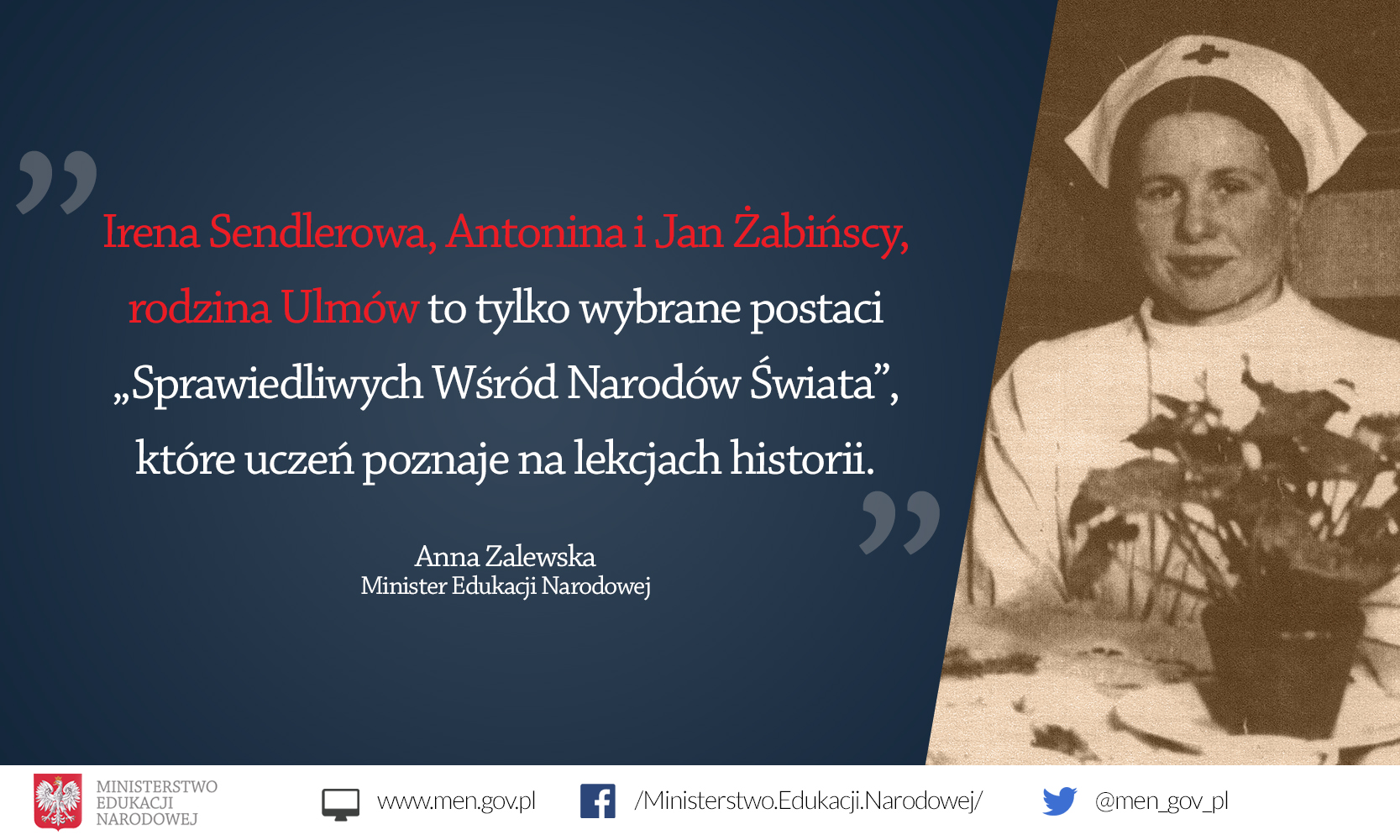 Postać Ireny Sendlerowej została wskazana w nowej podstawie programowej do 4-letniego liceum ogólnokształcącego i 5-letniego technikum. W realizacji podstawy z przedmiotu historia zakresu podstawowego uczeń charakteryzować będzie postawy społeczeństwa polskiego i społeczności międzynarodowej wobec Holokaustu, z uwzględnieniem „sprawiedliwych”, na przykładzie Ireny Sendlerowej, Antoniny i Jana Żabińskich oraz rodziny Ulmów.