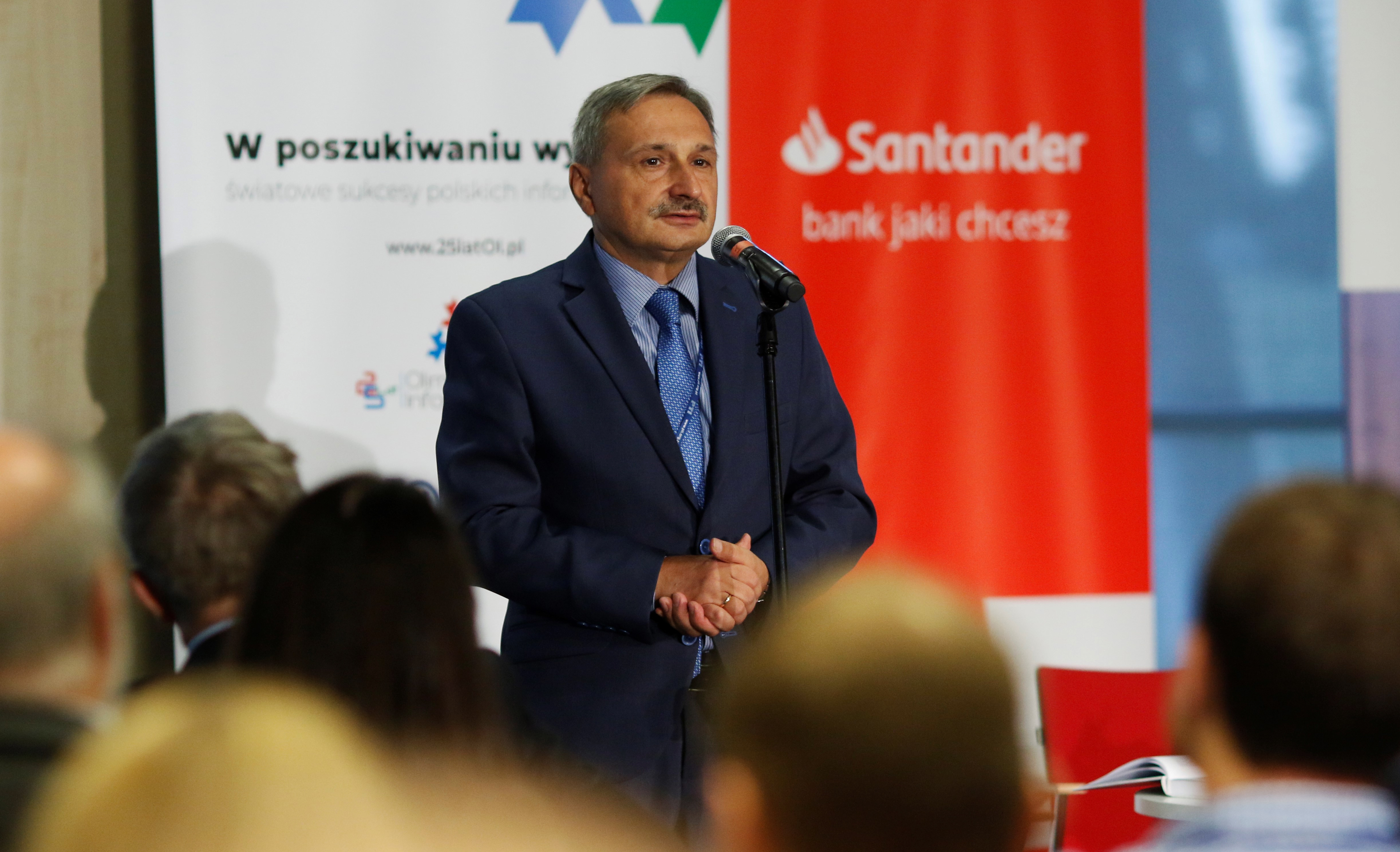 Wiceminister edukacji w swoim przemówieniu podziękował wszystkim osobom i instytucjom, które przez ostatnie 25 lat przyczyniły się do rozwijania polskiej informatyki.