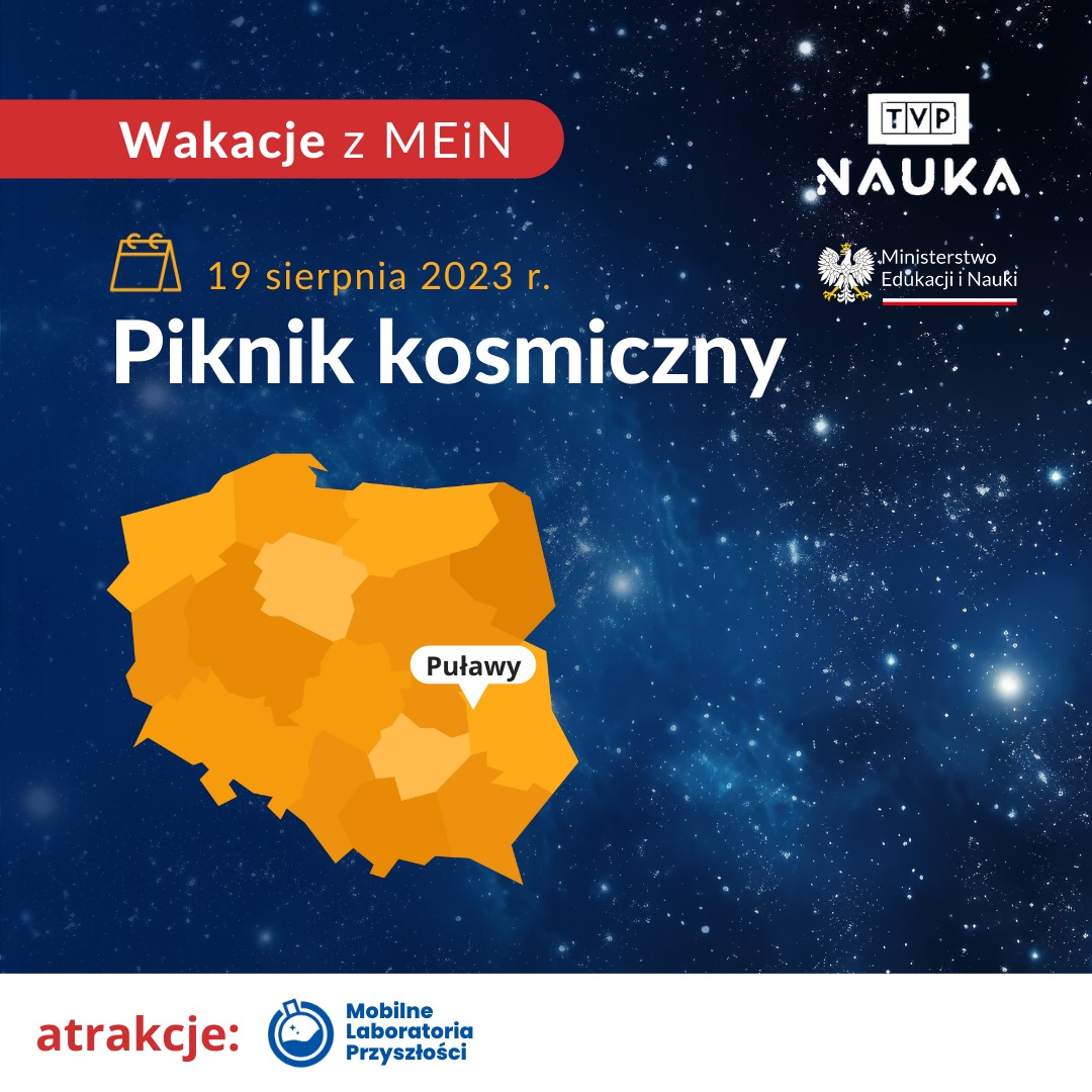 W Obserwatorium Astronomicznym w Puławach zobaczymy, jak powstają modele rakiet. Ponadto podczas pikniku spotkamy się m.in. z prof. Andrzejem Niedzielskim (Uniwersytet Mikołaja Kopernika i Szkoła Główna Mikołaja Kopernia), z którym zagłębimy się w tajemnice odległych planet krążących wokół innych gwiazd. Z prof. Hanną Rothkaehl (Centrum Badań Kosmicznych PAN) i Przemysławem Rudziem (Polska Agencja Kosmiczna) porozmawiamy o udziale Polaków w badaniach kosmosu.
