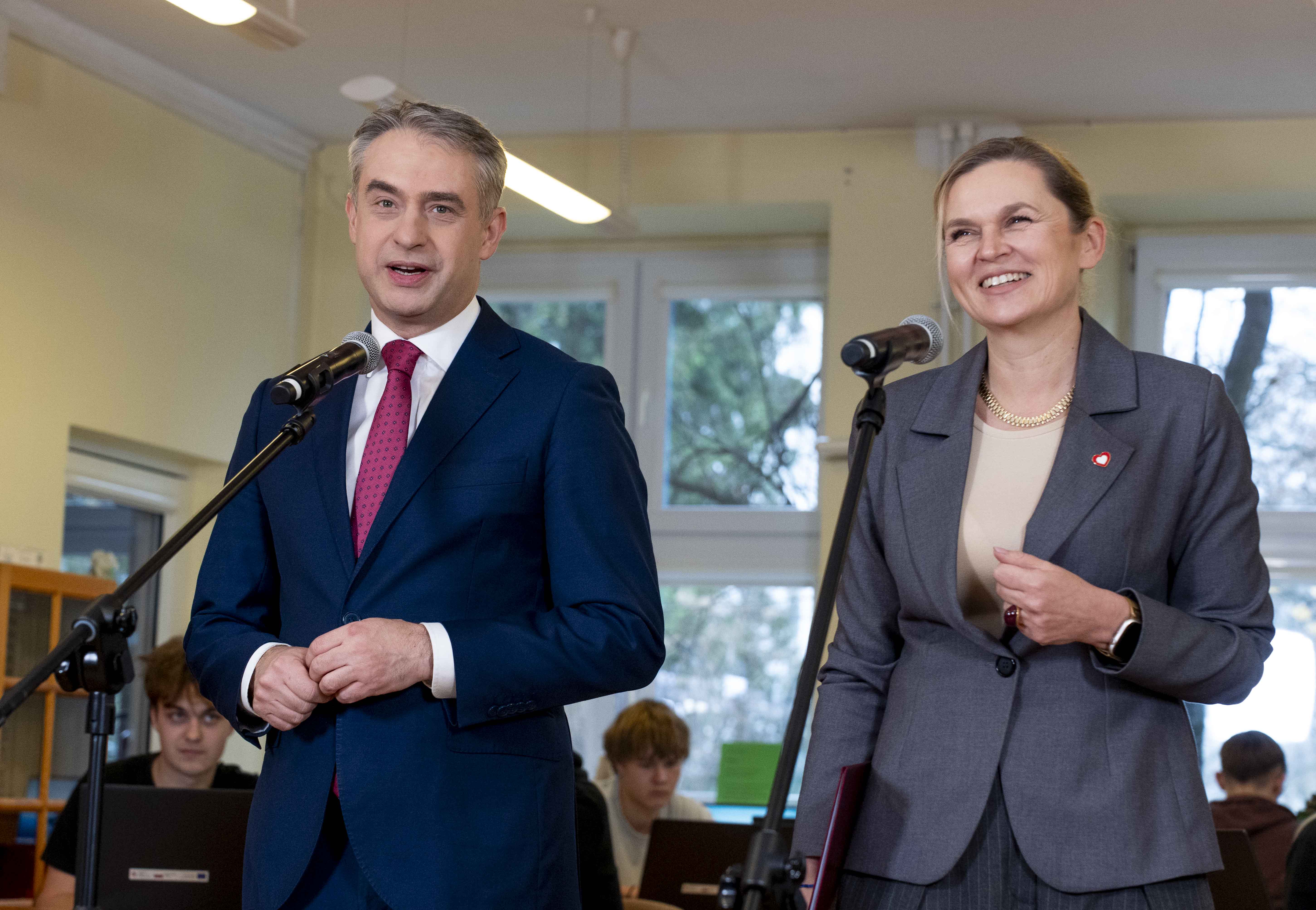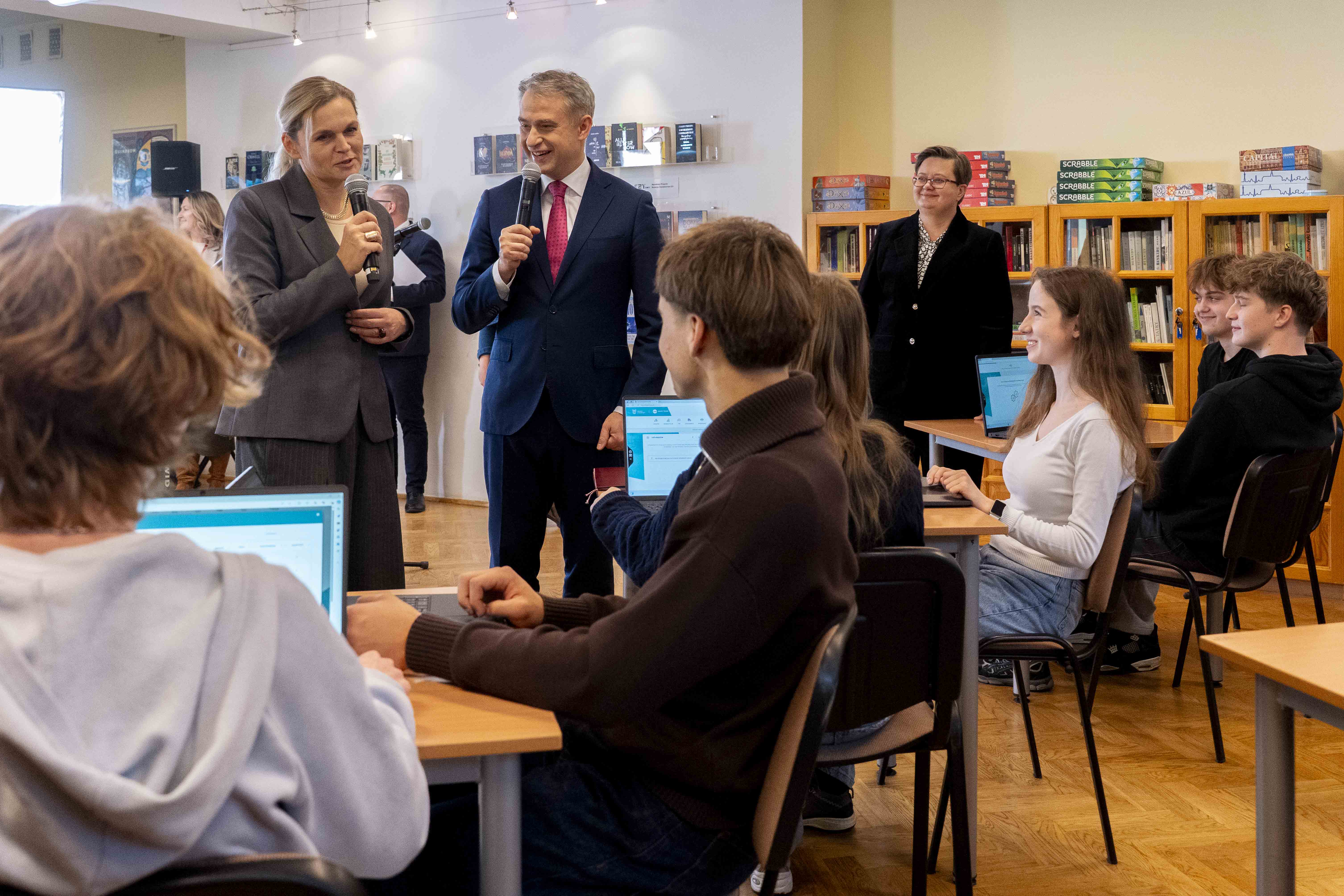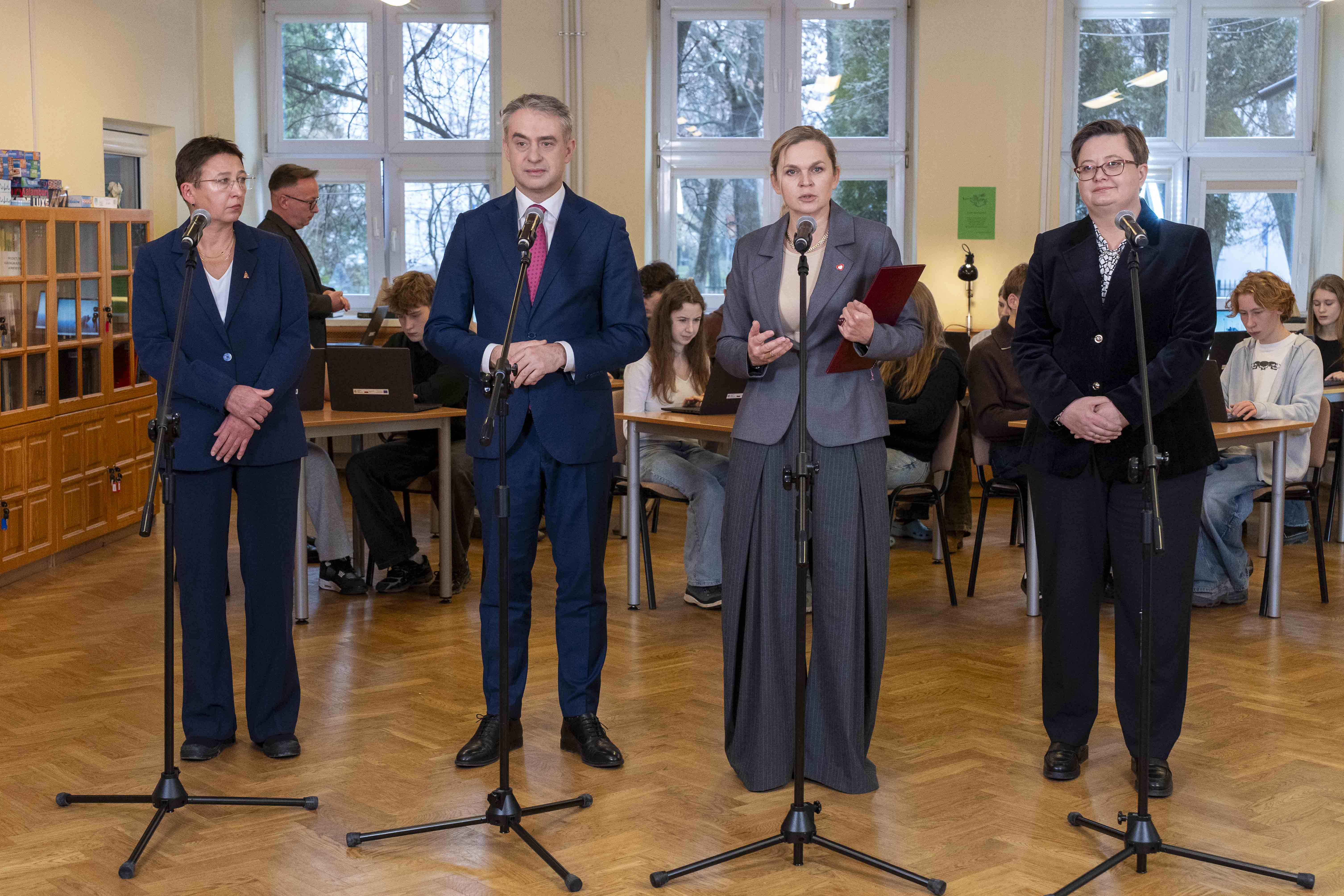 Minister edukacji Barbara Nowacka oraz wicepremier i minister cyfryzacji Krzysztof Gawkowski wzięli udział w konferencji prasowej w VI Liceum Ogólnokształcącym im. T. Reytana w Warszawie. Szefowie MEN i MC podkreślili, że cyfrowa transformacja polskiej szkoły staje się faktem - do szkół w całym kraju trafiają setki tysięcy nowoczesnych urządzeń, które pomogą uczniom rozwijać kompetencje przyszłości.