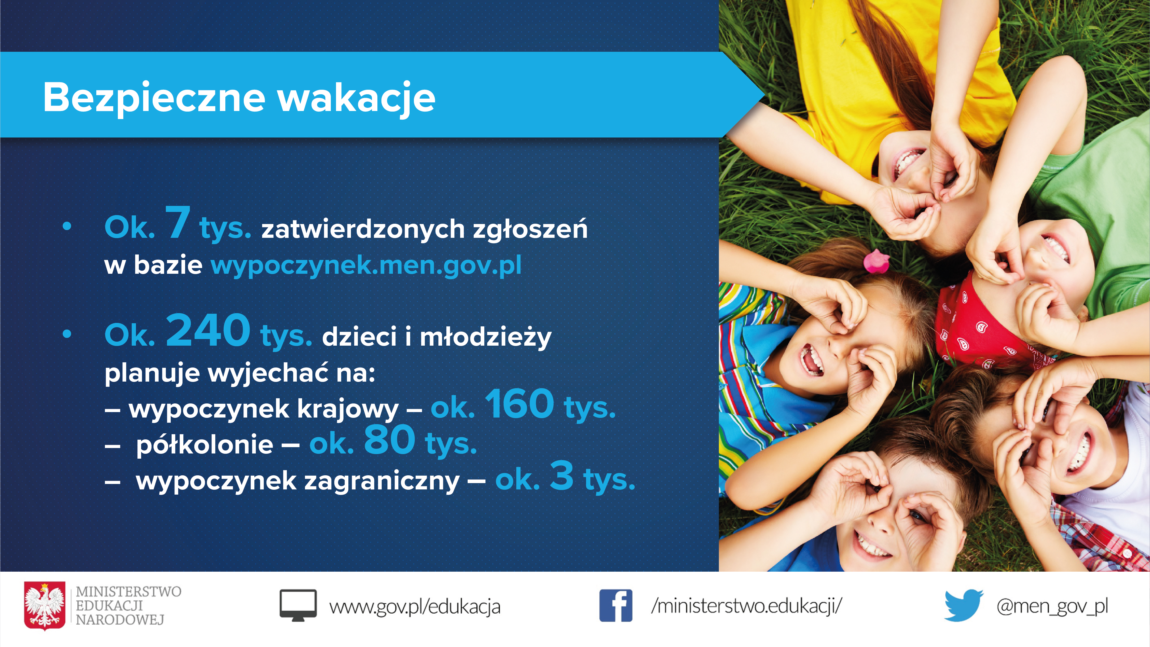 Bezpieczeństwo uczniów podczas zorganizowanych wyjazdów wakacyjnych zarówno krajowych, jak i zagranicznych jest jednym z priorytetowych działań Ministerstwa Edukacji Narodowej. W tym roku z uwagi na pandemię koronawirusa MEN apeluje szczególnie o przestrzeganie przepisów sanitarno-higienicznych podczas przejazdów i pobytu na wypoczynku. Wsparciem dla organizatorów wypoczynku dzieci i młodzieży są w tej kwestii szczegółowe wytyczne sanitarne przygotowane przez GIS, MZ i MEN. U progu wakacji MEN przypomina również o informacjach, z jakimi warto zapoznać się przed rozpoczęciem letniego wypoczynku.