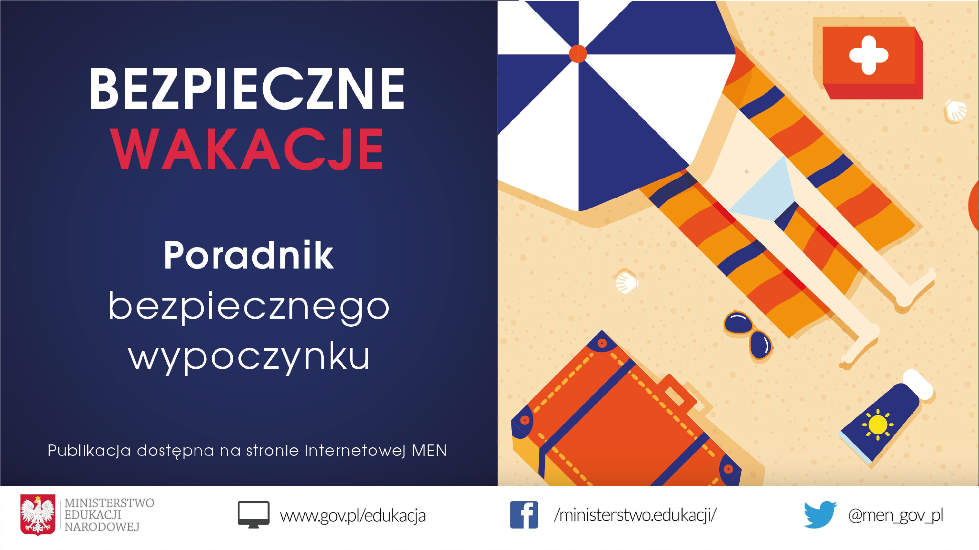 Rodzicom i dzieciom przygotowującym się do wakacyjnych wyjazdów polecamy „Poradnik bezpiecznego wypoczynku”. Opracowana przez MEN publikacja jest dostępna na stronie: https://www.gov.pl/web/edukacja/bezpieczny-wypoczynek-poradnik-men-dla-rodzicow-i-opiekunow-2.
