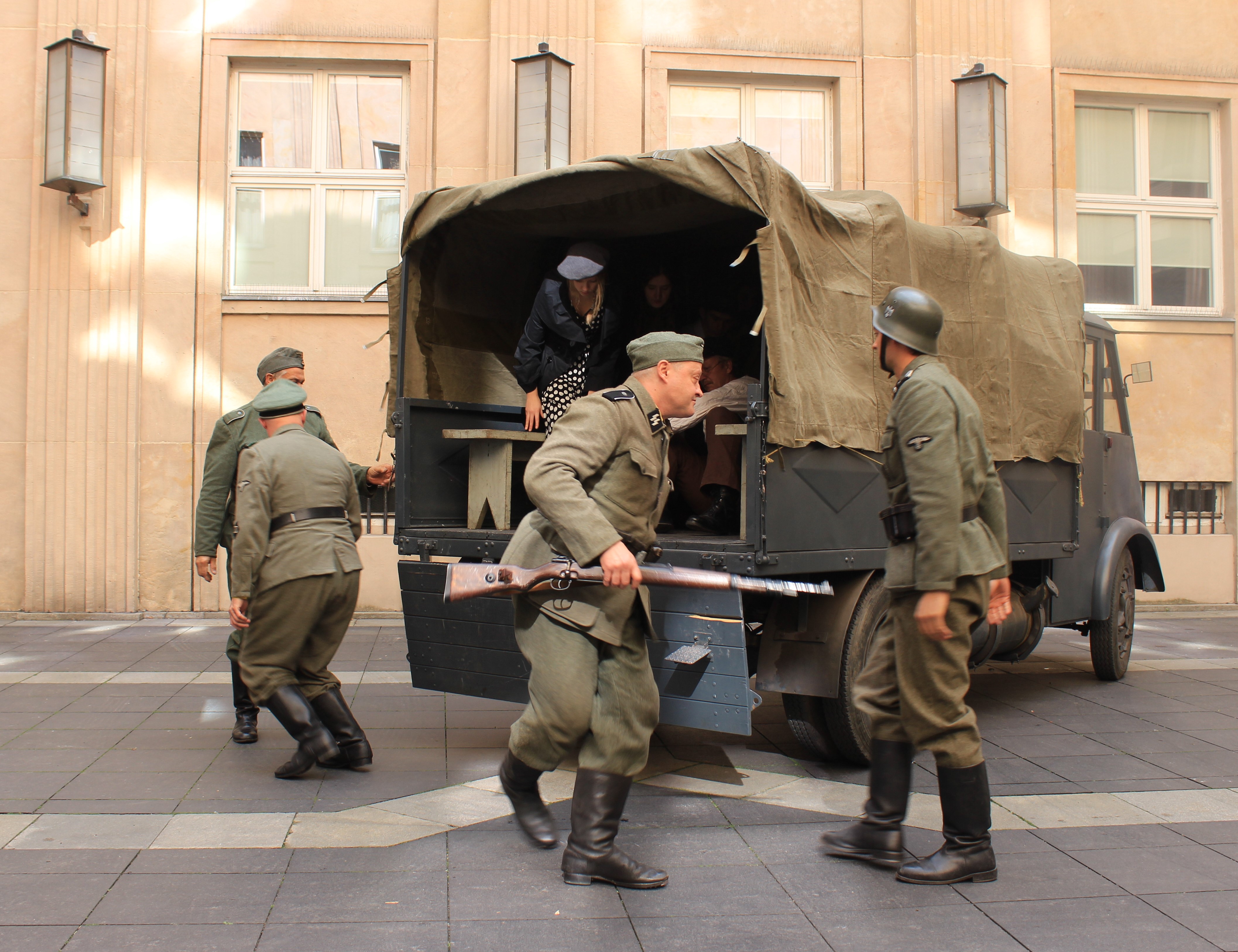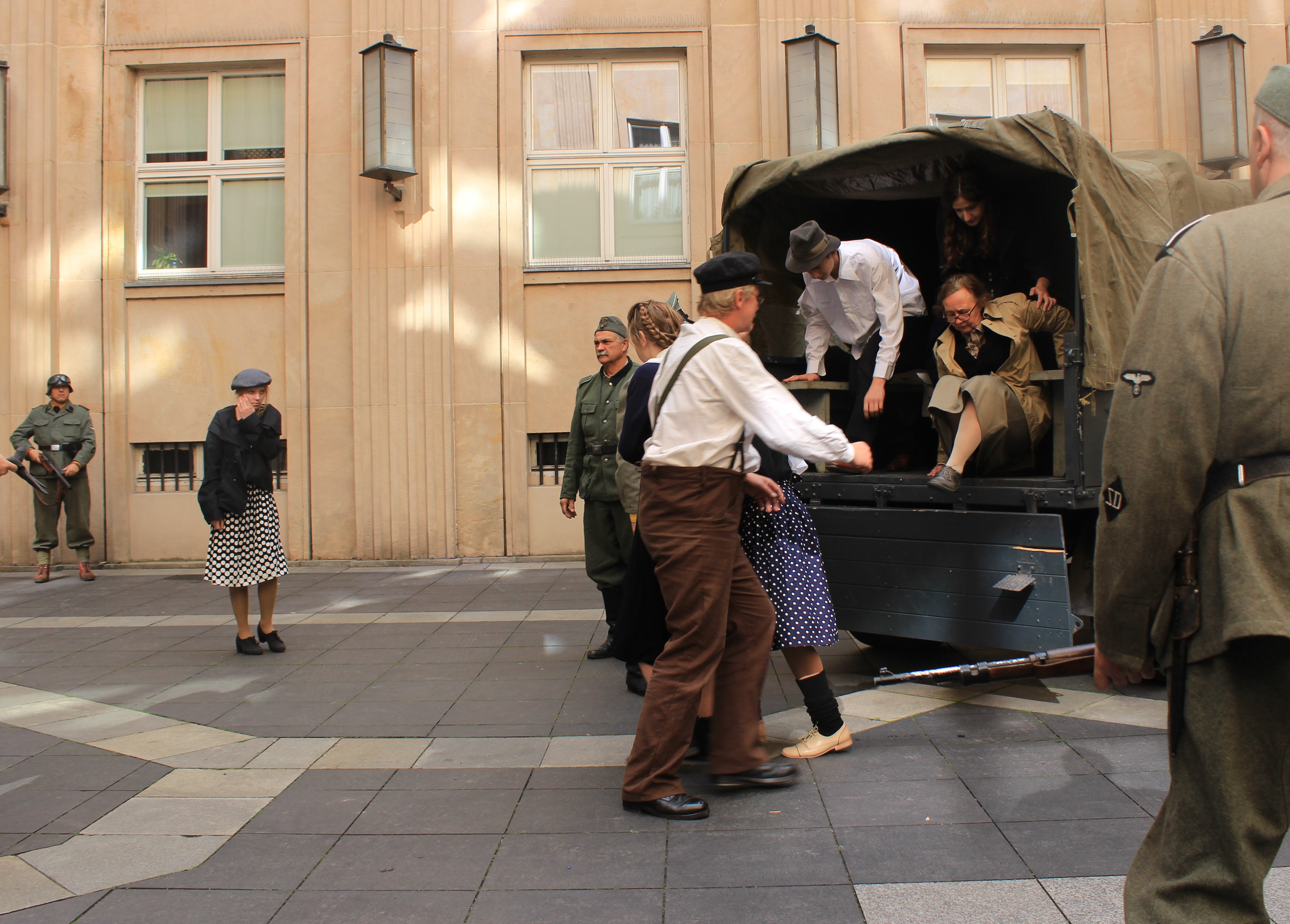 W czwartek, 4 października br. w ramach obchodów „Dni Pamięci Pawiaka” na dziedzińcu Ministerstwa Edukacji Narodowej odbyły się prezentacje historyczno-edukacyjne, podczas których odtworzono przewóz więźniów oraz przesłuchania w katowni Gestapo przy al. Szucha.
