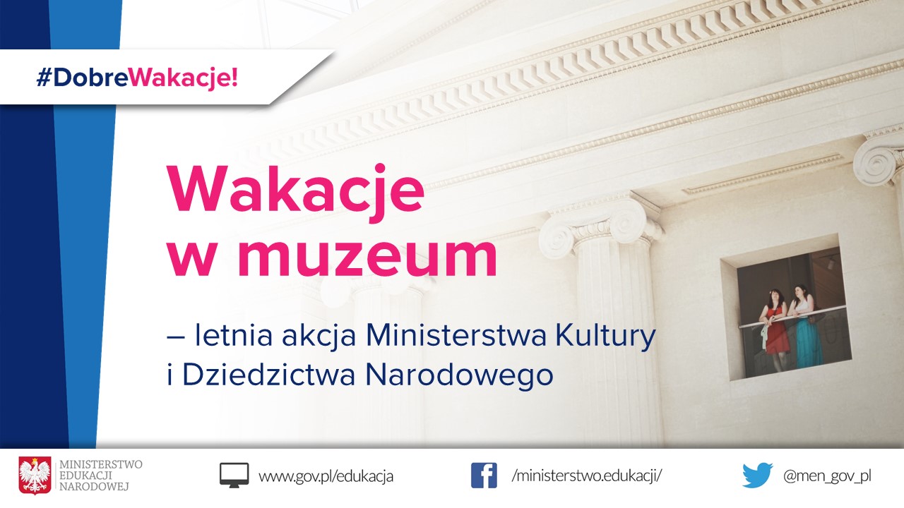 Ministerstwo Edukacji Narodowej rozpoczyna akcję #DobreWakacje. Każdego dnia do końca wakacji będziemy zamieszczać na naszych kanałach internetowych informacje o wartościowych przedsięwzięciach edukacyjnych, sportowych czy kulturalnych oraz ciekawe propozycje spędzania wolnego czasu. Będziemy również przypominać o bezpieczeństwie podczas wakacji. Chcemy w ten sposób wesprzeć uczniów i rodziców, którzy ze względu na pandemię koronawirusa musieli zmienić lub ograniczyć swoje plany wypoczynkowe.