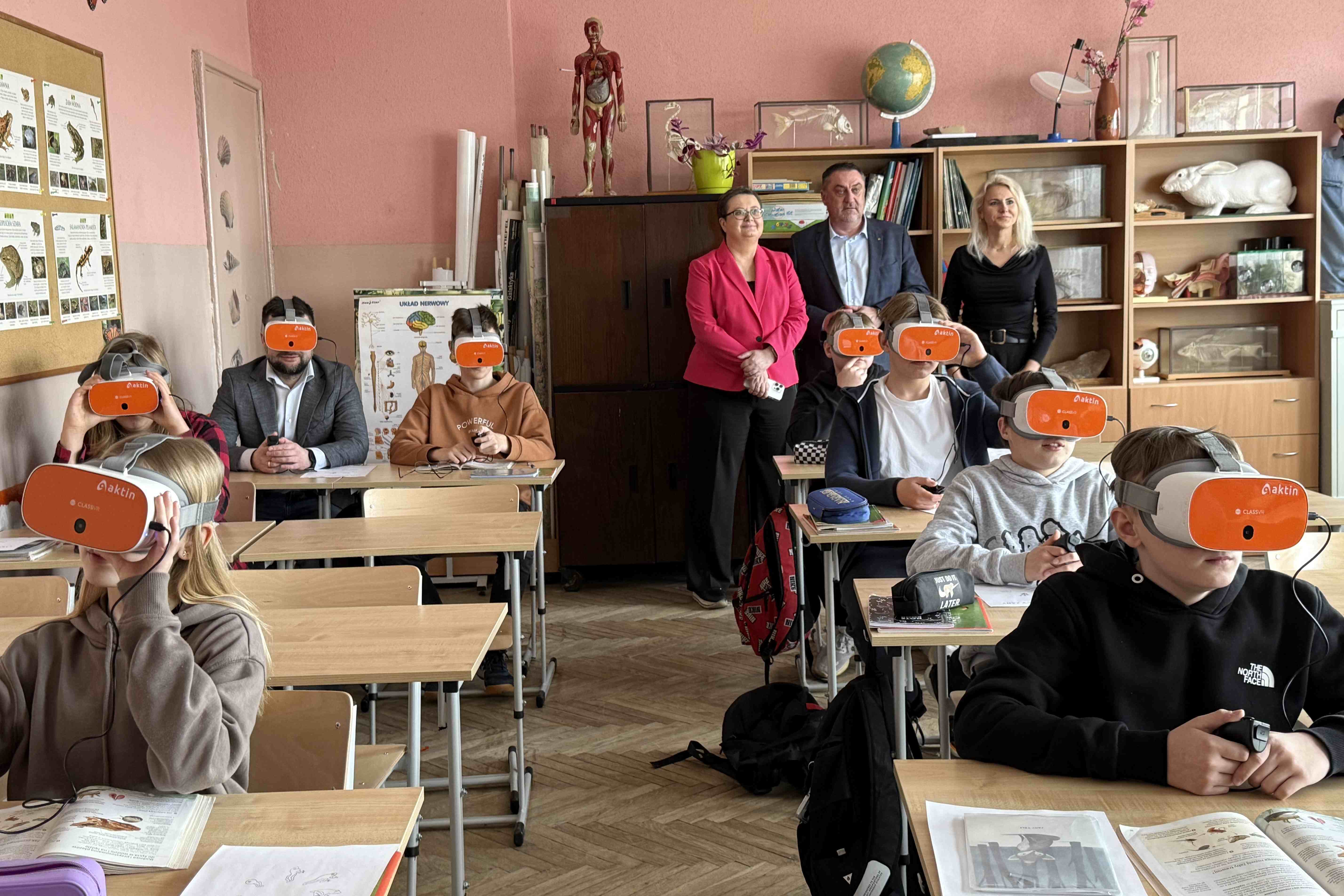 Kolejnym punktem było zaprezentowanie najnowocześniejszej pracowni językowej, gdzie uczniowie mogą doskonalić umiejętności płynnego czytania w językach obcych przy wsparciu sztucznej inteligencji. Minister miała także okazję zobaczyć wirtualną wystawę dotyczącą historii szkoły, w której za pomocą kodów QR uczniowie mogą odkrywać ożywione postacie historyczne dzielą się ciekawostkami związanymi ze szkołą oraz archiwalne zdjęcia pokolorowane za pomocą technologii AI. Ostatnim punktem było doświadczenie nauk przyrodniczych z wykorzystaniem okularów VR i materiałów wideo 360 stopni.
