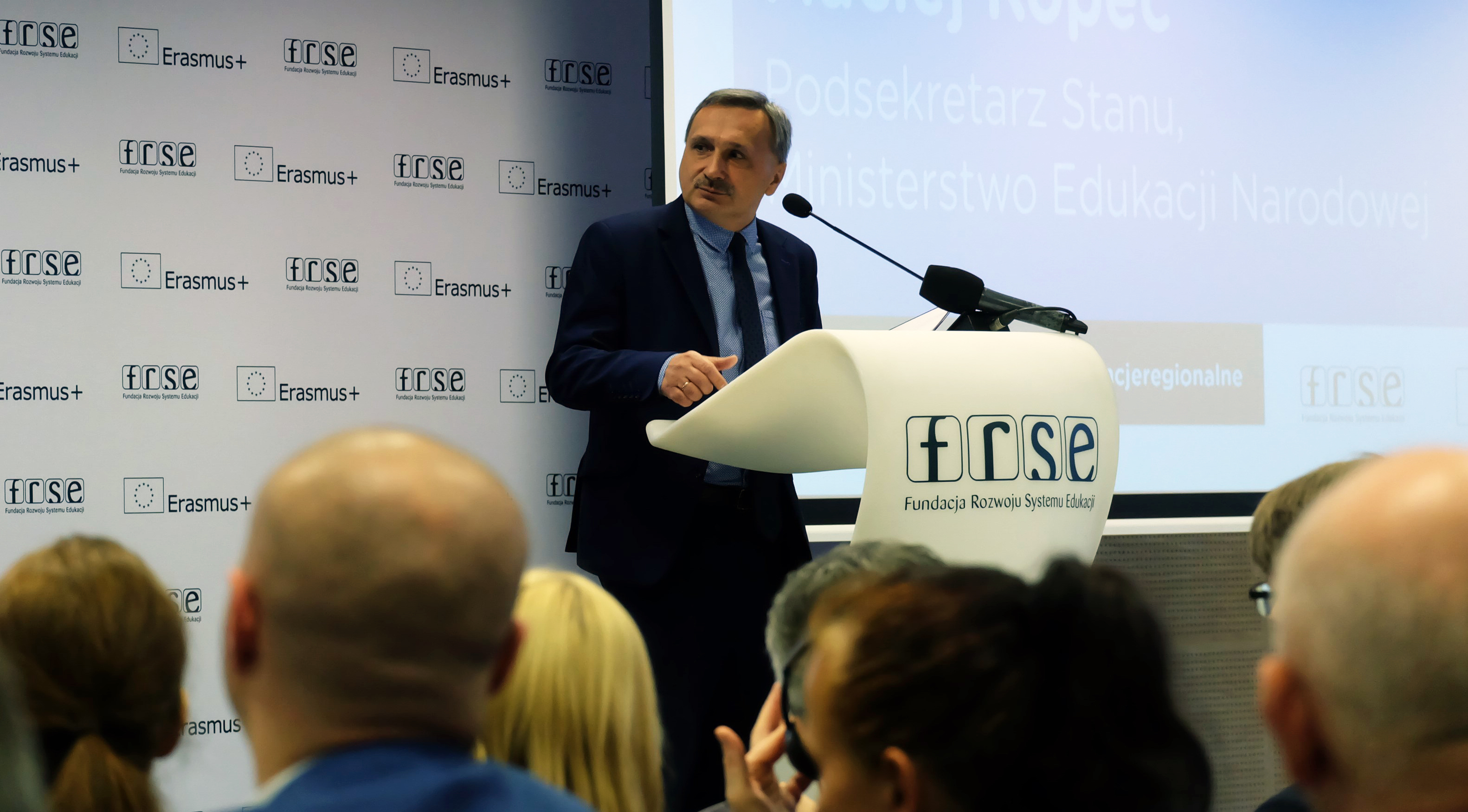 Wiceminister edukacji Maciej Kopeć w poniedziałek uczestniczył w konferencji regionalnej programu Erasmus+ „Edukacja z informatyką”, zorganizowanej przez Fundację Rozwoju Systemu Edukacji. Tematem przewodnim konferencji była prezentacja jakościowej zmiany w edukacji, wynikającej z podstawy programowej w zakresie wykorzystania nowych technologii w nauczaniu.