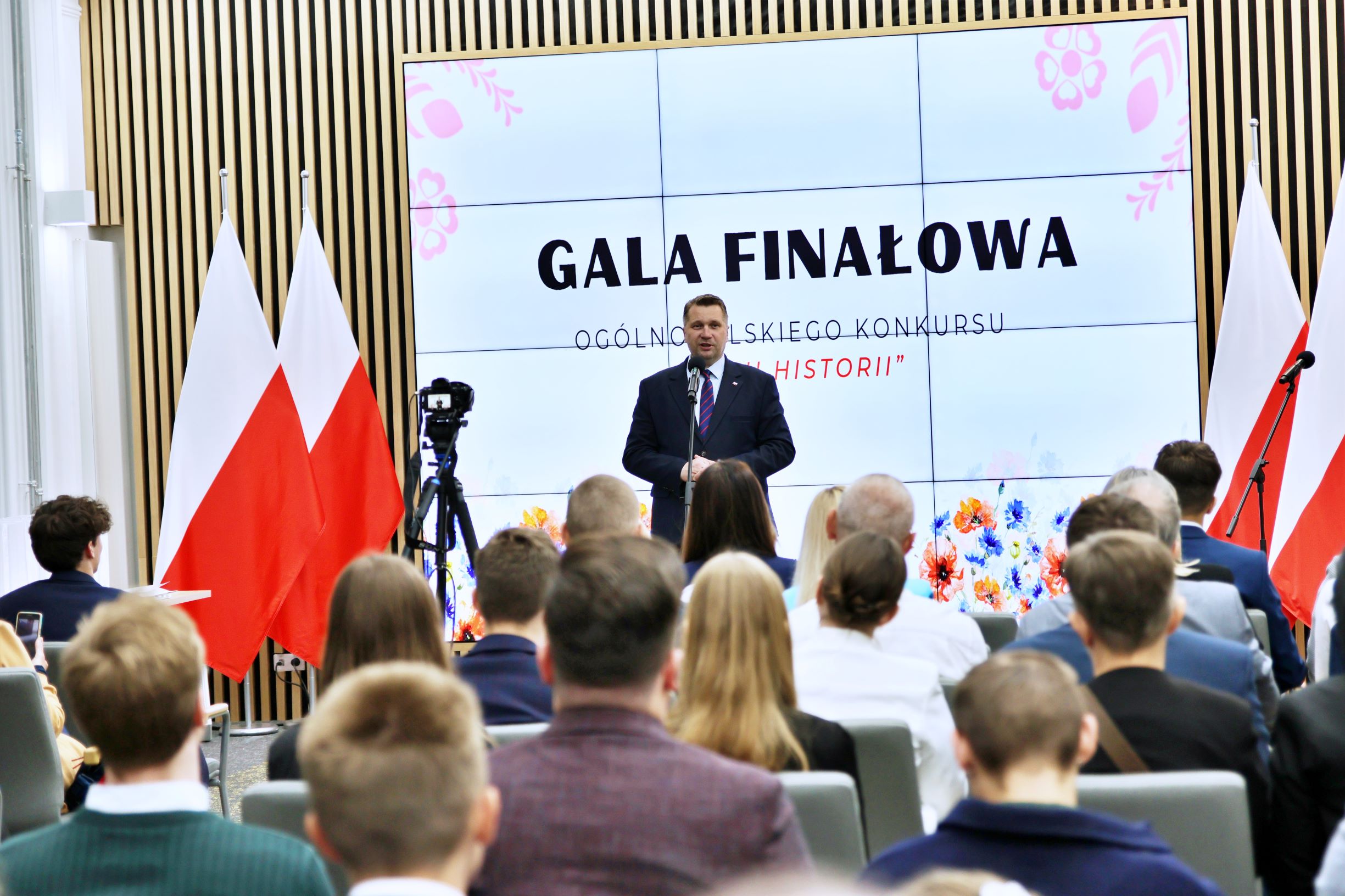 - Nie ma przyszłości bez znajomości historii. Jeśli nie jesteśmy świadomi swoich korzeni, jeśli nie jesteśmy świadomi fundamentów, na których budujemy, to nie jesteśmy w stanie odpowiedzialnie zbudować przyszłości. A przyszłość to dzieci i młodzież, to wszyscy laureaci naszego konkursu. Ogromnie się cieszę, że tak wielu młodych ludzi zajmuje się tematami historycznymi – mówił minister Przemysław Czarnek dziękując uczniom i opiekunom za udział w konkursie oraz zaangażowanie w jego realizację.