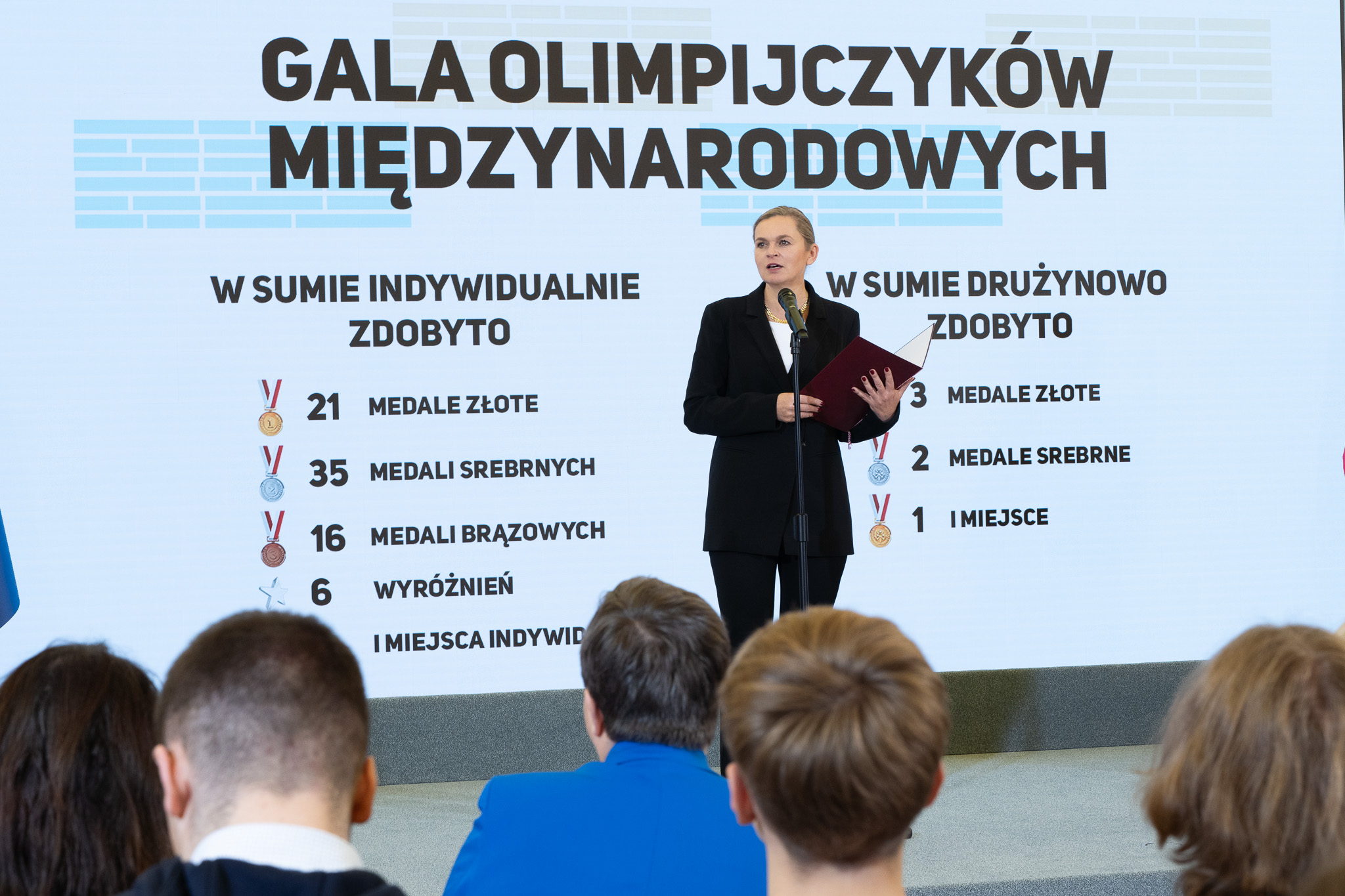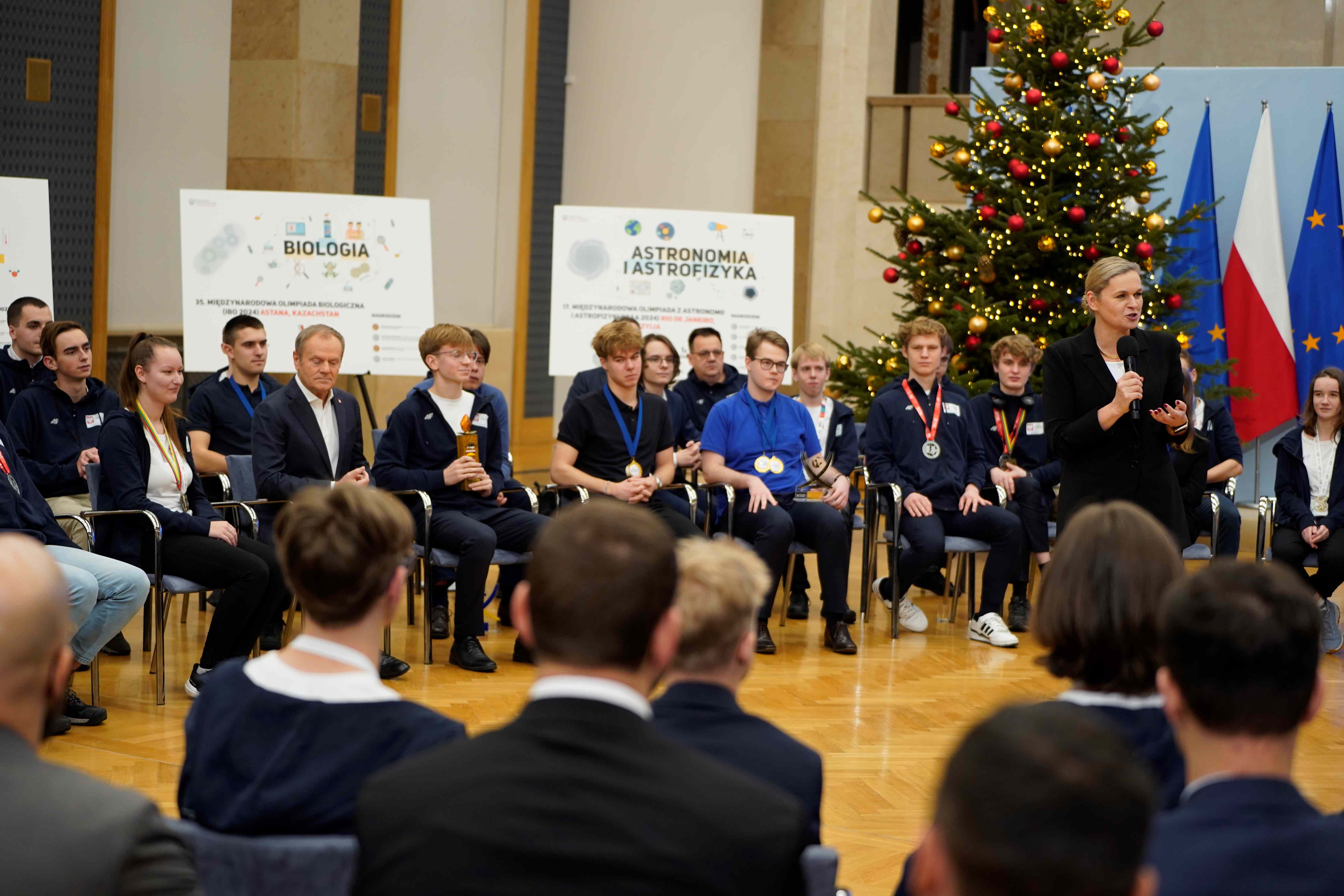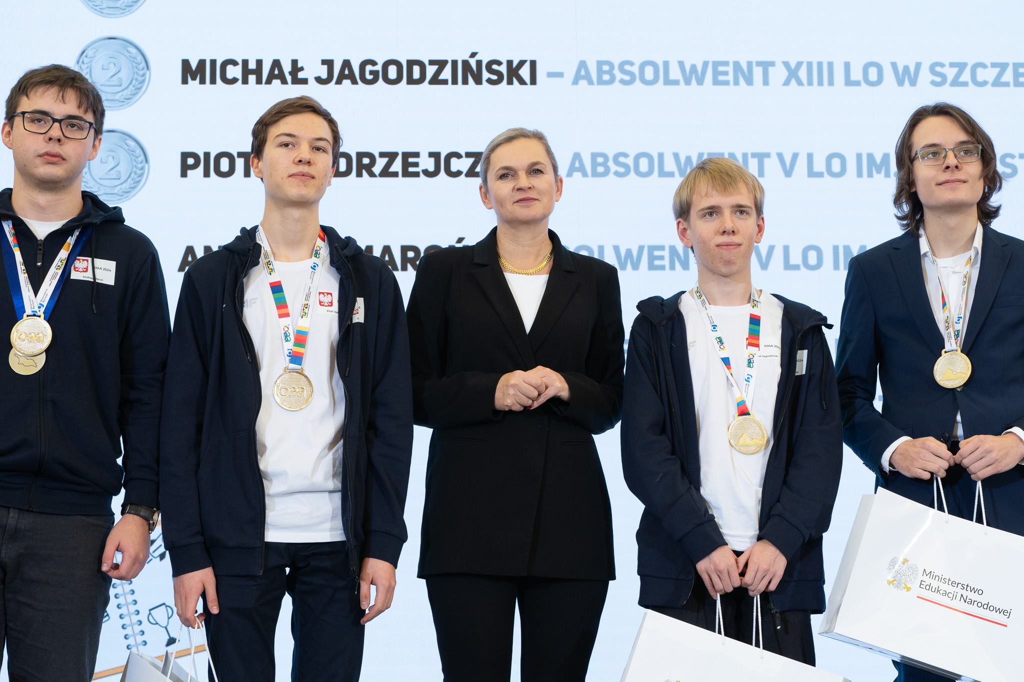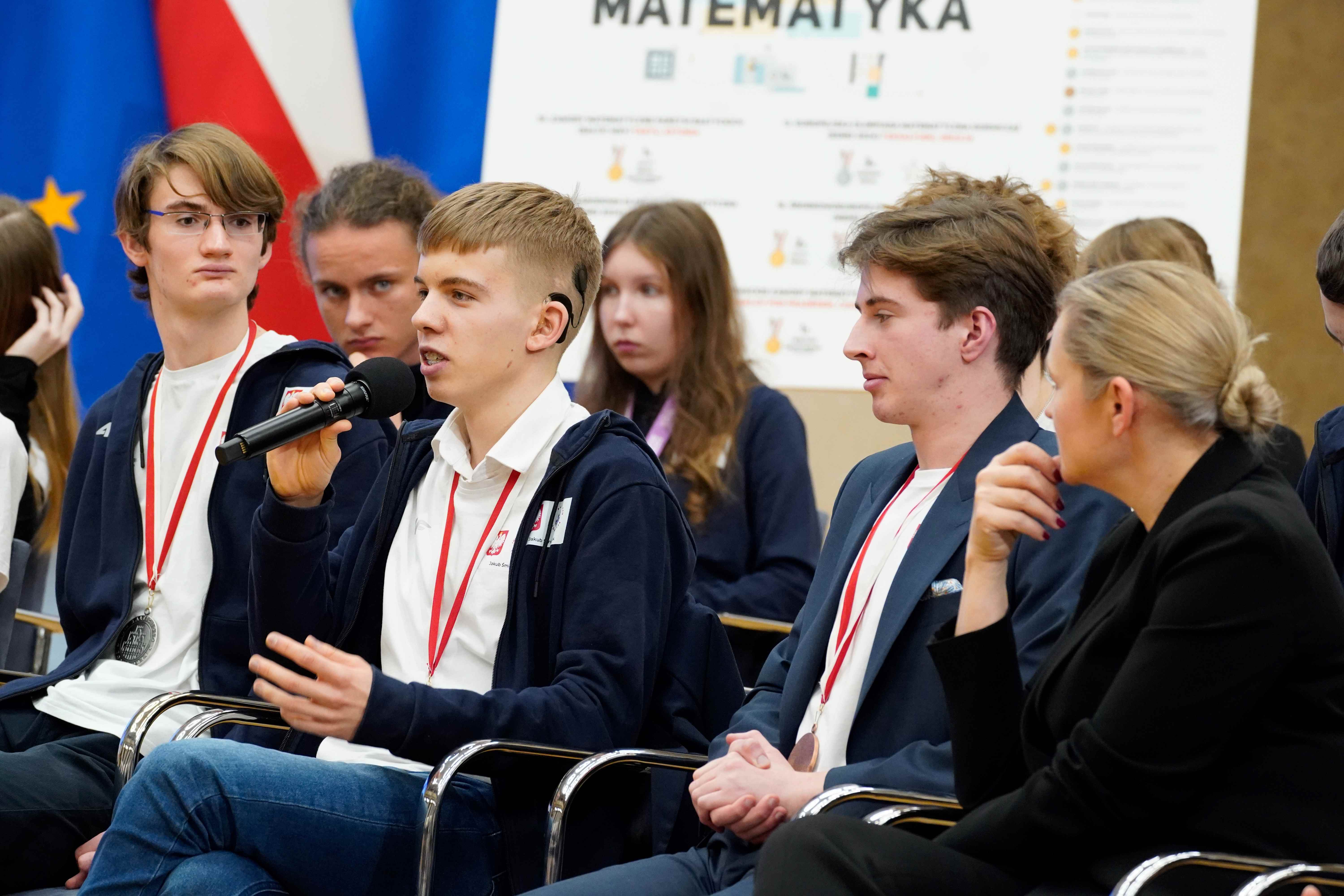 Minister Barbara Nowacka gratulując medalistom powiedziała, że zaszczytem jest spotkanie z najzdolniejszą młodzieżą w Polsce.