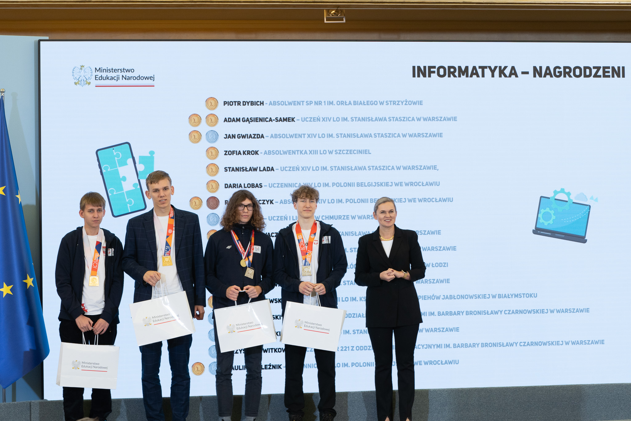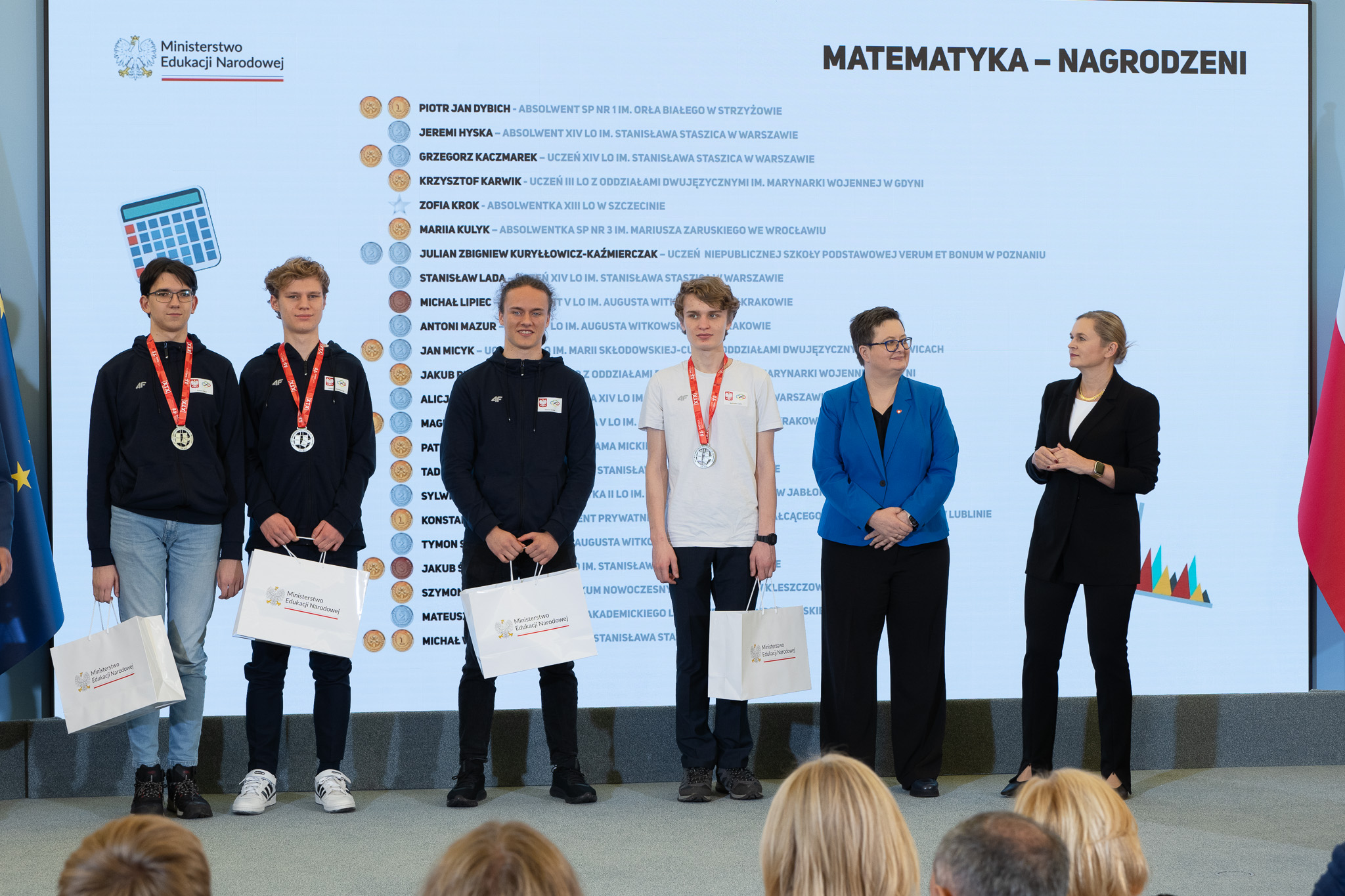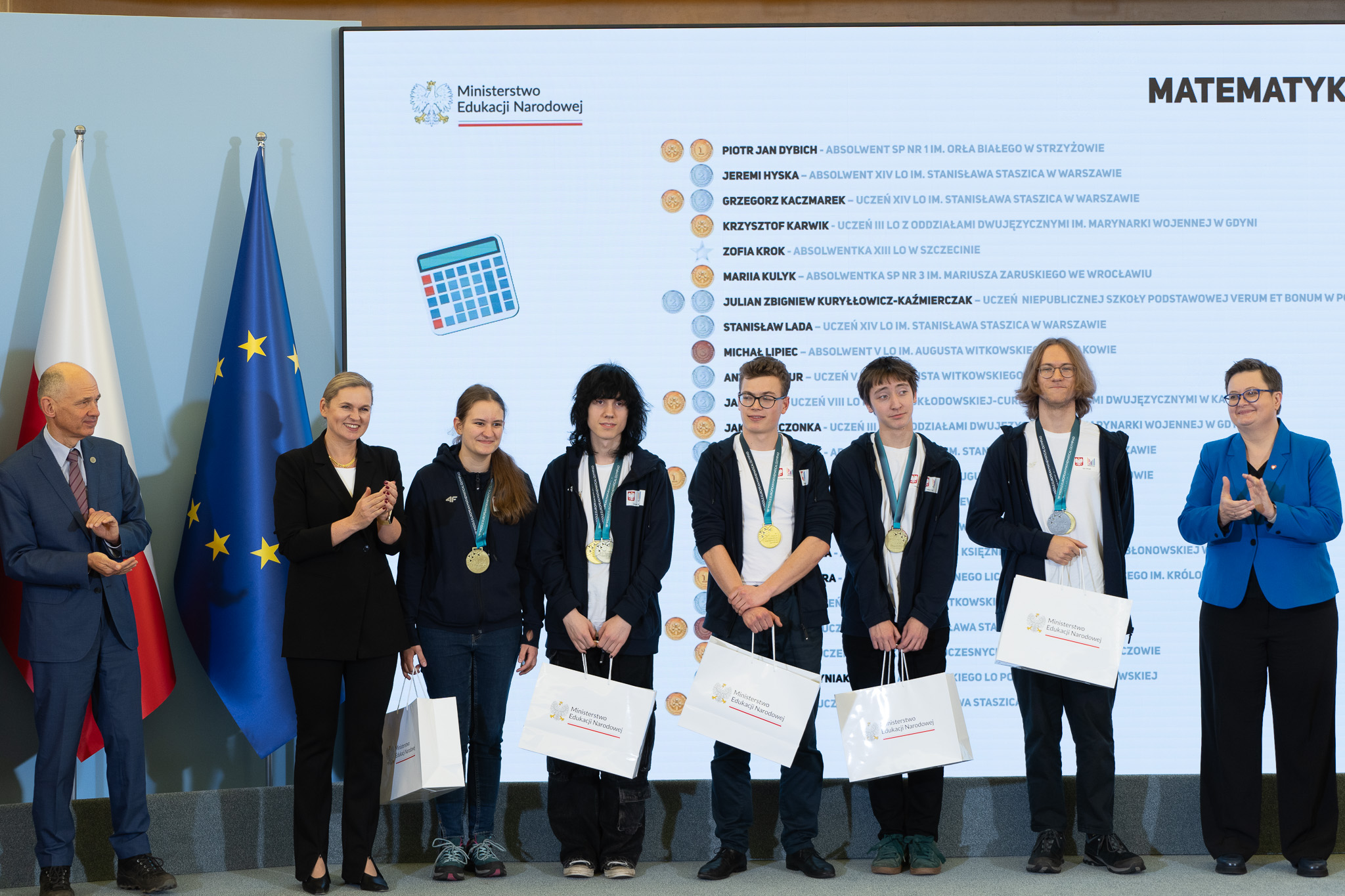 Minister Barbara Nowacka gratulując medalistom powiedziała, że zaszczytem jest spotkanie z najzdolniejszą młodzieżą w Polsce.