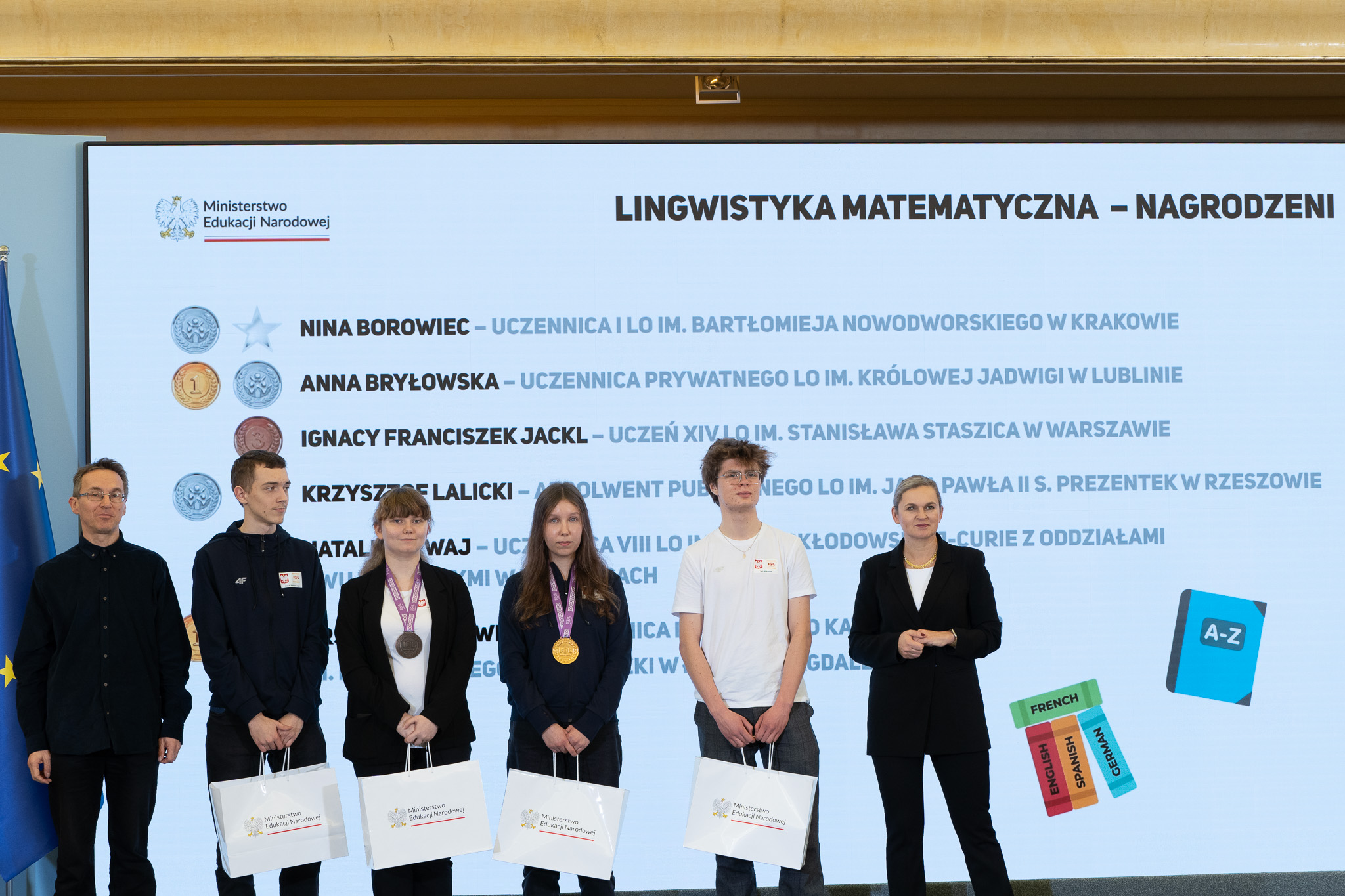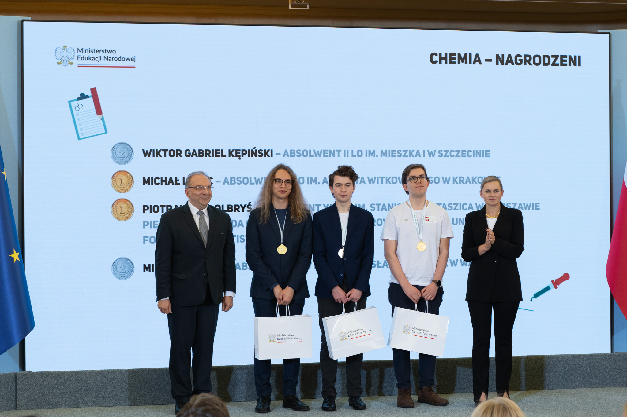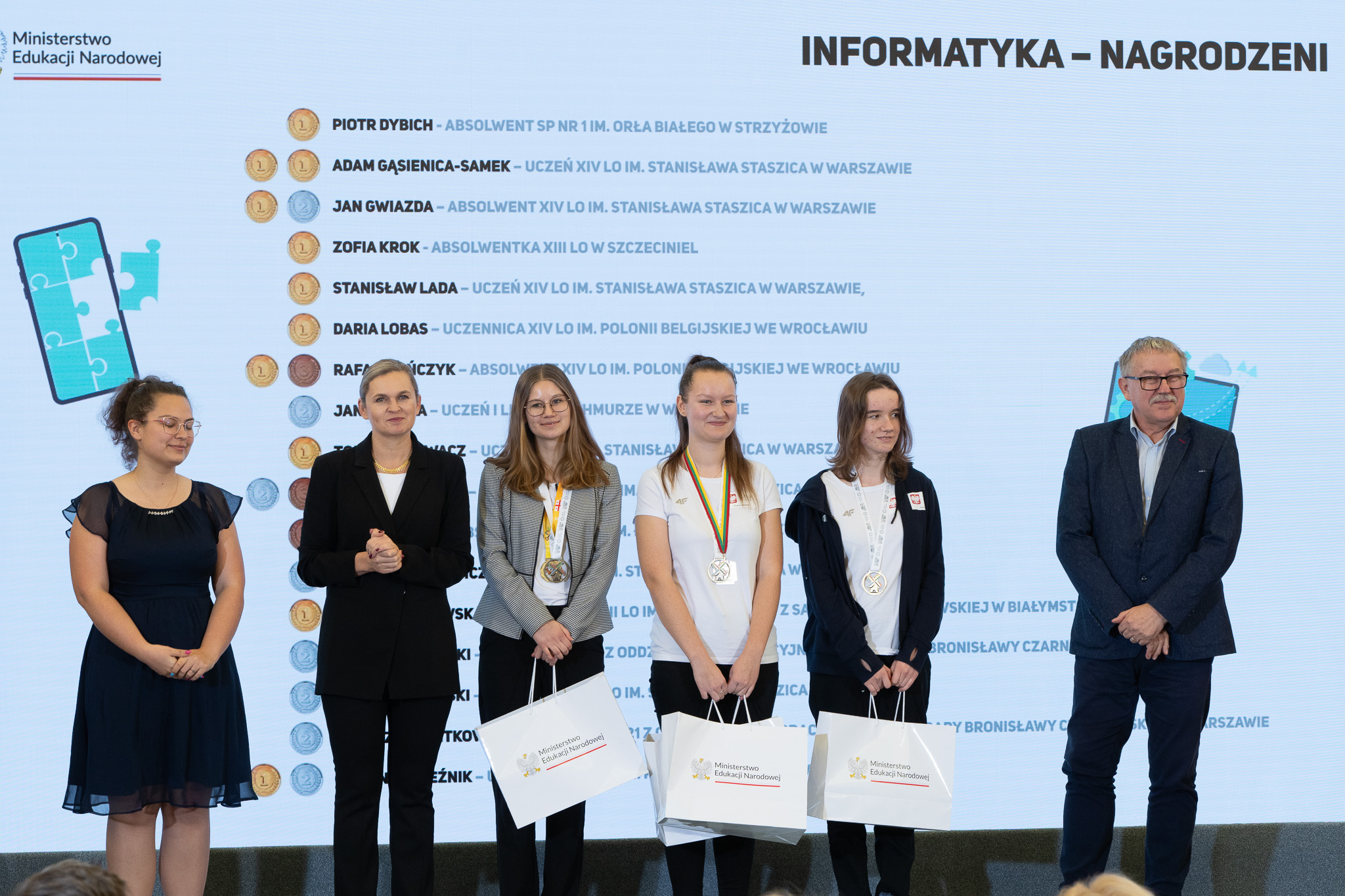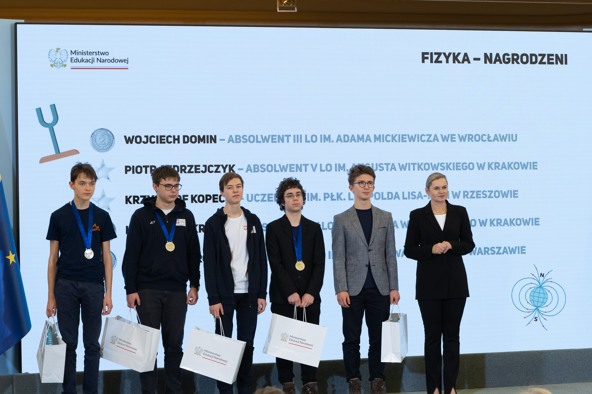 Minister Barbara Nowacka gratulując medalistom powiedziała, że zaszczytem jest spotkanie z najzdolniejszą młodzieżą w Polsce.