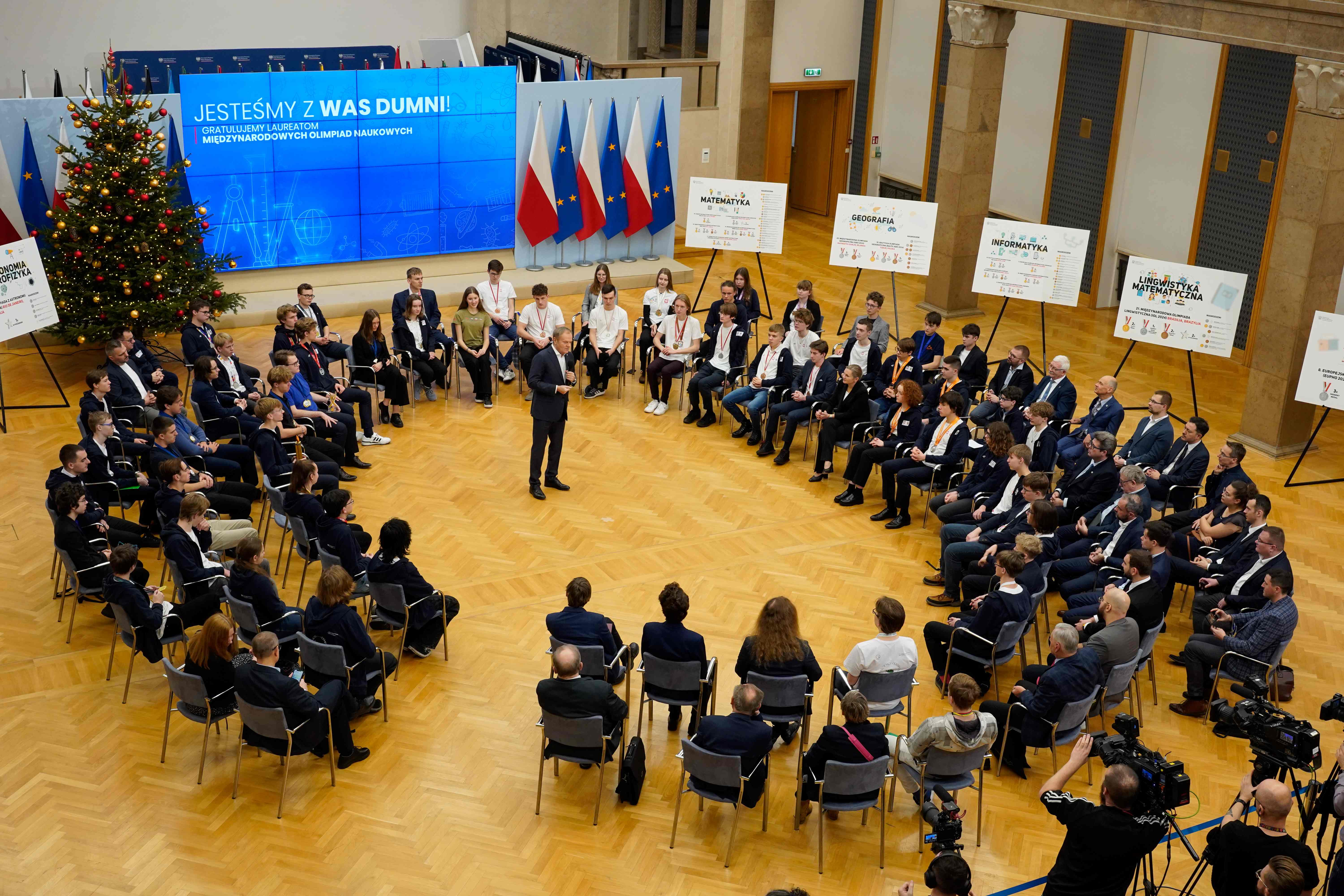 Minister edukacji Barbara Nowacka wspólnie z Premierem Donaldem Tuskiem spotkała się z medalistami, uczestnikami międzynarodowych olimpiad przedmiotowych. W 2024 r. polscy uczniowie na różnych zawodach na całym świecie zdobyli w sumie 72 medale indywidualne i 5 medali drużynowych.