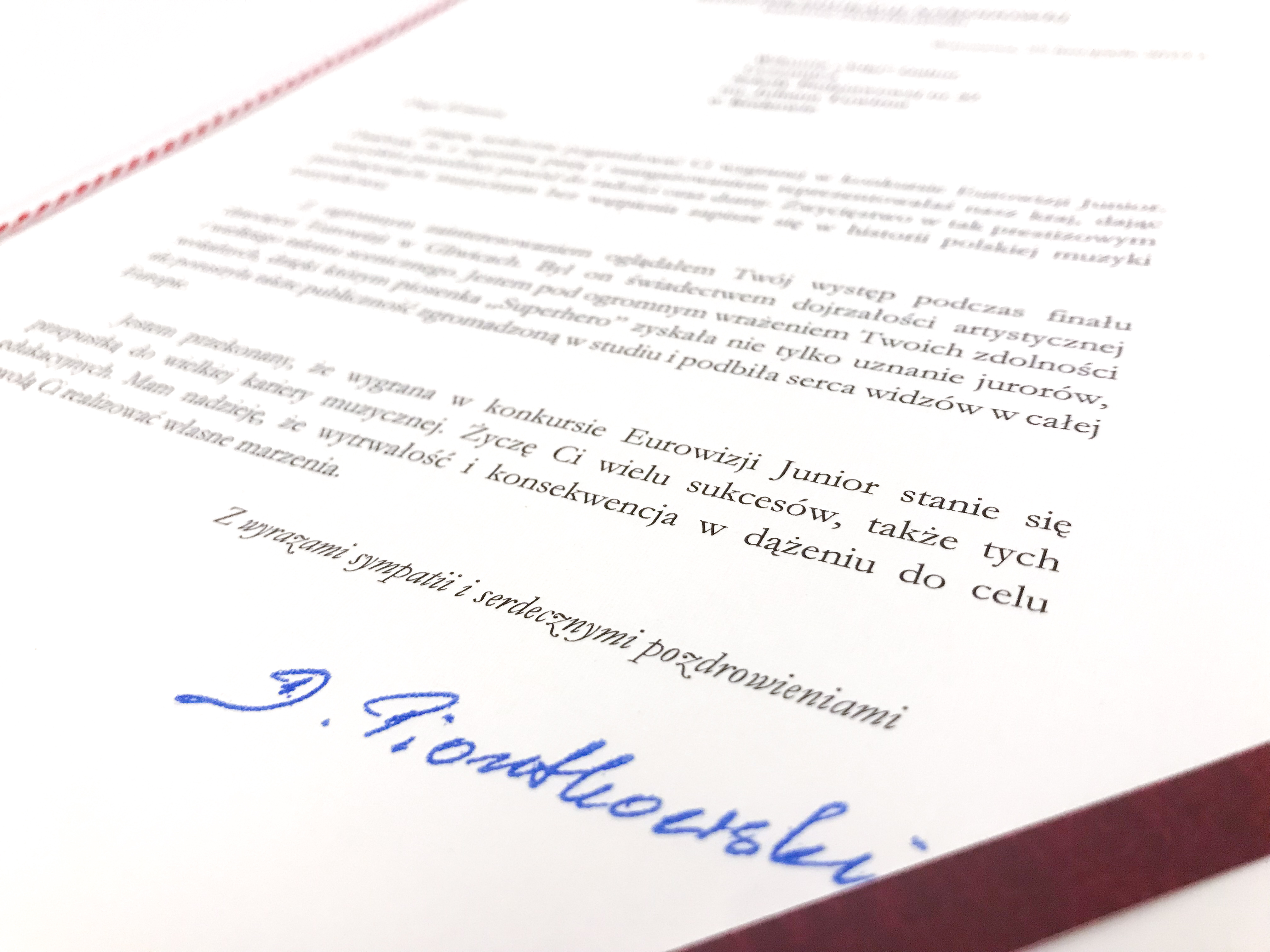 – Dziękuję, że z ogromną pasją i zaangażowaniem reprezentowałaś nasz kraj, dając wszystkim prawdziwy powód do radości oraz dumy. Zwycięstwo w tak prestiżowym przedsięwzięciu muzycznym bez wątpienia zapisze się w historii polskiej muzyki rozrywkowej - napisał minister edukacji. - Życzę Ci wielu sukcesów, także tych edukacyjnych. Mam nadzieję, że wytrwałość i konsekwencja w dążeniu do celu pozwolą Ci realizować własne marzenia - podkreślił minister Dariusz Piontkowski.