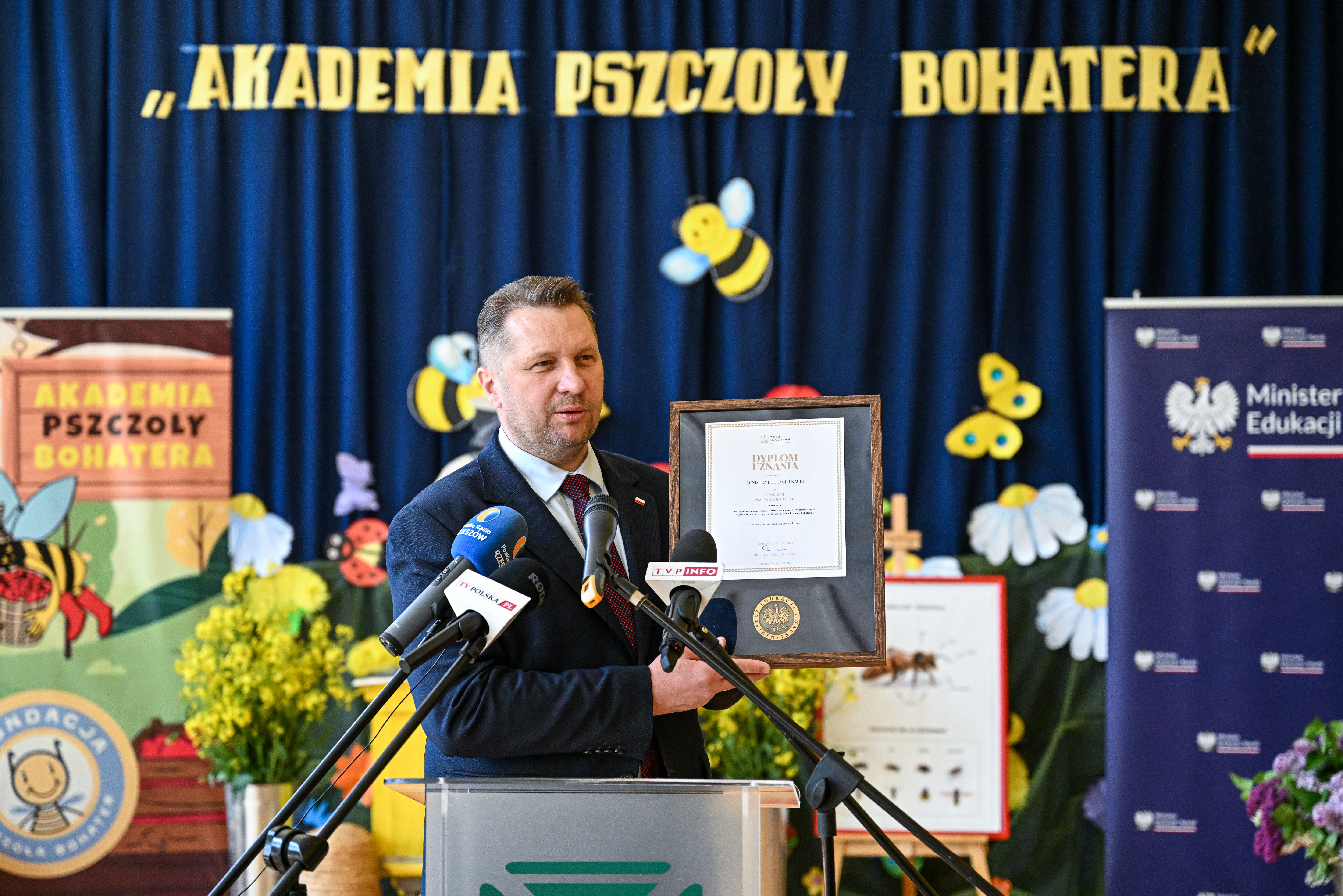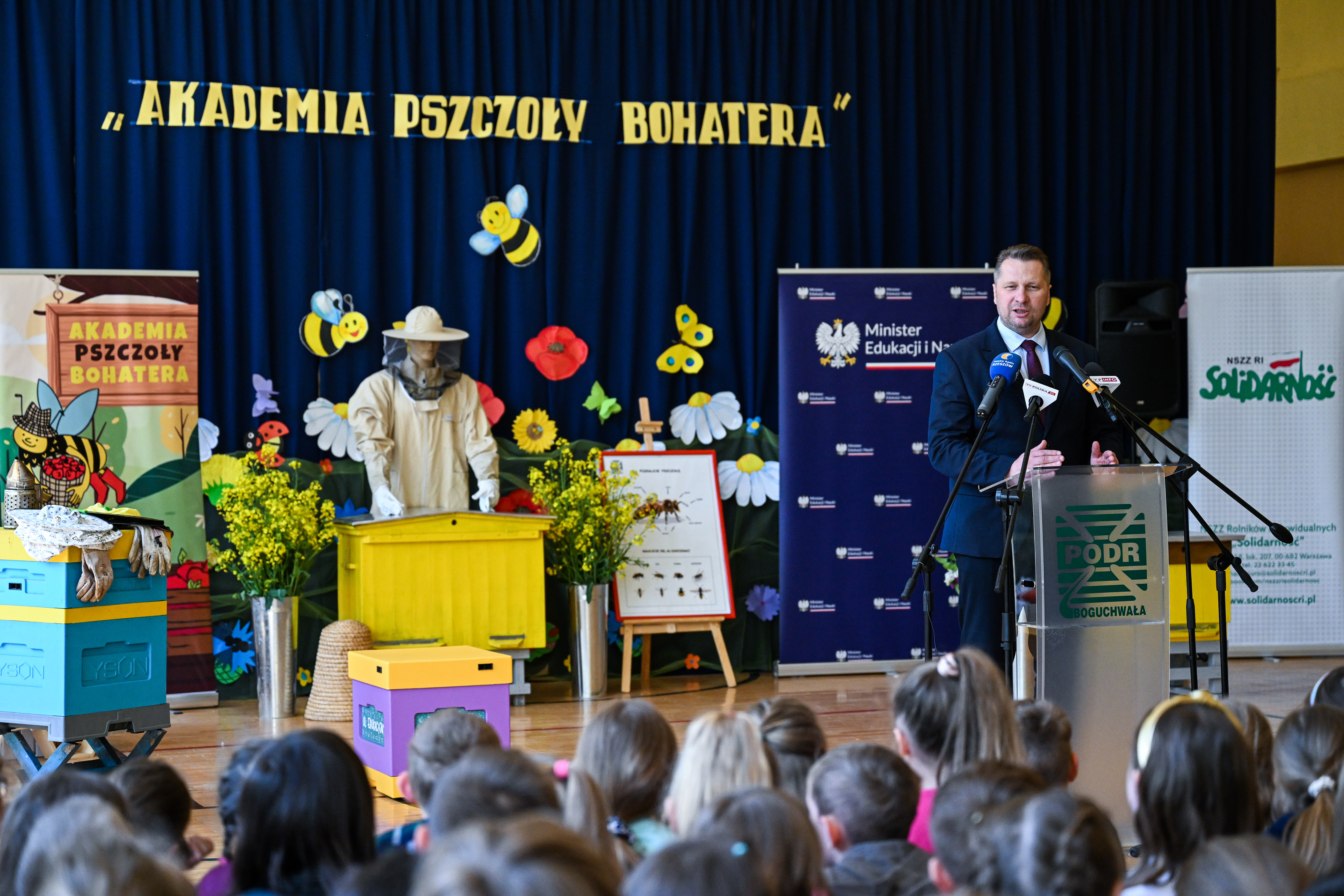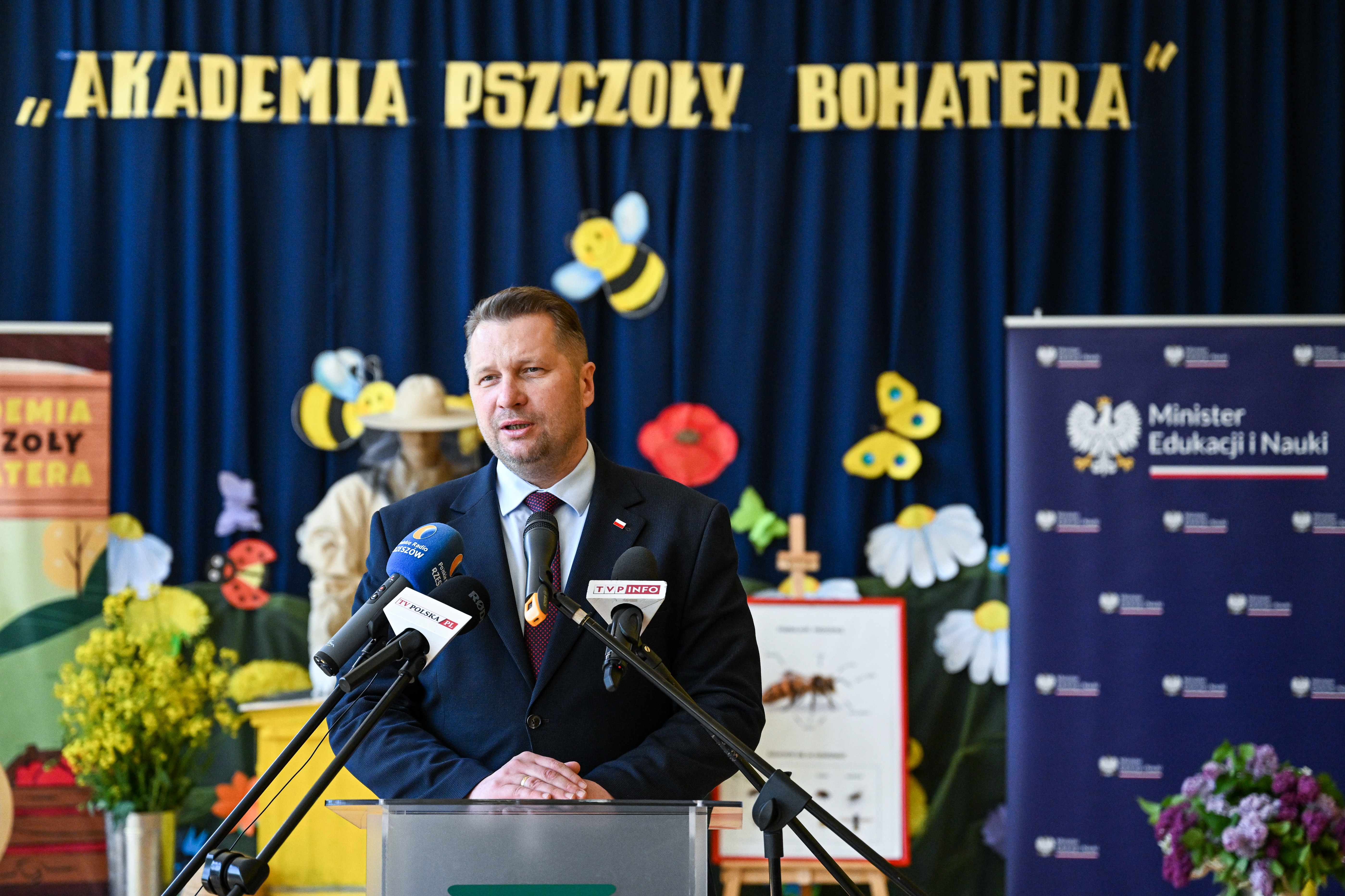 – Program jest szczególnie ważny – mówił minister Przemysław Czarnek, wskazując na zagrożenie wynikające z braku pszczół. – Gdyby zabrakło pszczół na świecie, to ludzkość wyginęłaby w ciągu 5 lat. Tak ważna jest pszczoła, bo bez pszczoły nie da się wytworzyć pożywienia takiego i w takiej ilości, które wystarczałoby do tego, żeby ludzie mogli się wyżywić. Dlatego tak bardzo ważna jest troska o życie pszczoły i jej rozwój – przekonywał szef MEiN.