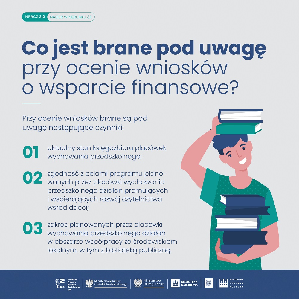 - zgodność z celami programu planowanych przez placówki wychowania przedszkolnego działań promujących i wspierających rozwój czytelnictwa wśród dzieci;