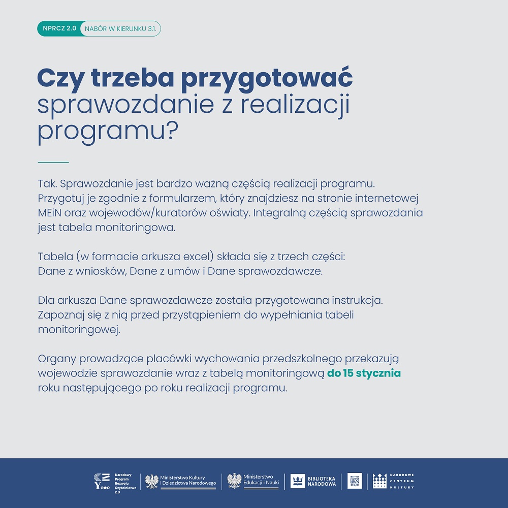 Czy trzeba przygotować sprawozdanie z realizacji programu?