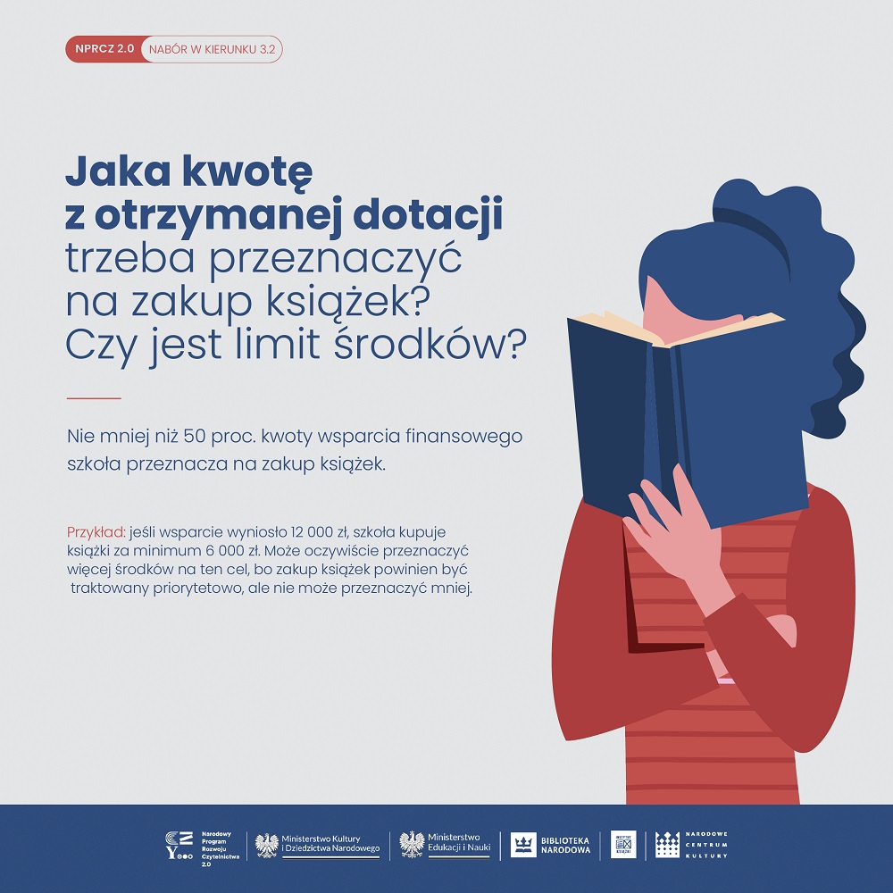 Czyli jeśli wsparcie wyniosło 12 000 zł, za minimum 6 000 zł szkoła kupuje książki.