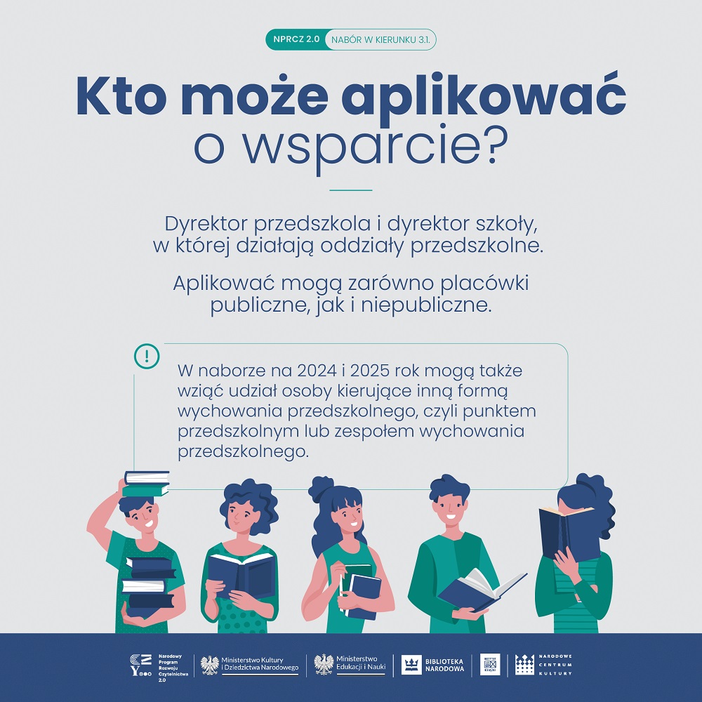 WAŻNE. W naborze na 2024 i 2025 rok mogą także wziąć udział osoby kierujące inną formą wychowania przedszkolnego (czyli punktem przedszkolnym lub zespołem wychowania przedszkolnego).
