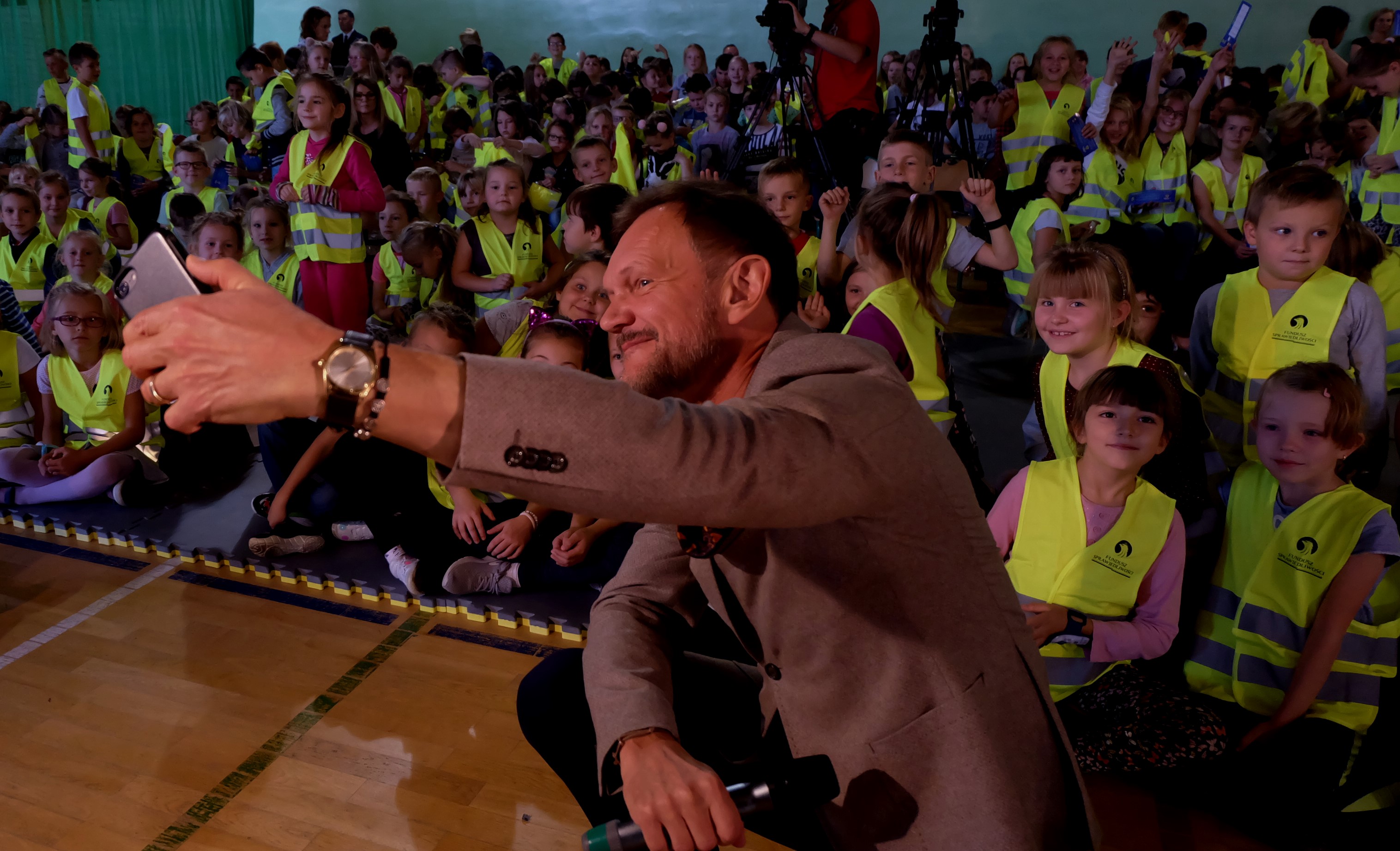 Szkolną salę gimnastyczną, gdzie uroczyście zainaugurowano akcję, szczelnie wypełniły dzieci. Ogromne zainteresowanie wywołał premierowy pokaz spotu promującego kampanię o bezpiecznym zachowaniu na drodze. Ogromną niespodzianką dla dzieci było pojawienie się Cezarego Pazury. Znany aktor, który jest ambasadorem akcji „Dobrze Cię widzieć”, został przywitany gromkimi brawami.