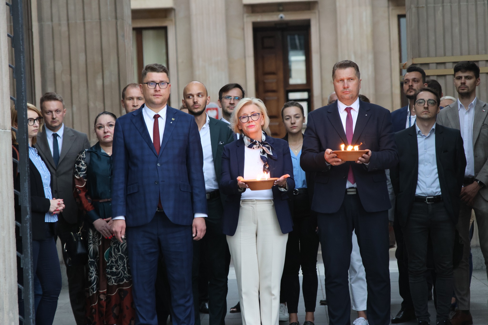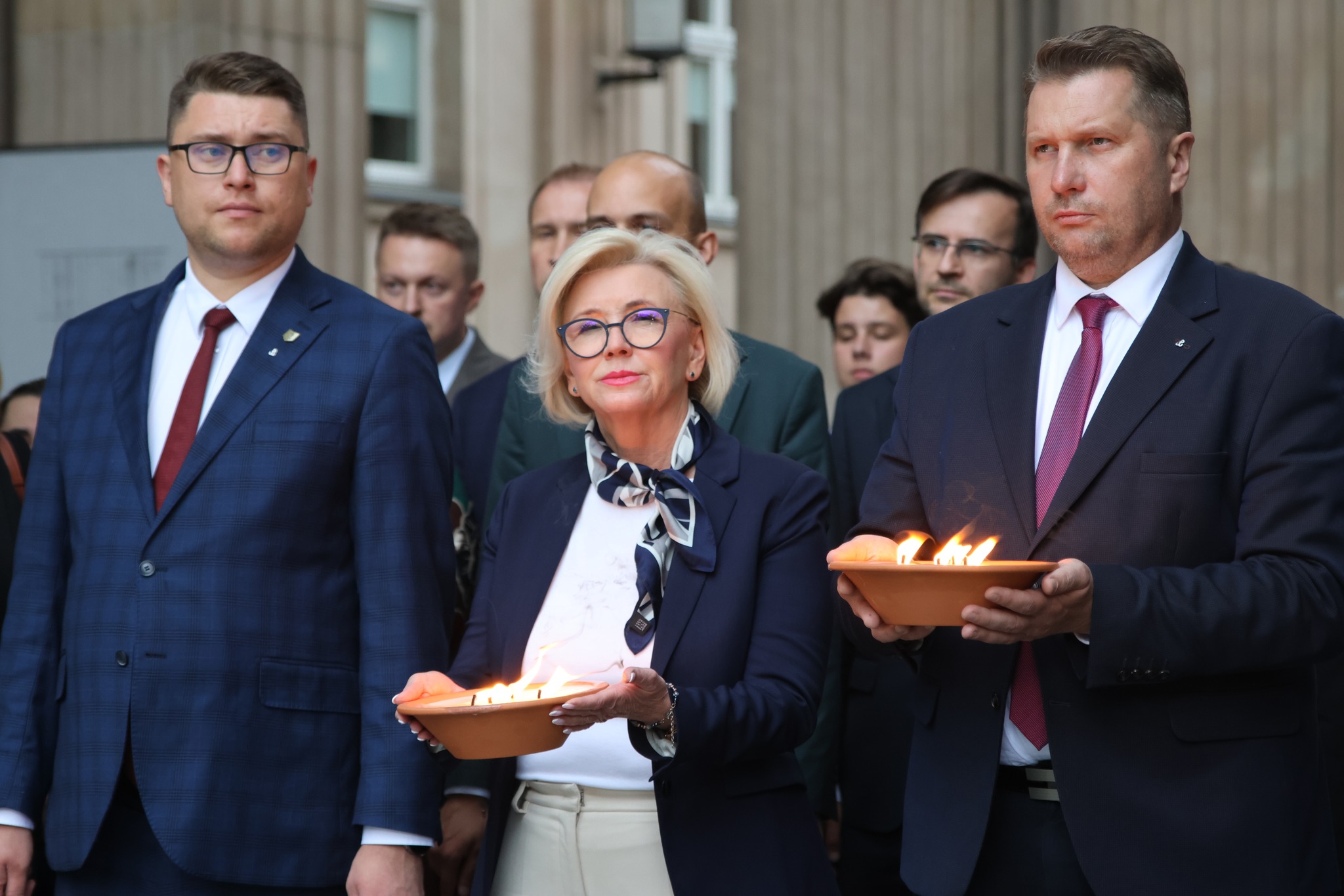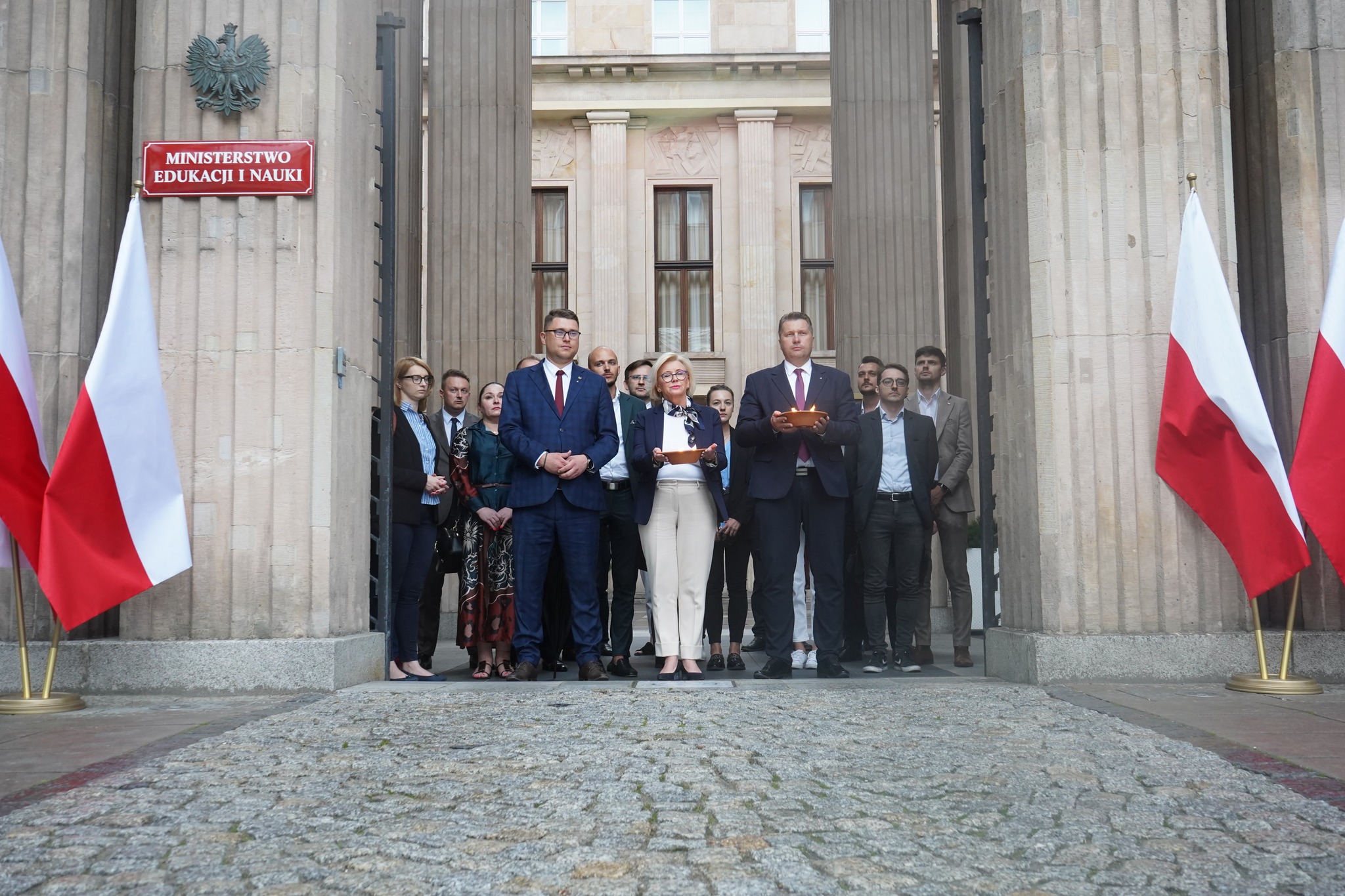 Punktualnie o godzinie 17.00 w całej Warszawie wybrzmiały syreny alarmowe, a mieszkańcy zatrzymali się na chwilę, by w ciszy upamiętnić powstańców warszawskich. Cześć bohaterom oddali także minister Przemysław Czarnek i wiceminister Marzena Machałek wraz z pracownikami MEiN. Przedstawiciele resortu zgromadzili się przed gmachem Ministerstwa Edukacji i Nauki w al. Szucha 25, by w zadumie uczcić pamięć walczących i poległych za Polskę. W historycznym gmachu w czasie wojny mieścił się Urząd Komendanta Policji Bezpieczeństwa i Służby Bezpieczeństwa Dystryktu Warszawskiego.