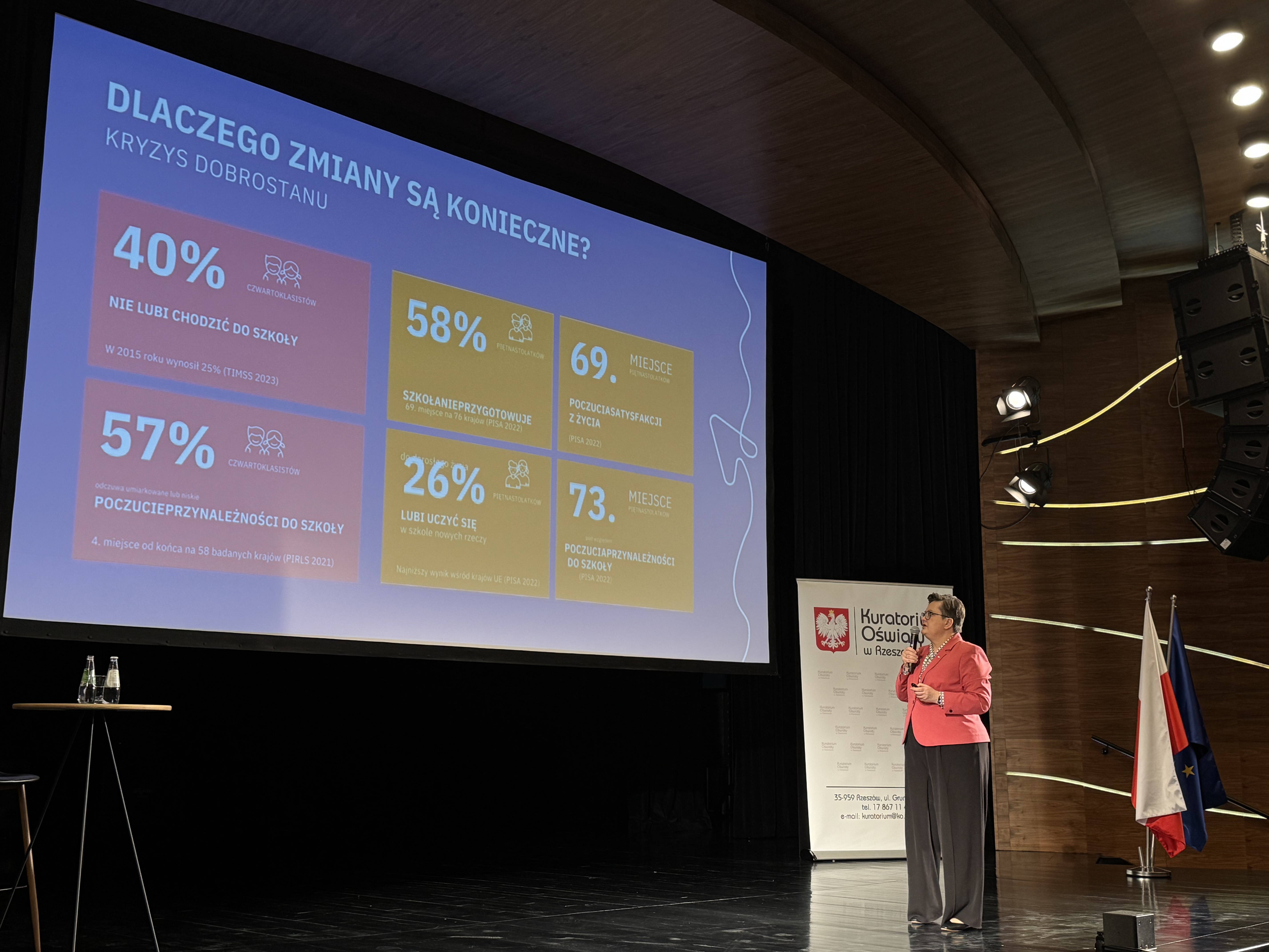 W piątek 24 kwietnia br., Minister Edukacji Barbara Nowacka wzięła udział w seminarium „Profil Doradcy Metodycznego - rola i zadania we wprowadzaniu Kompasu Jutra” dla doradców metodycznych i konsultantów ośrodków doskonalenia zawodowego nauczycieli i pracowników bibliotek pedagogicznych województwa opolskiego.
