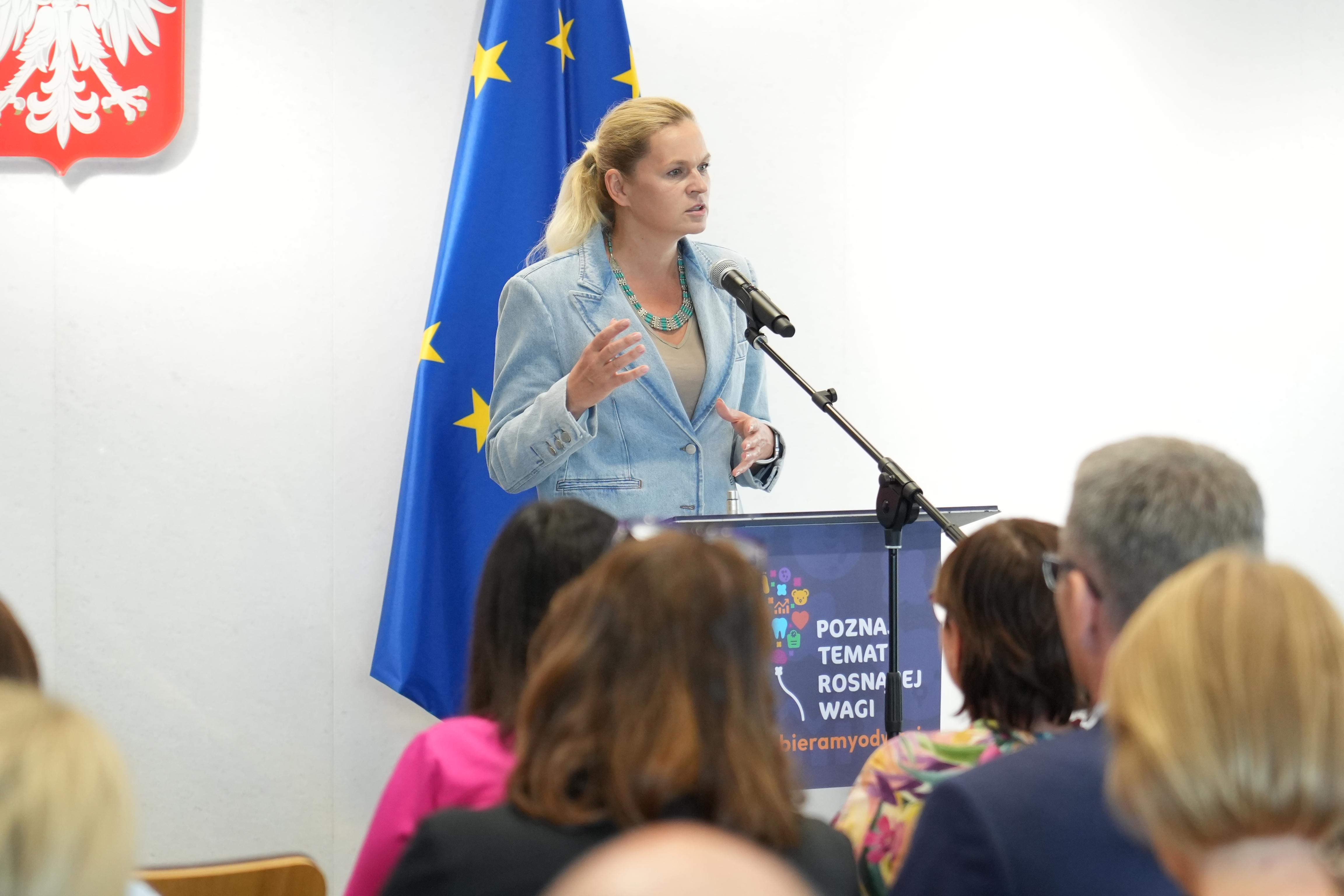 Barbara Nowacka zwróciła uwagę na rolę szkoły w kształtowaniu nawyku zdrowego odżywiania a także zagrożeń jakie za sobą niesie otyłość.