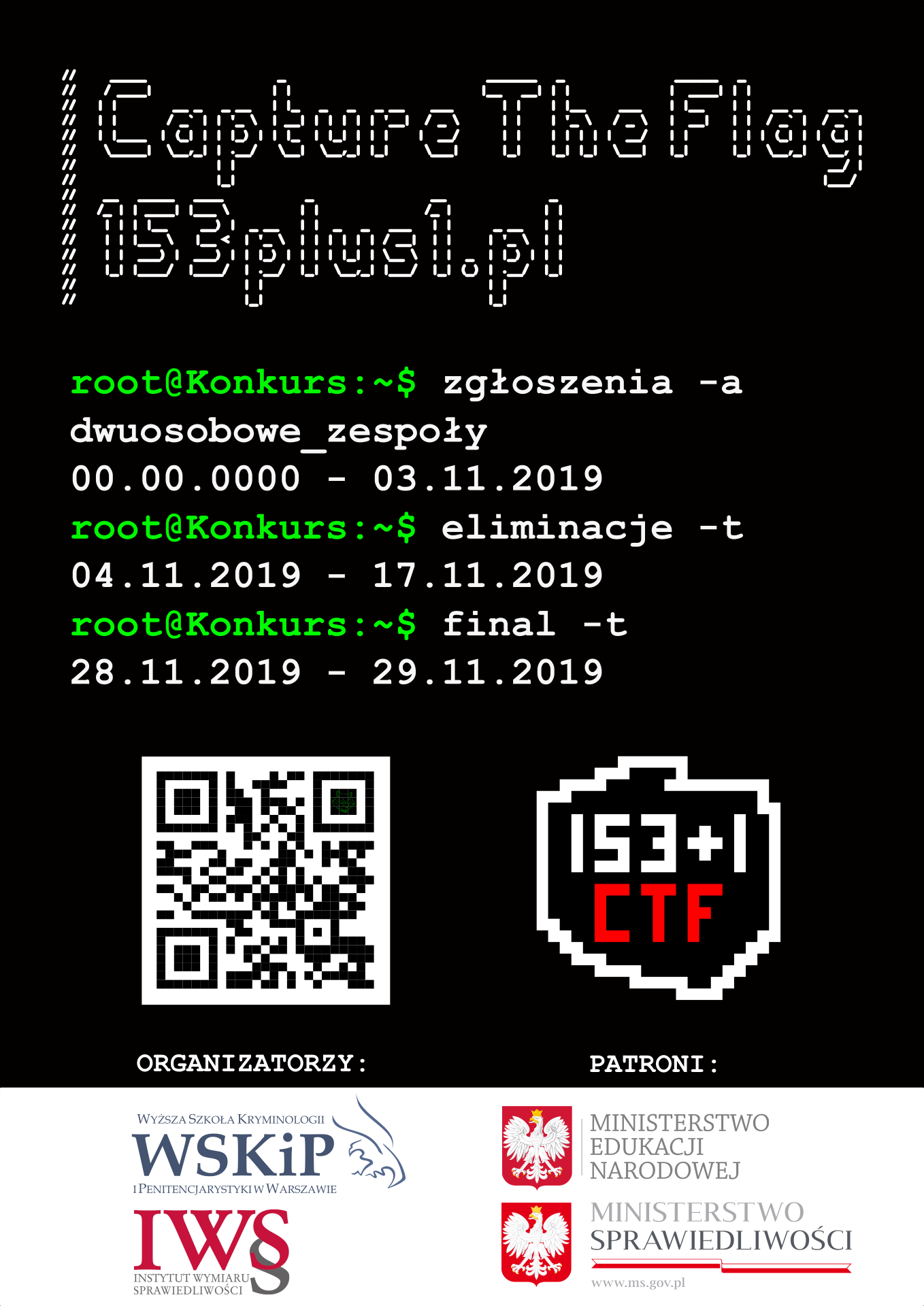 Ministerstwo Edukacji Narodowej zachęca do udziału w konkursie Capture The Flag „153+1” organizowanym przez Instytut Wymiaru Sprawiedliwości. Przedsięwzięcie jest skierowane do uczniów publicznych i niepublicznych szkół ponadpodstawowych, w szczególności techników oraz szkół branżowych o profilu informatycznym. Konkurs został objęty honorowym patronatem Ministra Edukacji Narodowej.