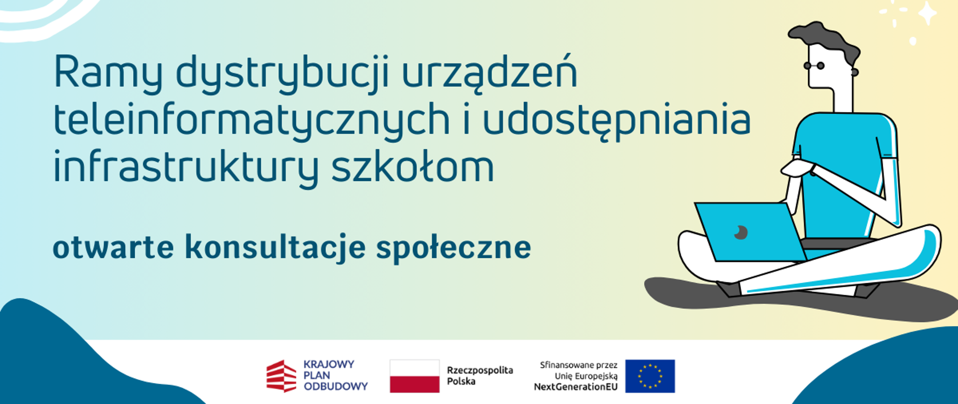 Ministerstwo Edukacji Narodowej oraz Instytut Badań Edukacyjnych zapraszają do uczestnictwa w otwartych konsultacjach społecznych na temat propozycji ram dystrybucji urządzeń teleinformatycznych i udostępniania infrastruktury szkołom, które dotyczą inwestycji C.1.1.1. dla celu C6aG „Modernizacja sieci wewnątrzszkolnej” oraz C2.2.1 “Wyposażenie szkół/instytucji w odpowiednie urządzenia i infrastrukturę ICT w celu poprawy ogólnej wydajności systemów edukacyjnych”.
