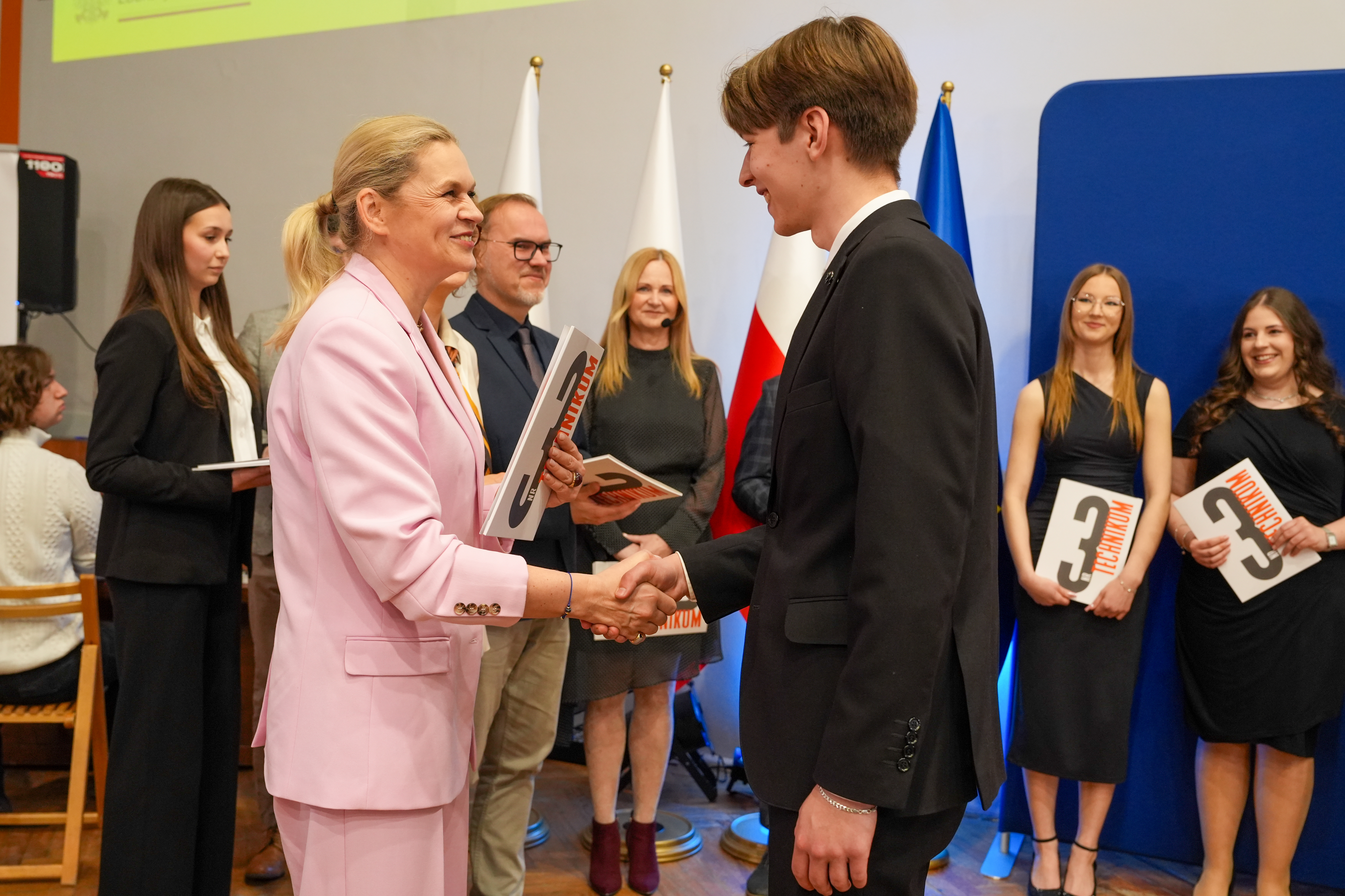 Podczas uroczystości Barbara Nowacka wręczyła świadectwa z wyróżnieniem absolwentom klas technikum kształcących się m.in. w zawodach: technik rachunkowości, technik ekonomista, technik programista, technik fotografii i multimediów, technik grafiki i poligrafii cyfrowej, technik reklamy oraz technik logistyk. Wyróżnieni zostali uczniowie osiągający najwyższe wyniki w nauce, laureaci i finaliści olimpiad oraz konkursów przedmiotowych, a także osoby szczególnie zaangażowane w życie szkoły, członkowie samorządu szkolnego.