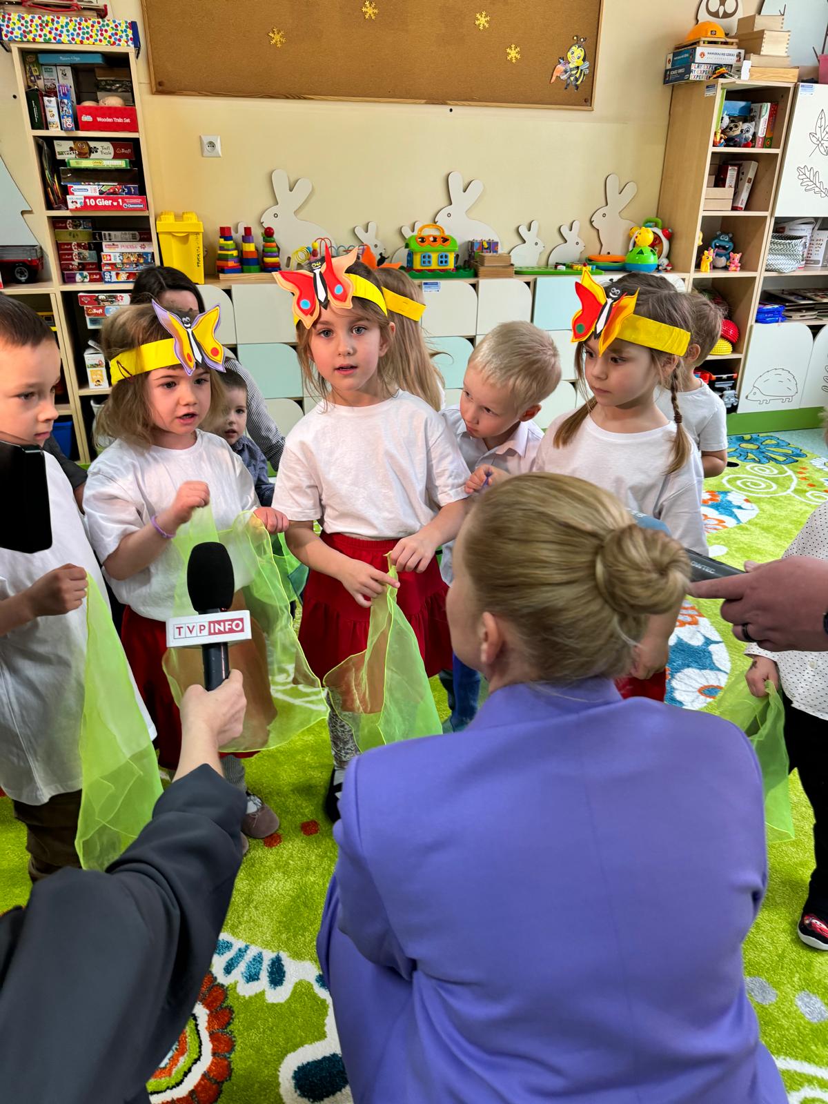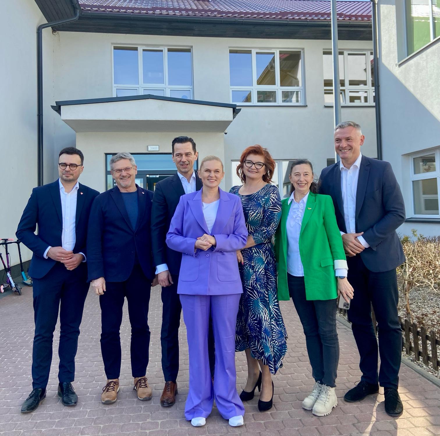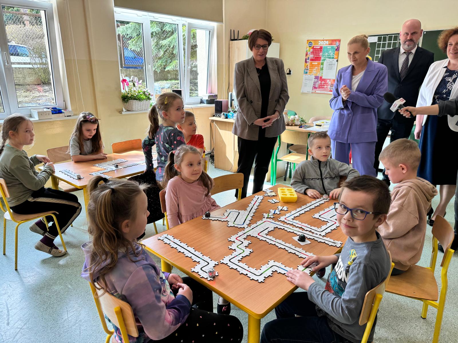 Spotkanie ze społecznością szkolną w modernizowanej Szkole Podstawowej nr 1 im. Noblistów Polskich w Olsztynku z Oddziałem Przedszkolnym to pierwszy punkt wizyty minister Barbary Nowackiej w województwie warmińsko-mazurskim. Minister Nowacka spotkała się z przedszkolakami i uczniami, którzy chętnie prezentowali swoje artystyczne umiejętności i zadawali pytania szefowej resortu edukacji.