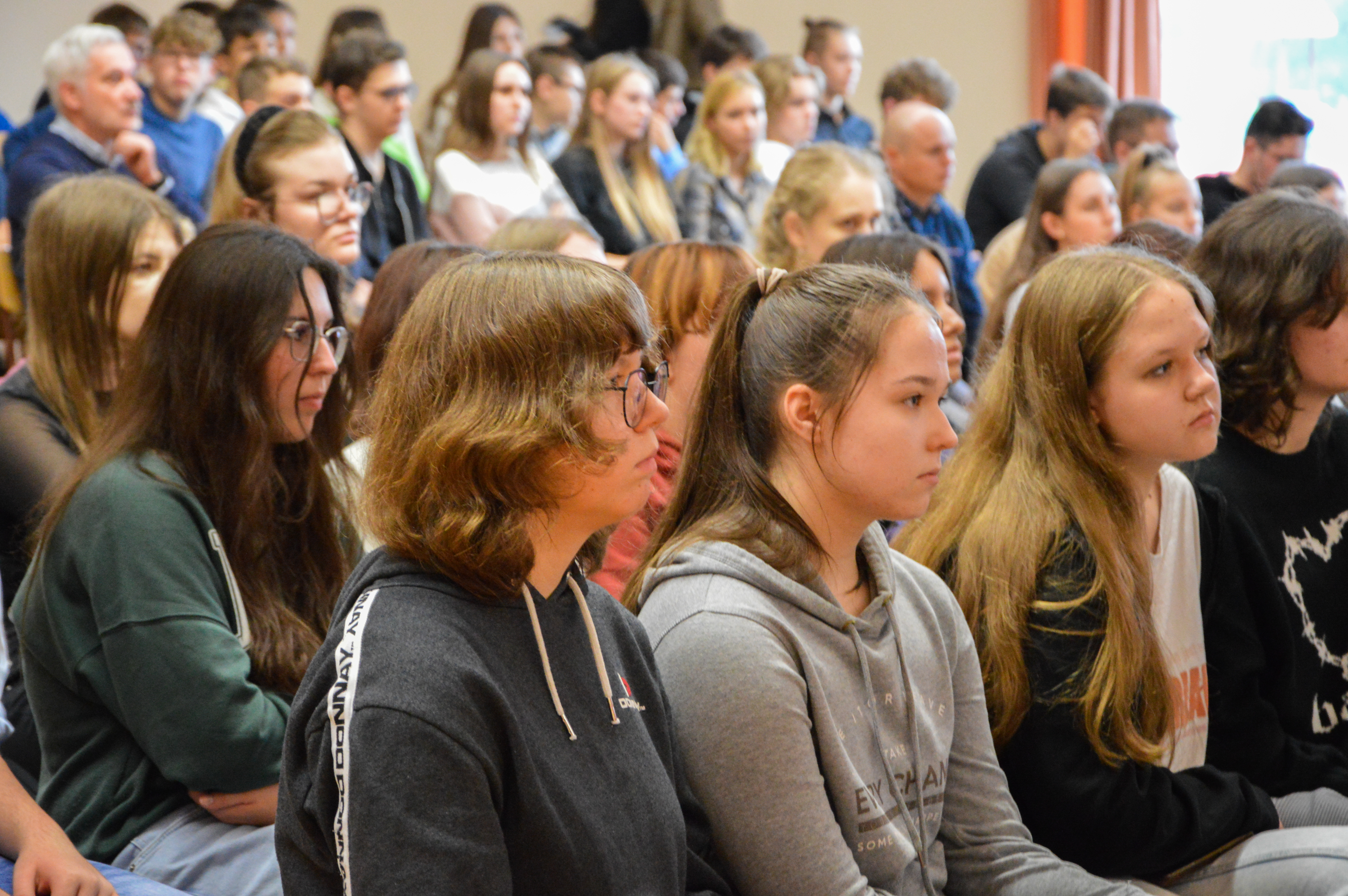 Minister na spotkaniu z uczniami Zespołu Szkół oraz uczestnikami projektu Erasmus+ w Nowej Sarzynie