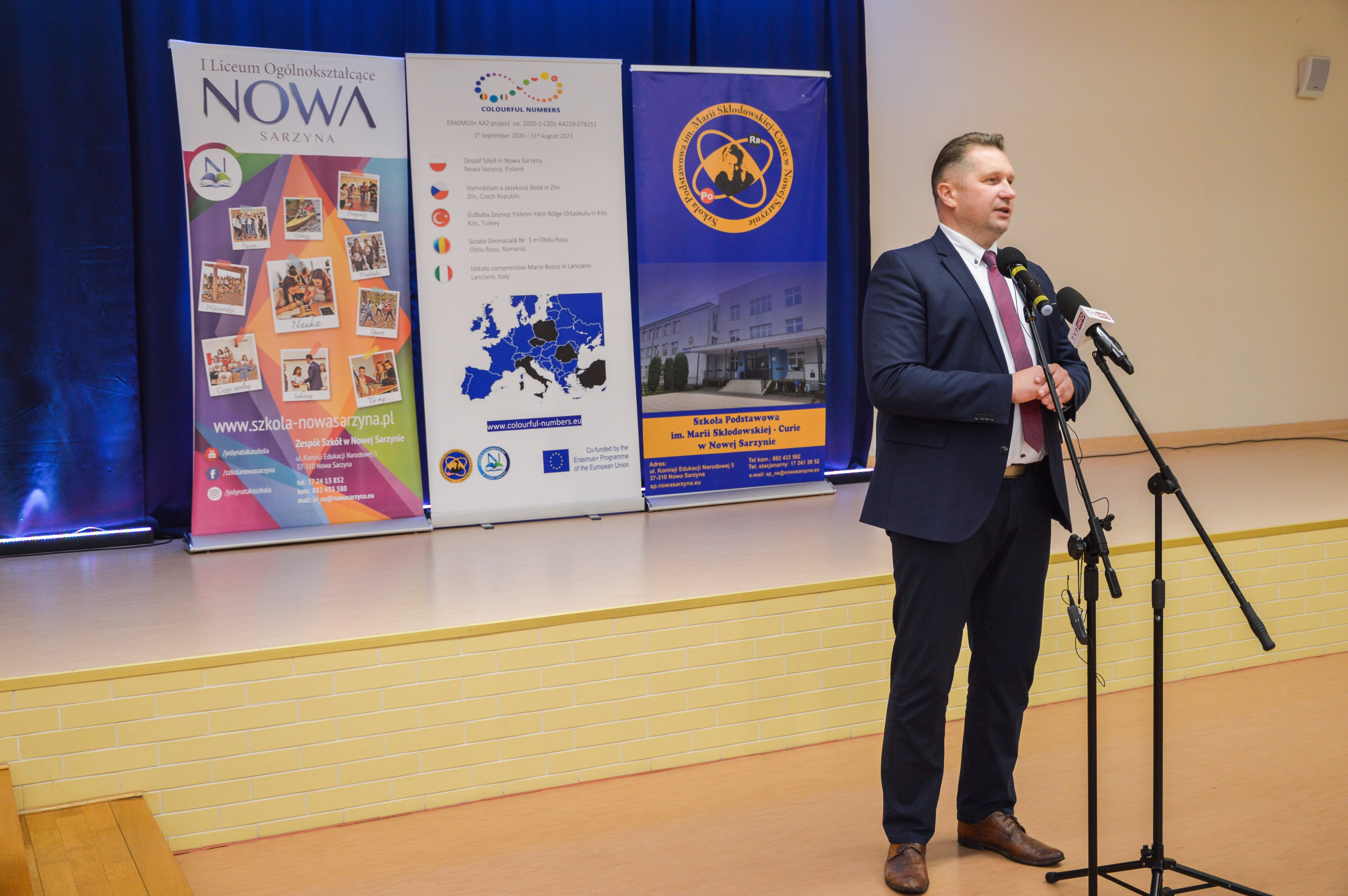 – Świetnie się rozwijacie. Korzystacie z pojawiąjących się możliwości. Jako pierwsi skorzystaliście z programu „Laboratoria Przyszłości”. Brawa dla mieszkańców Nowej Sarzyny, dla uczniów tej szkoły. Myślę, że to znakomite miejsce, dlatego spotyka się tutaj młodzież z 4 krajów – Turcji, Czech, Włoch i Rumunii w ramach ERASMUS+ – powiedział do zgromadzonych podczas spotkania minister Przemysław Czarnek.