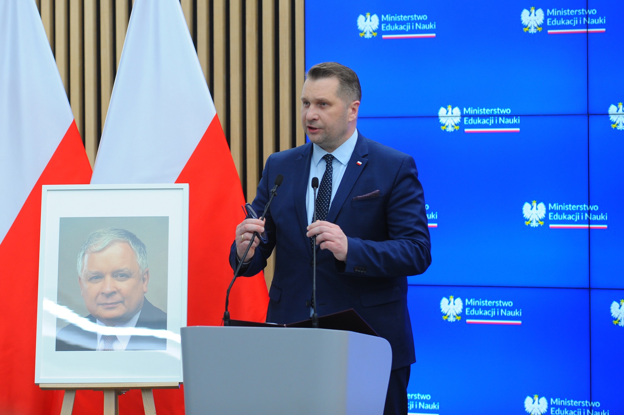 Minister Przemysław Czarnek podziękował Marcie Kaczyńskiej-Zielińskiej i Jarosławowi Kaczyńskiemu za wyrażanie zgody na nazwanie sali imieniem Lecha Kaczyńskiego.