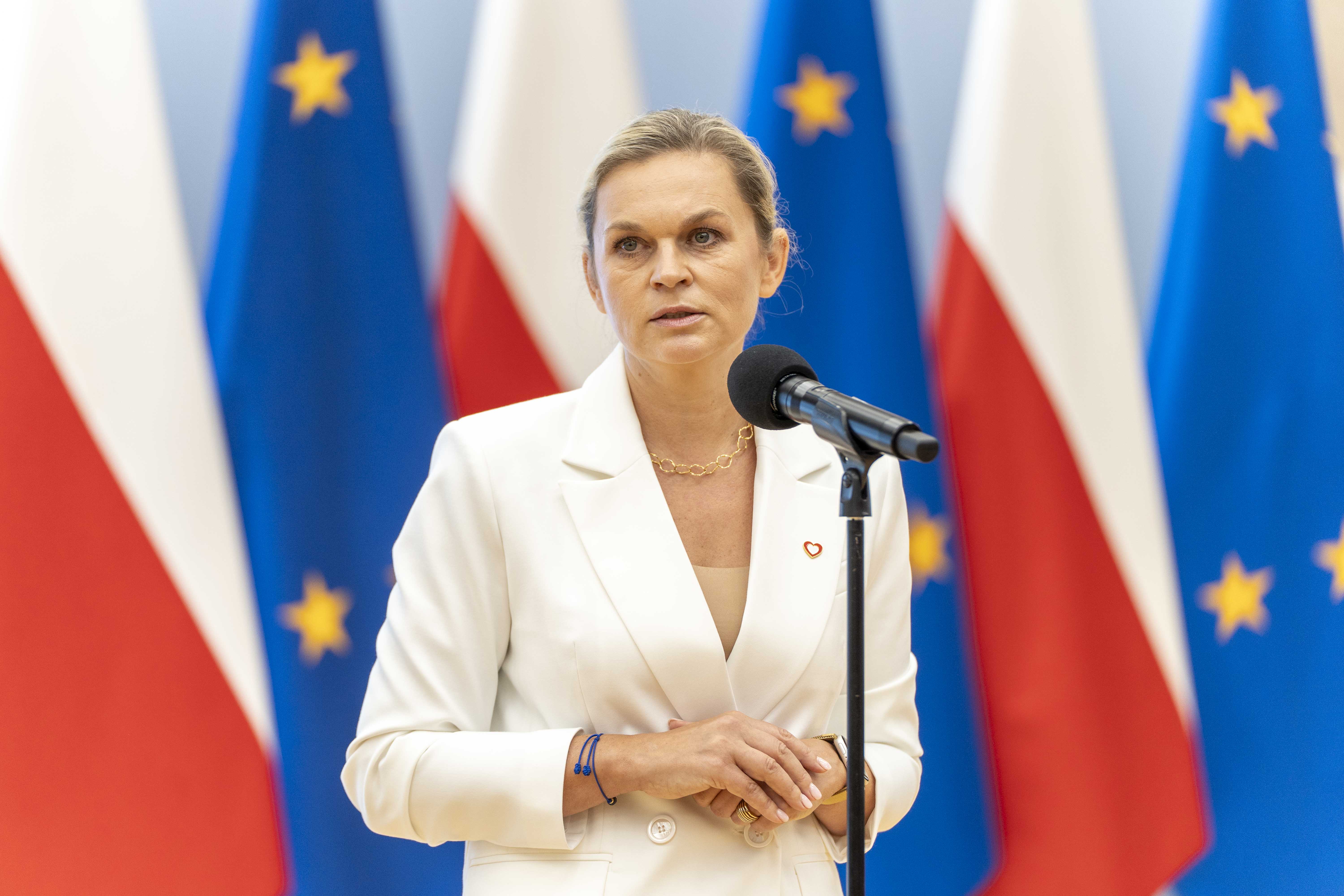 Podczas uroczystości minister Barbara Nowacka podziękowała dyrektorom szkół, przedszkoli i placówek oświatowych za ich zaangażowanie i pomoc w czasie powodzi.