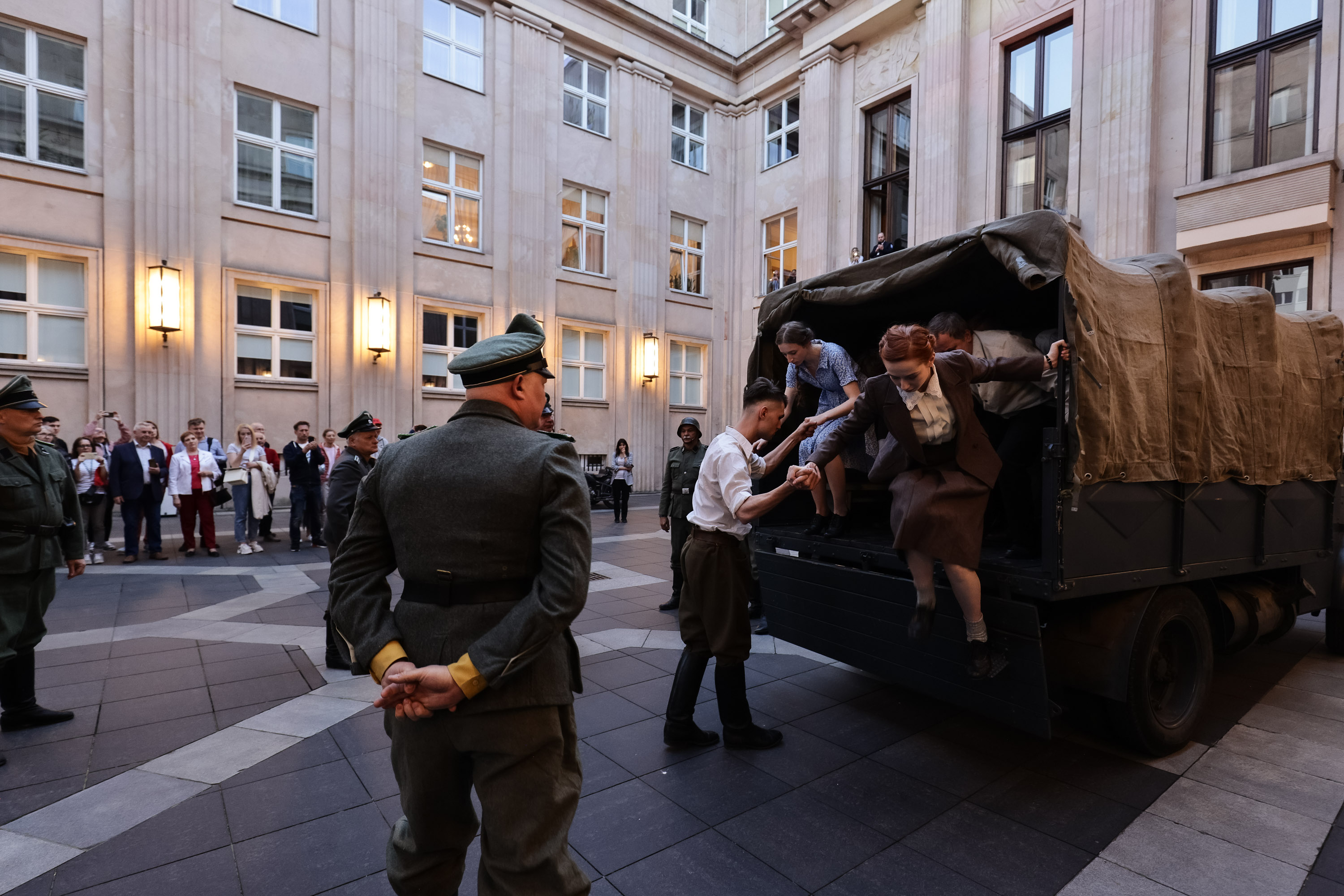 Na ministerialnym dziecińcu przygotowano również rekonstrukcję przybliżającą okupacyjną historię niemieckiej dzielnicy policyjnej oraz dzieje katowni Gestapo w al. Szucha 25. Podczas prezentacji uczestnicy mogli zobaczyć oryginalne rekwizyty: mundury, motocykle i samochody wojskowe.