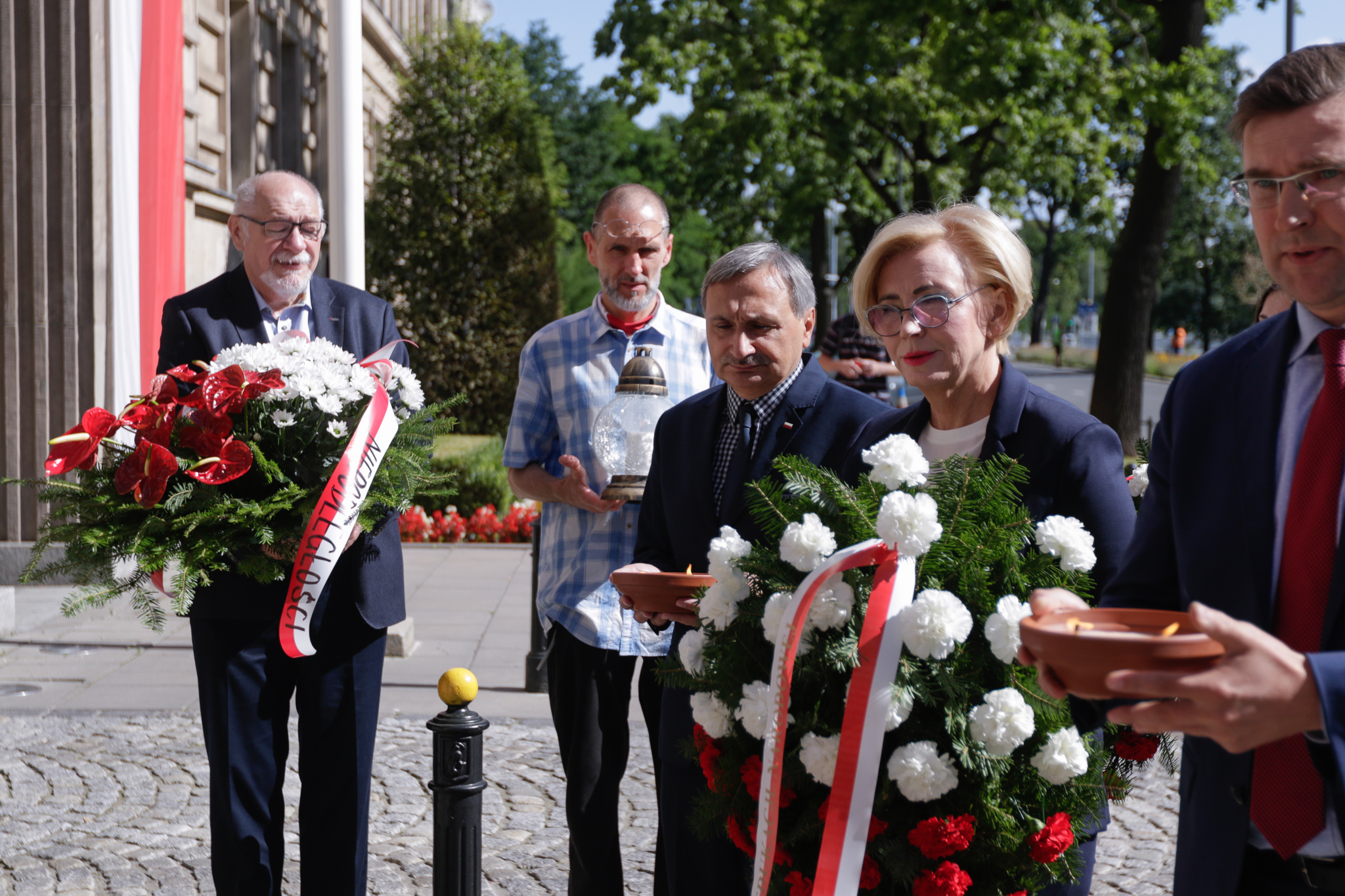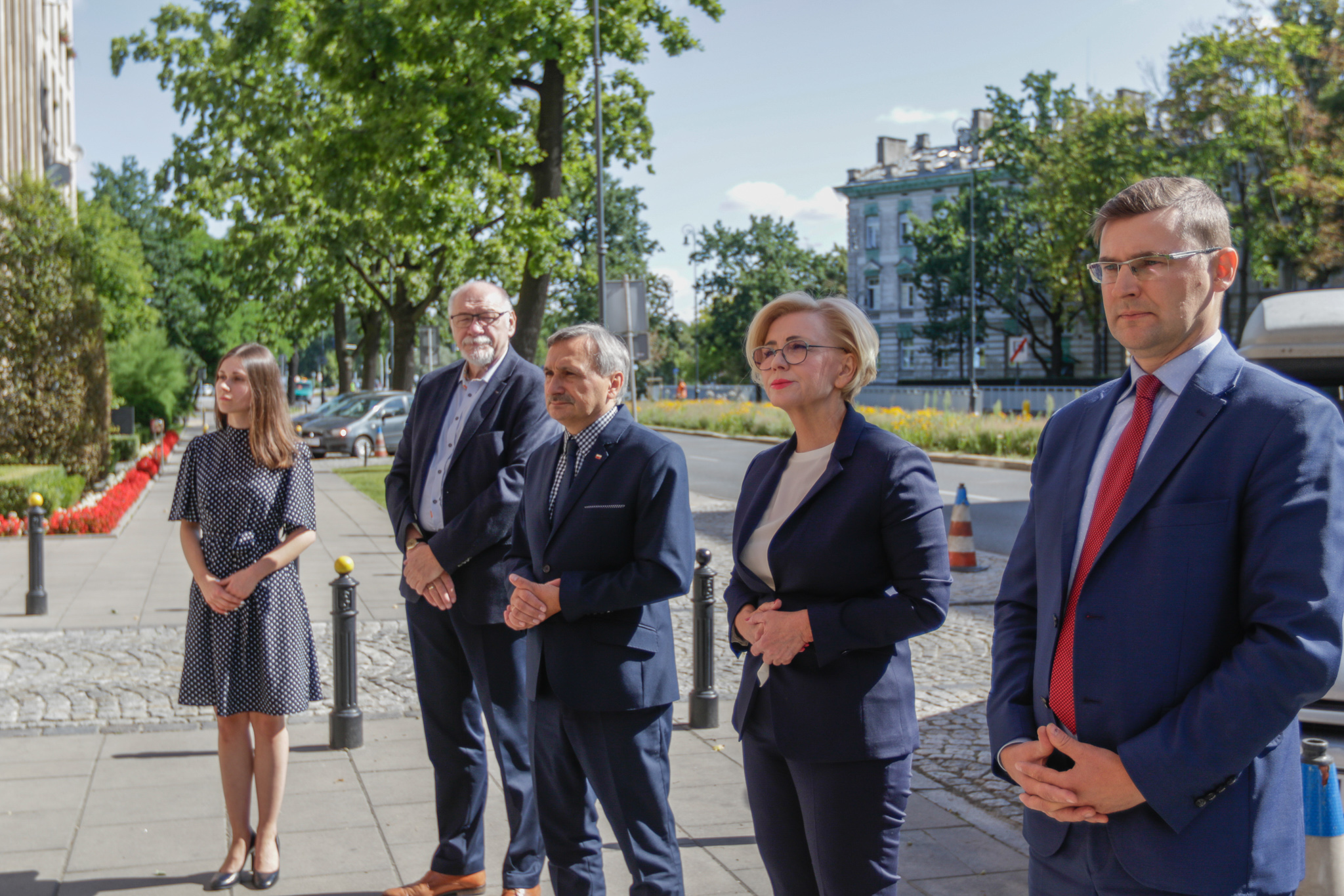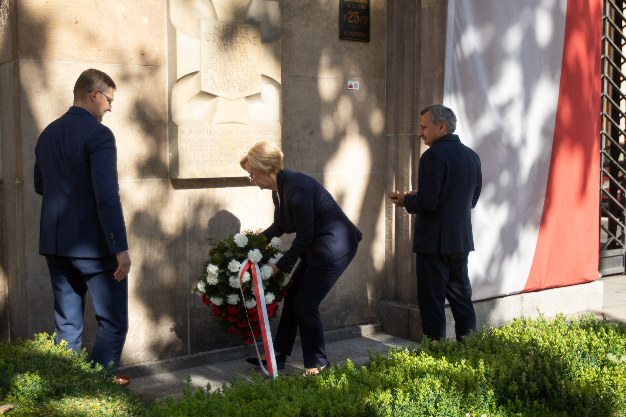 Członkowie kierownictwa MEN wraz z przedstawicielami Muzeum Niepodległości oraz Mauzoleum Walk i Męczeństwa oraz Przewodniczącą Rady Dzieci i Młodzieży przy Ministrze Edukacji Narodowej w przeddzień 76. rocznicy wybuchu Powstania Warszawskiego złożyli kwiaty pod tablicą pamięci znajdującą się na ścianie budynku Ministerstwa Edukacji Narodowej.
