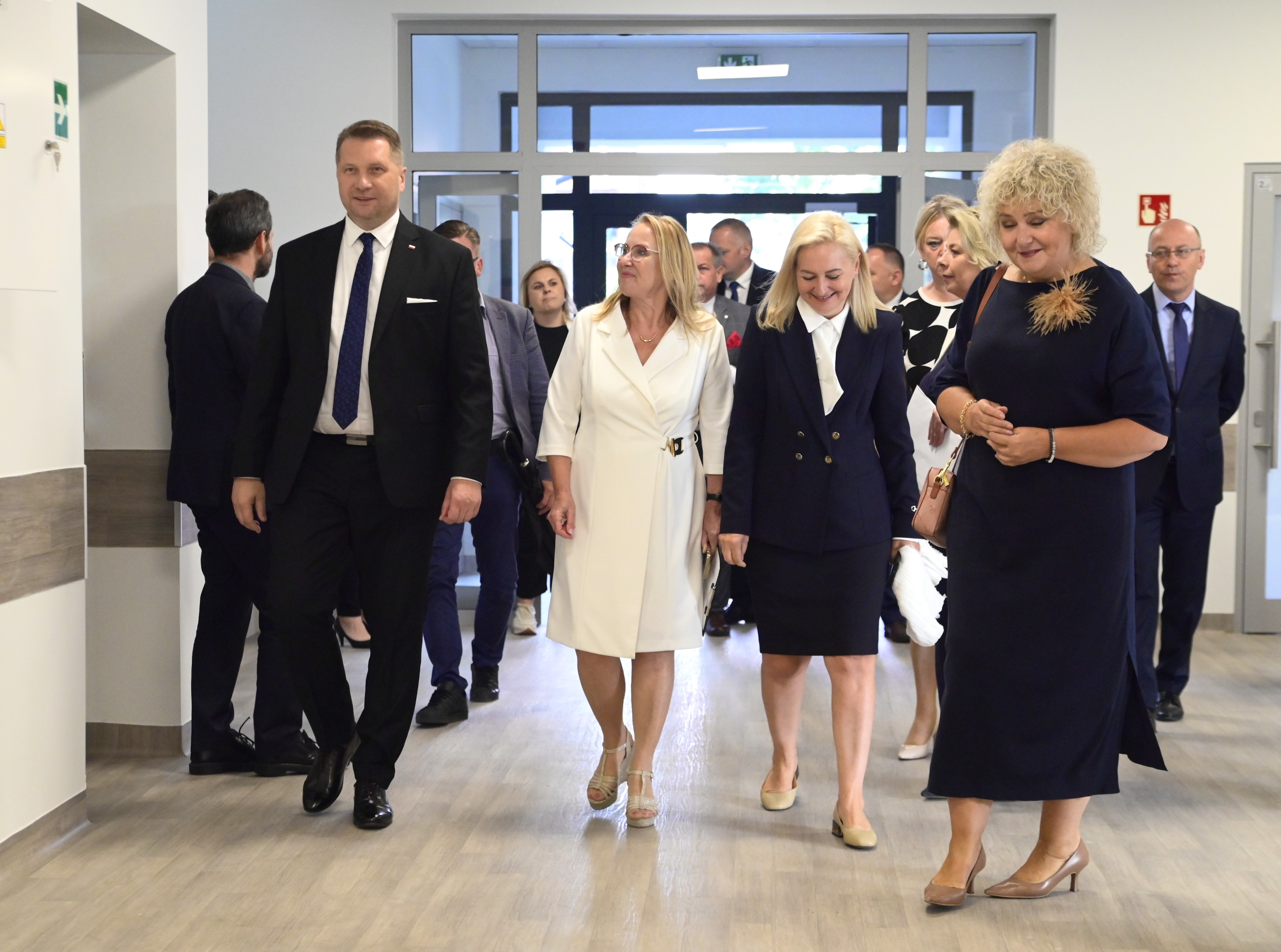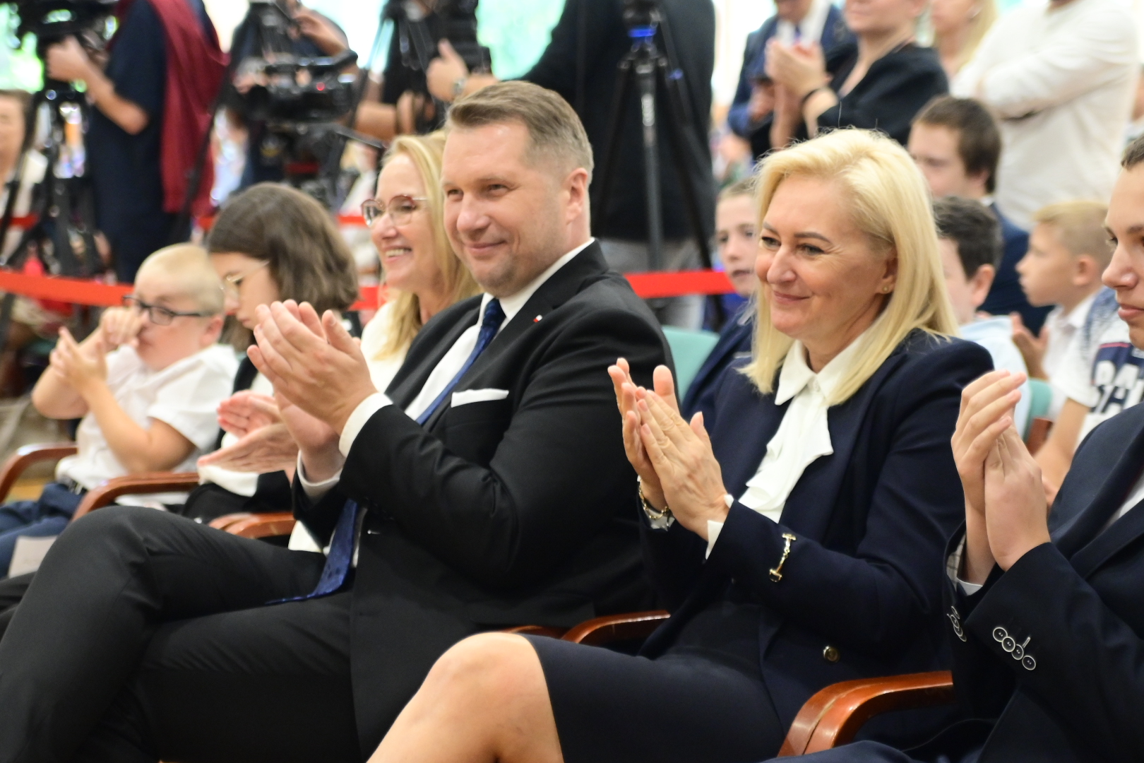 Minister Przemysław Czarnek przywitał nowy roku szkolny 2023/2024 z uczniami i nauczycielami Ośrodka Szkolno-Wychowawczego im. Kornela Makuszyńskiego w Węgrowie. Uroczystość zbiegła się z otwarciem nowego budynku węgrowskiej placówki. Dzięki nowoczesnej przestrzeni możliwy będzie pełniejszy rozwój dzieci i młodzieży ze specjalnymi potrzebami edukacyjnymi.