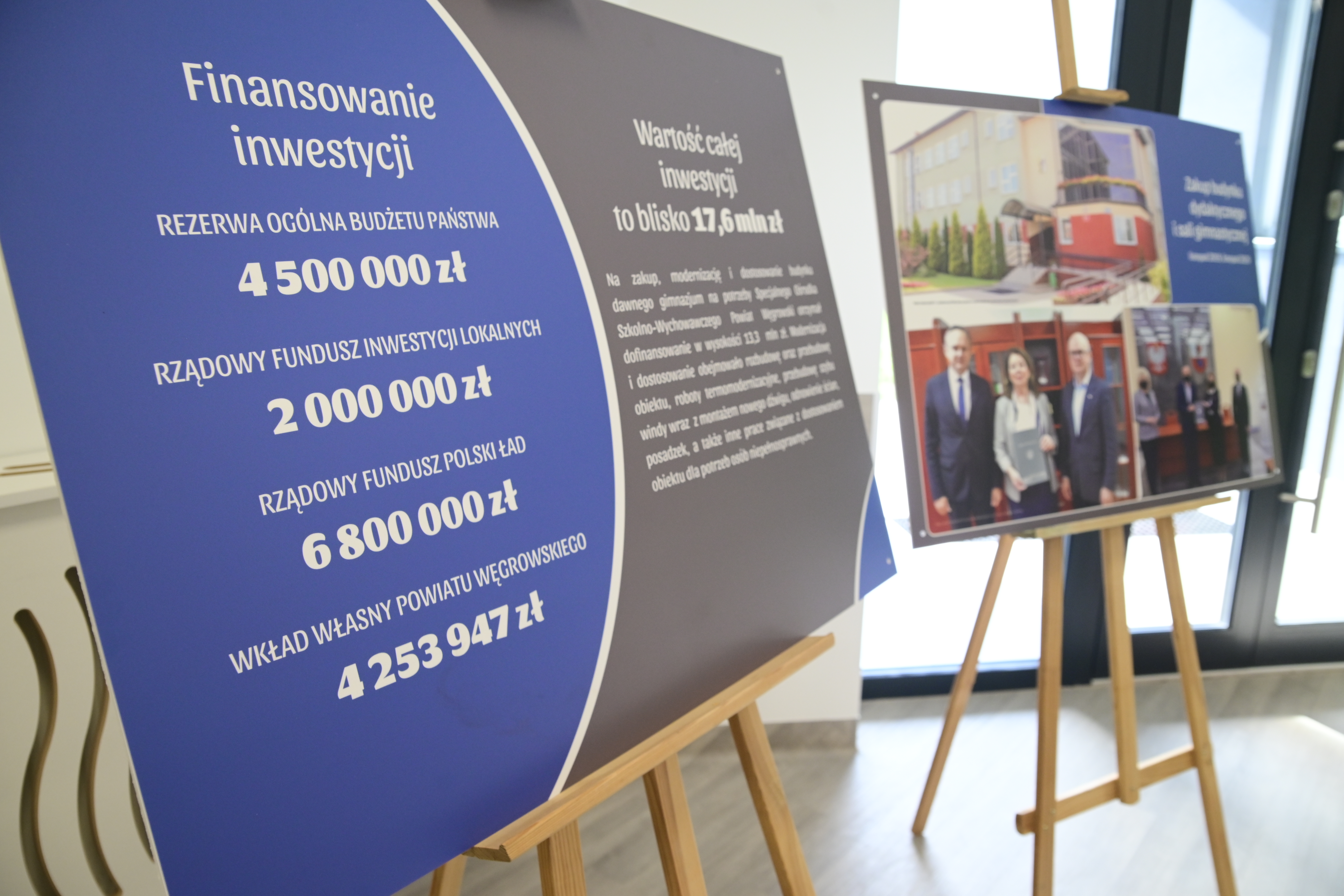Wartość całej inwestycji do blisko 17,6 mln zł. Na zakup, modernizację i dostosowanie budynku dawnego gimnazjum powiat węgrowski otrzymał dofinansowanie w wysokości 13,3 mln zł. Prace obejmowały rozbudowę oraz przebudowę obiektu, roboty termomodernizacyjne, przebudowę szybu windy wraz z montażem nowego dźwigu, odnowienie ścian, posadzek, a także prace związane z dostosowaniem obiektu dla potrzeb osób niepełnosprawnych.