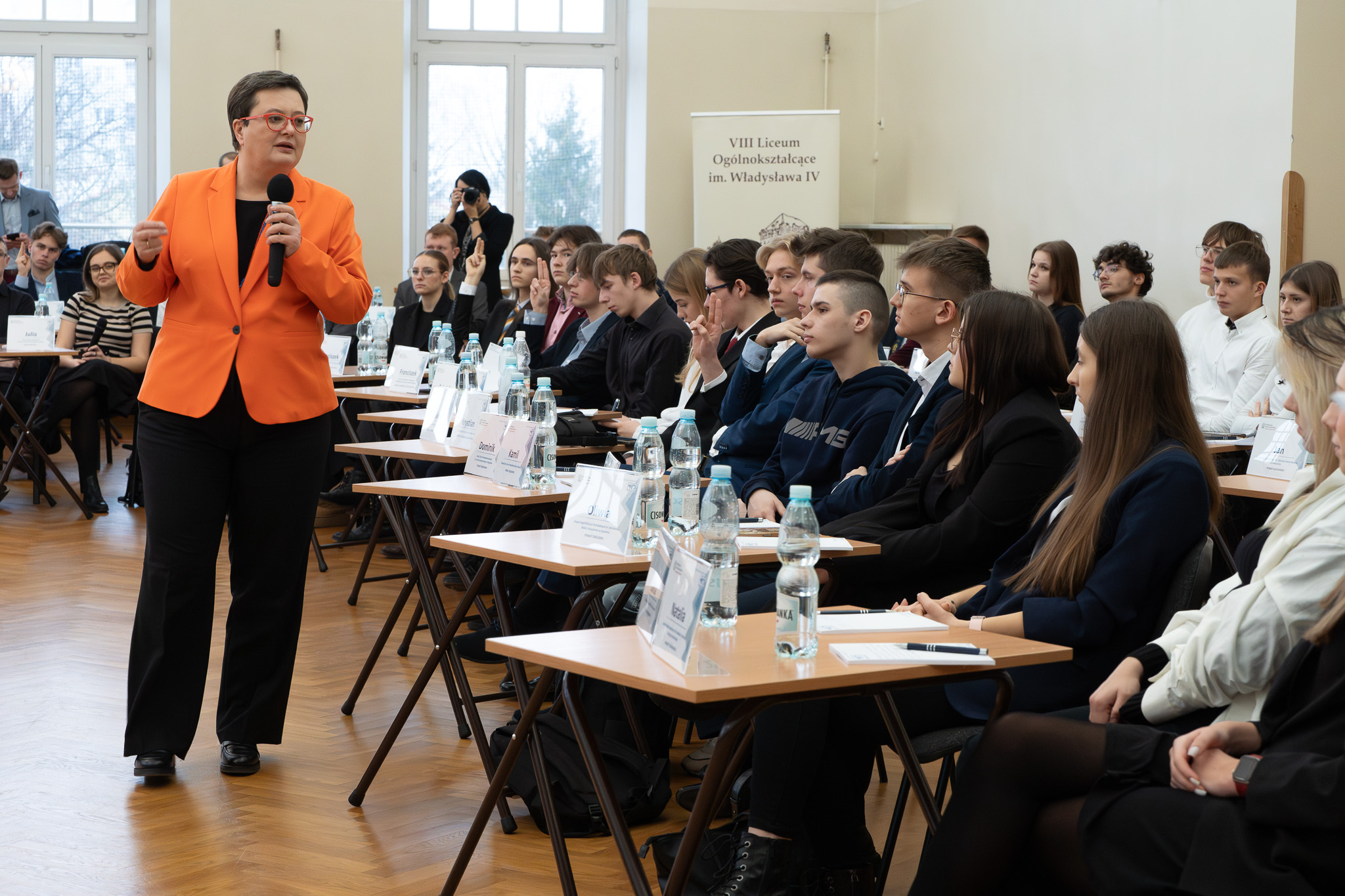 W Okrągłym Stole Uczniowskim zorganizowanym w VIII Liceum Ogólnokształcącym im. Władysława IV w Warszawie uczestniczyli uczniowie szkół ponadpodstawowych z Mazowsza.