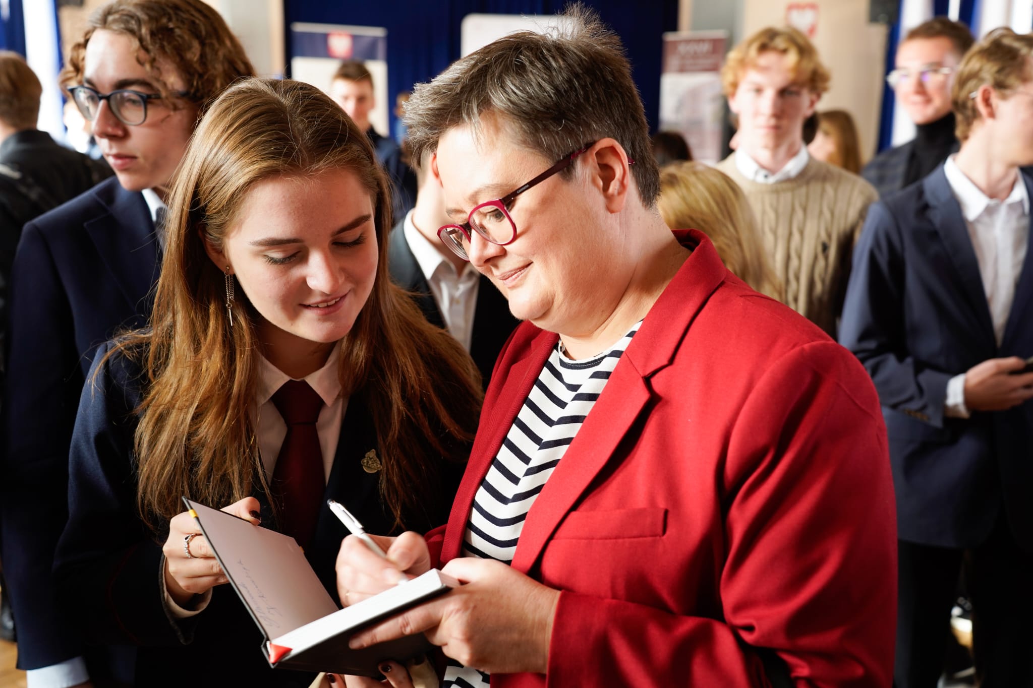 Uczniowie przedstawili swoje uwagi i pomysły dotyczące zmian w oświacie. Młodzież pytała między innymi o plany zmiany podstawy programowej. Interesowało ich także wprowadzenie nowych technologii w szkołach.