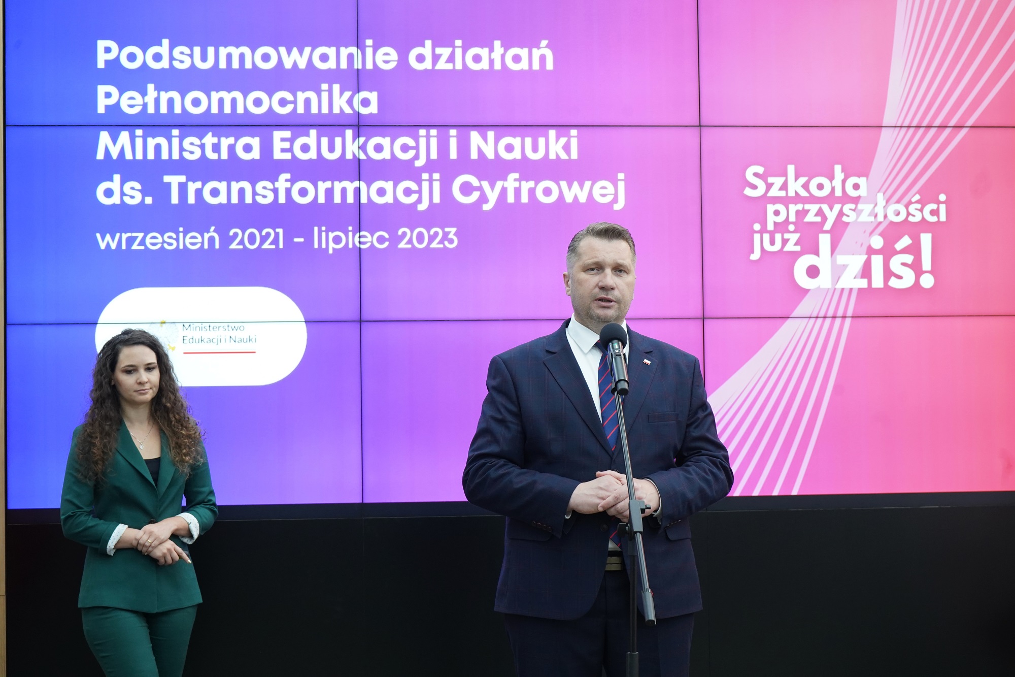 Minister Przemysław Czarnek oraz Pełnomocnik Ministra Edukacji i Nauki ds. transformacji cyfrowej Justyna Orłowska podsumowali najważniejsze działania na rzecz cyfryzacji edukacji realizowane we współpracy MEiN i Centrum GovTech. Są wśród nich: „Laboratoria Przyszłości”, Mobilne Laboratoria Przyszłości, gry w edukacji, programy „Atomy Wiedzy” i „Liga Robotów”, a także utworzenie grupy roboczej AI w edukacji. Z kolei nowe projekty to: Wirtualne Laboratoria Przyszłości, wprowadzenie przedmiotu biznes i zarządzanie oraz uruchomienie portalu edukacja.gov.pl.