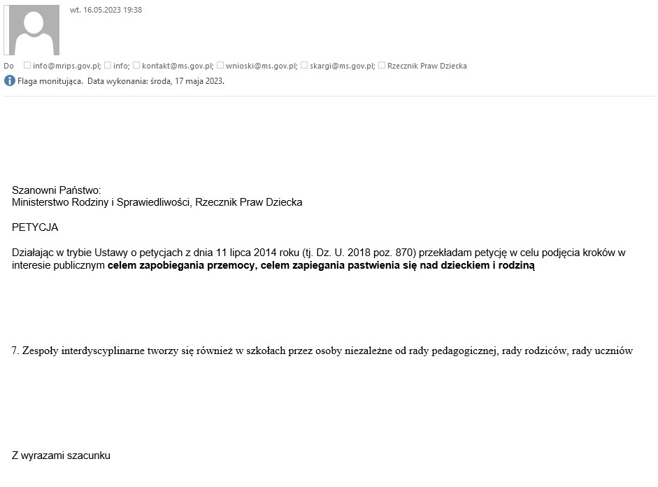 Petycja w sprawie tworzenia zespołów interdyscyplinarnych w szkołach – przekazana 10 lipca 2023 roku.