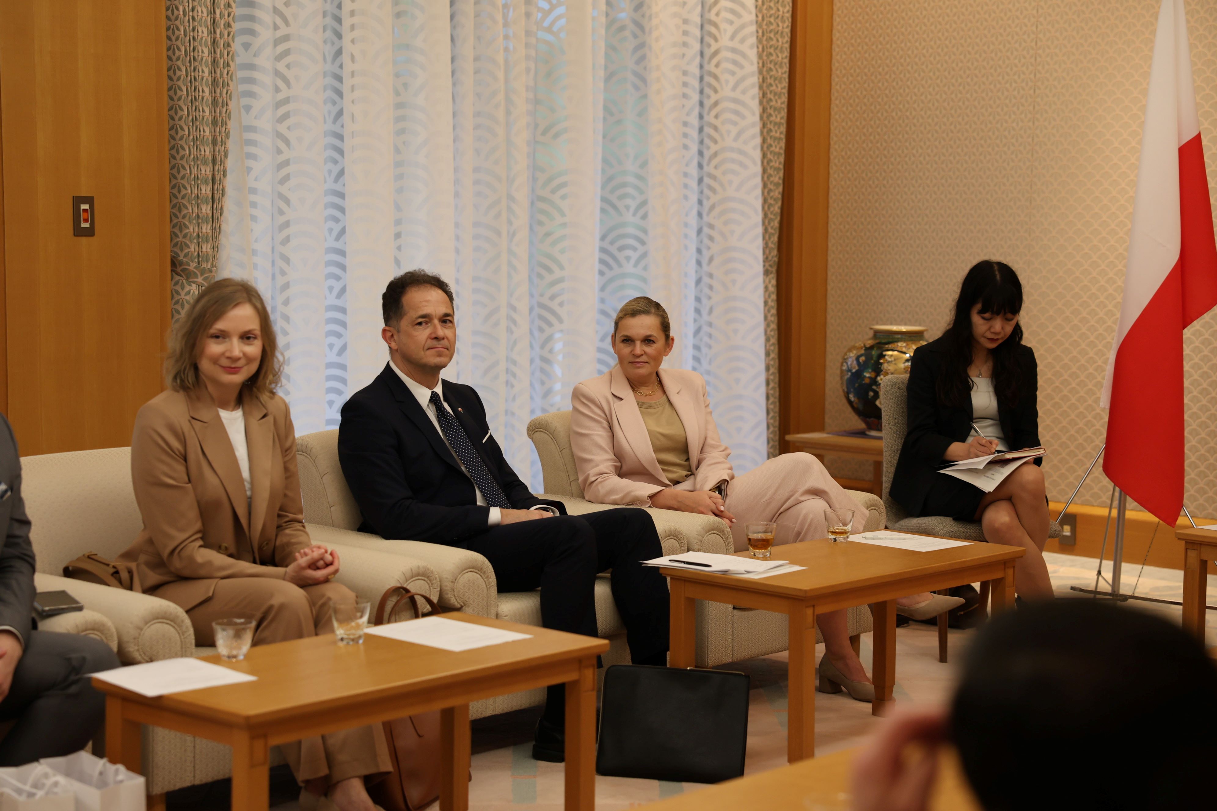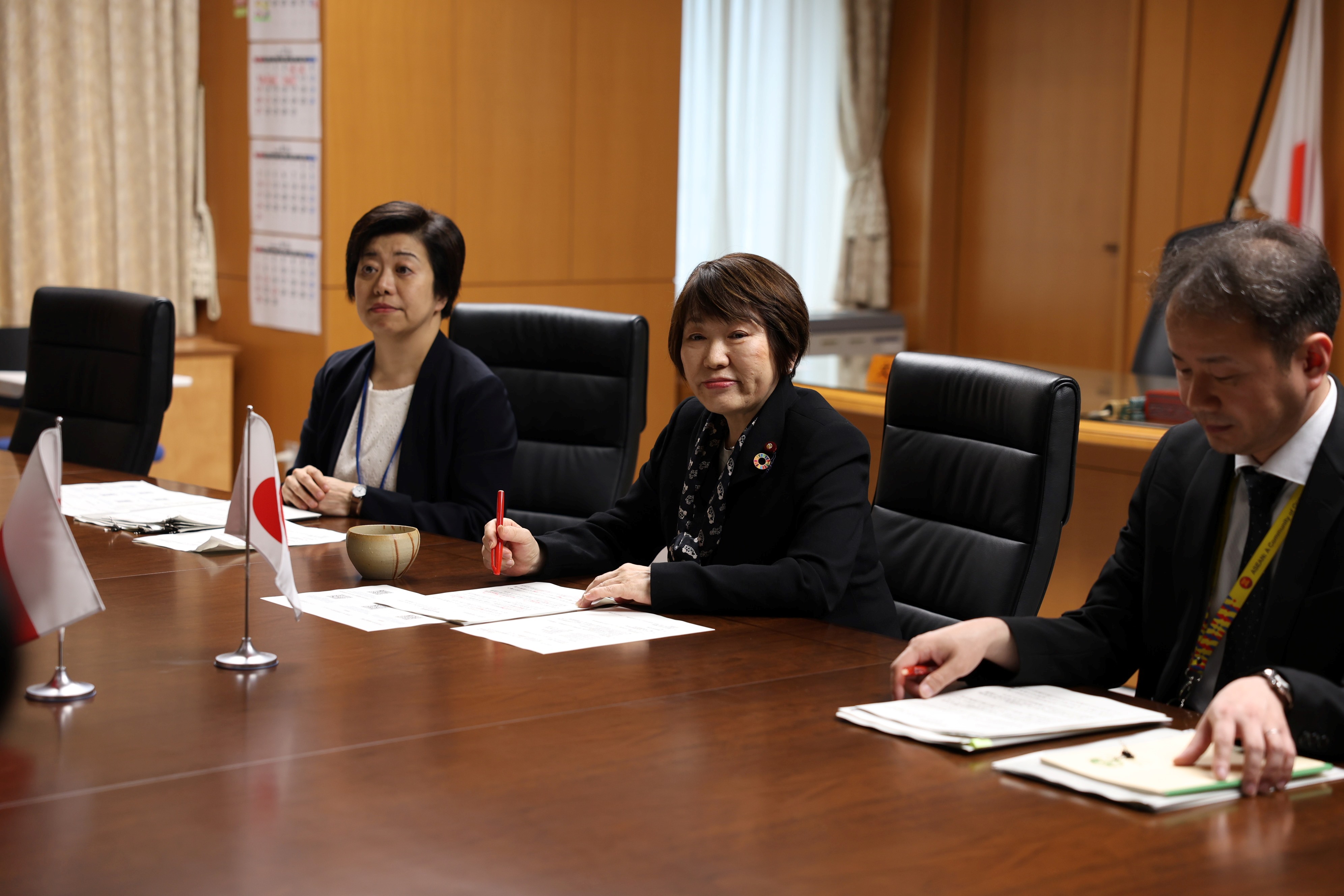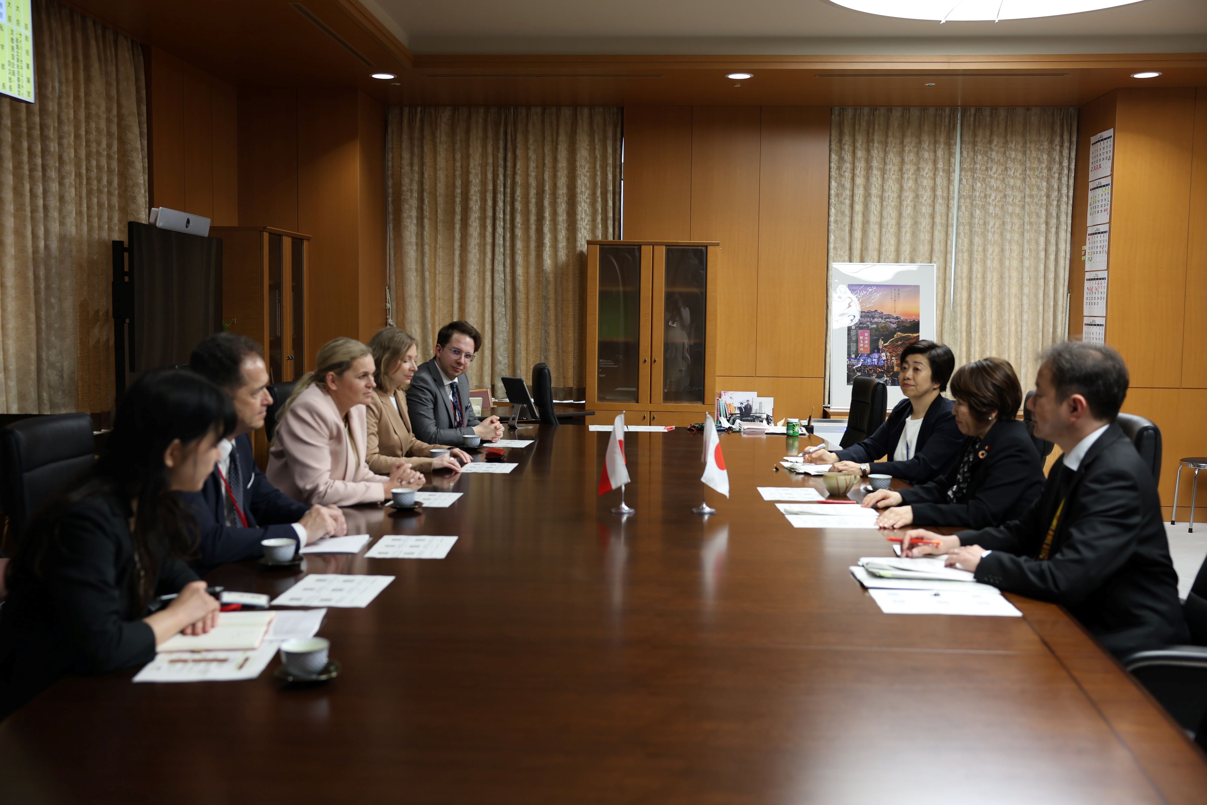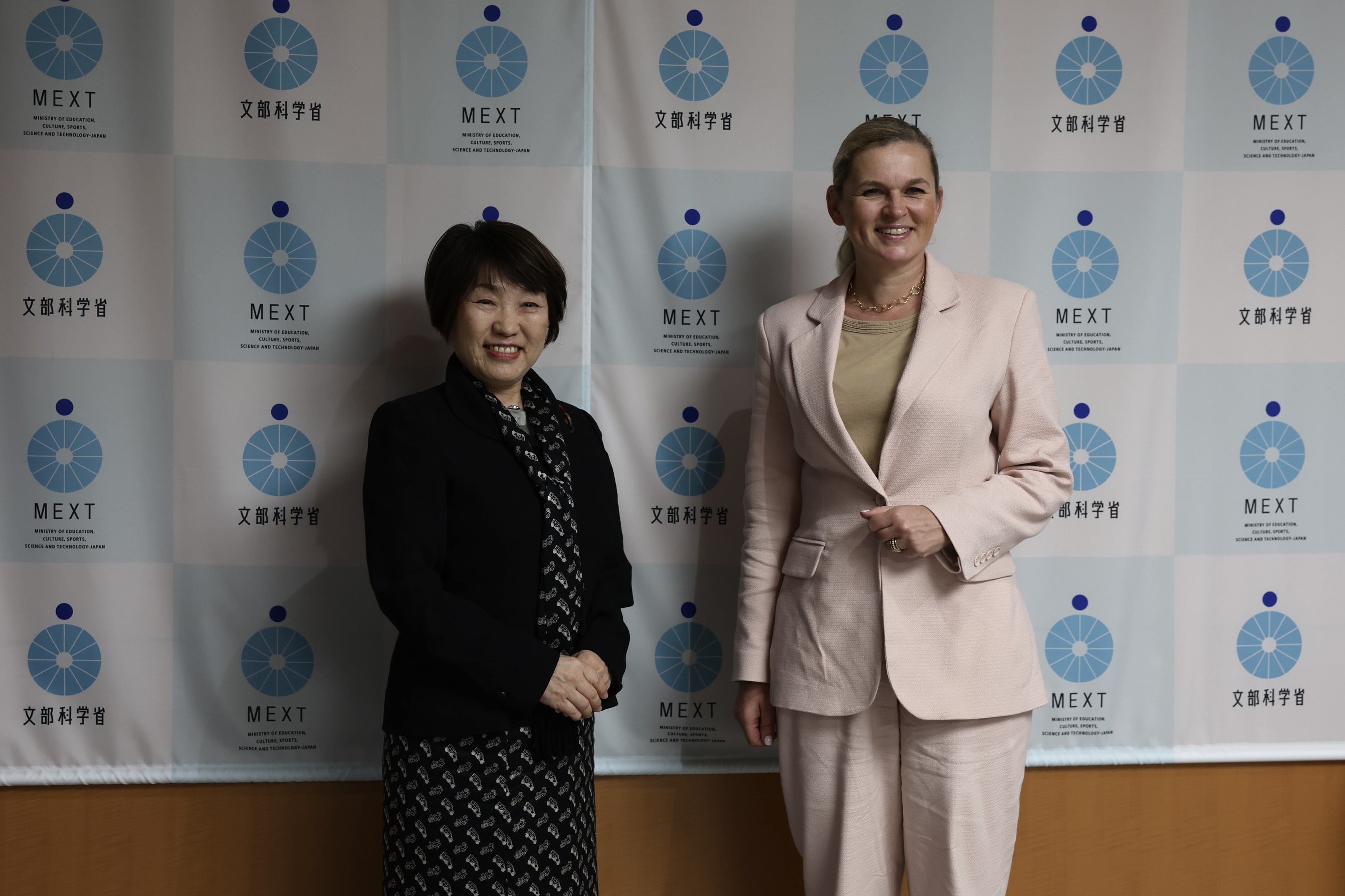 Następnie w siedzibie japońskiego Ministerstwa Edukacji, Kultury, Sportu, Nauki i Technologii (MEXT) Barbara Nowacka rozmawiała z Minister Toshiko Abe m.in. o bezpieczeństwie i organizacji pracy szkół, a także o możliwościach rozwoju współpracy edukacyjnej między Polską i Japonią.